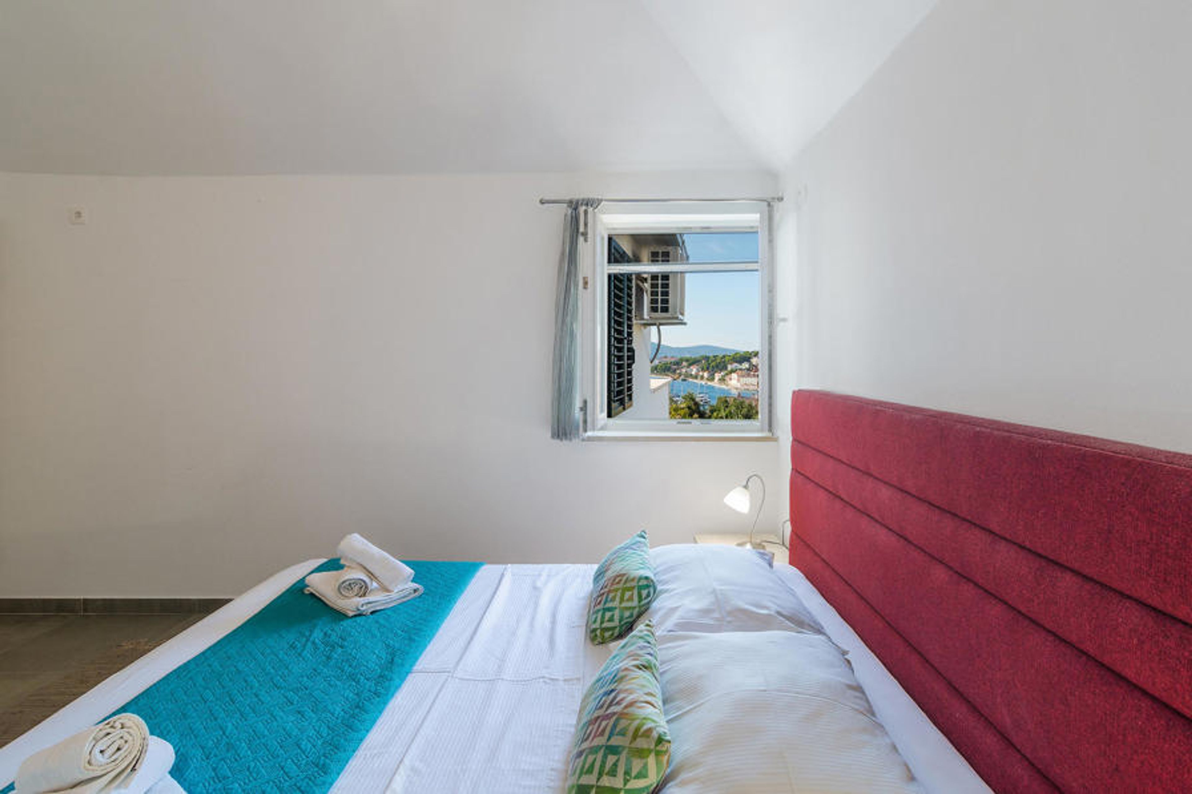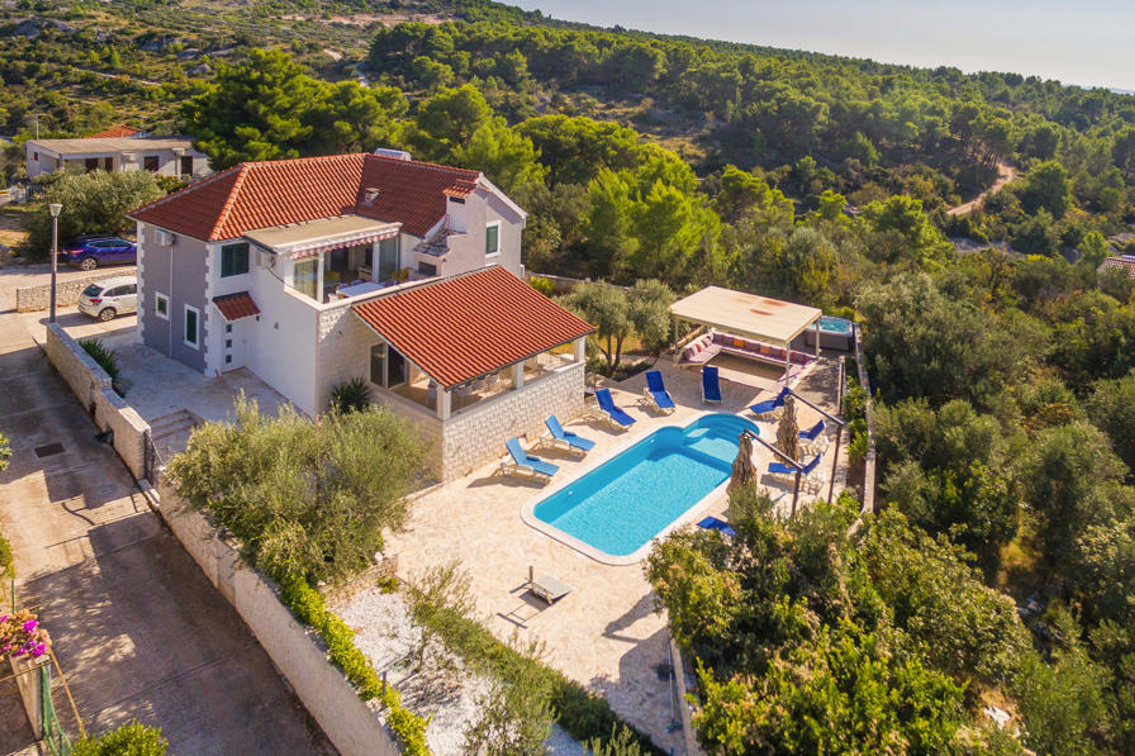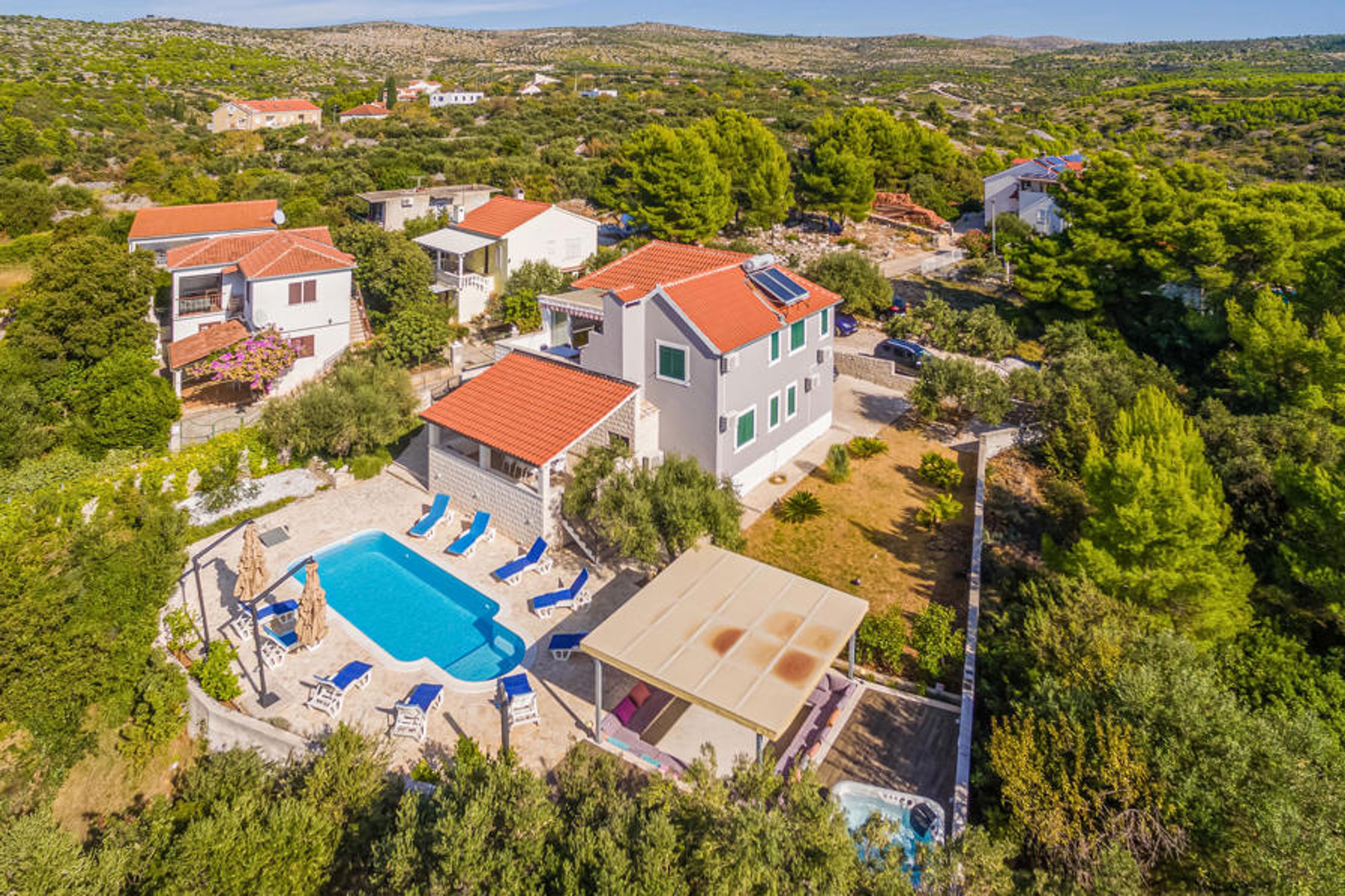 On the west side of the island of Bra, with a view of the sunset and sheltered from the wind, lies the village of Milna, ideal for a quiet family holiday. This wonderful holiday home is located in this peaceful atmosphere. It consists of two apartments connected by external stairs and is ideal for a holiday with family or friends. On the ground floor there is a well-equipped kitchen with a cooking island and a living room with access to the covered terrace overlooking the pool. The upper floor consists of a living room, kitchen and terrace with views of the sea and the centre of Milna. The holiday home has a total of six bedrooms with en-suite bathrooms. There is another toilet on the ground floor. If you want an active holiday and unforgettable moments, in Milna you will find diving schools that offer interesting diving excursions and a large selection of cycling trails. Another attraction on the island of Bra is Vidova Gora, the highest mountain on the island, which offers a fantastic view of Bol and neighbouring islands.