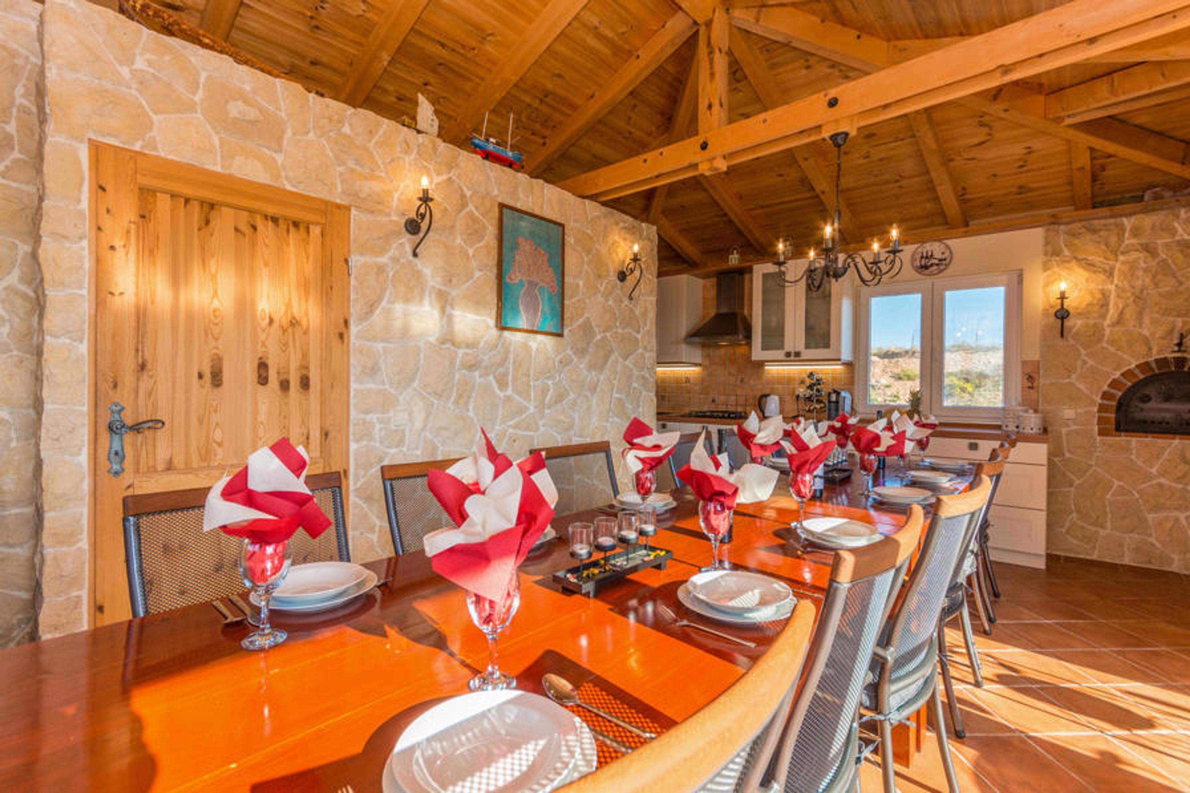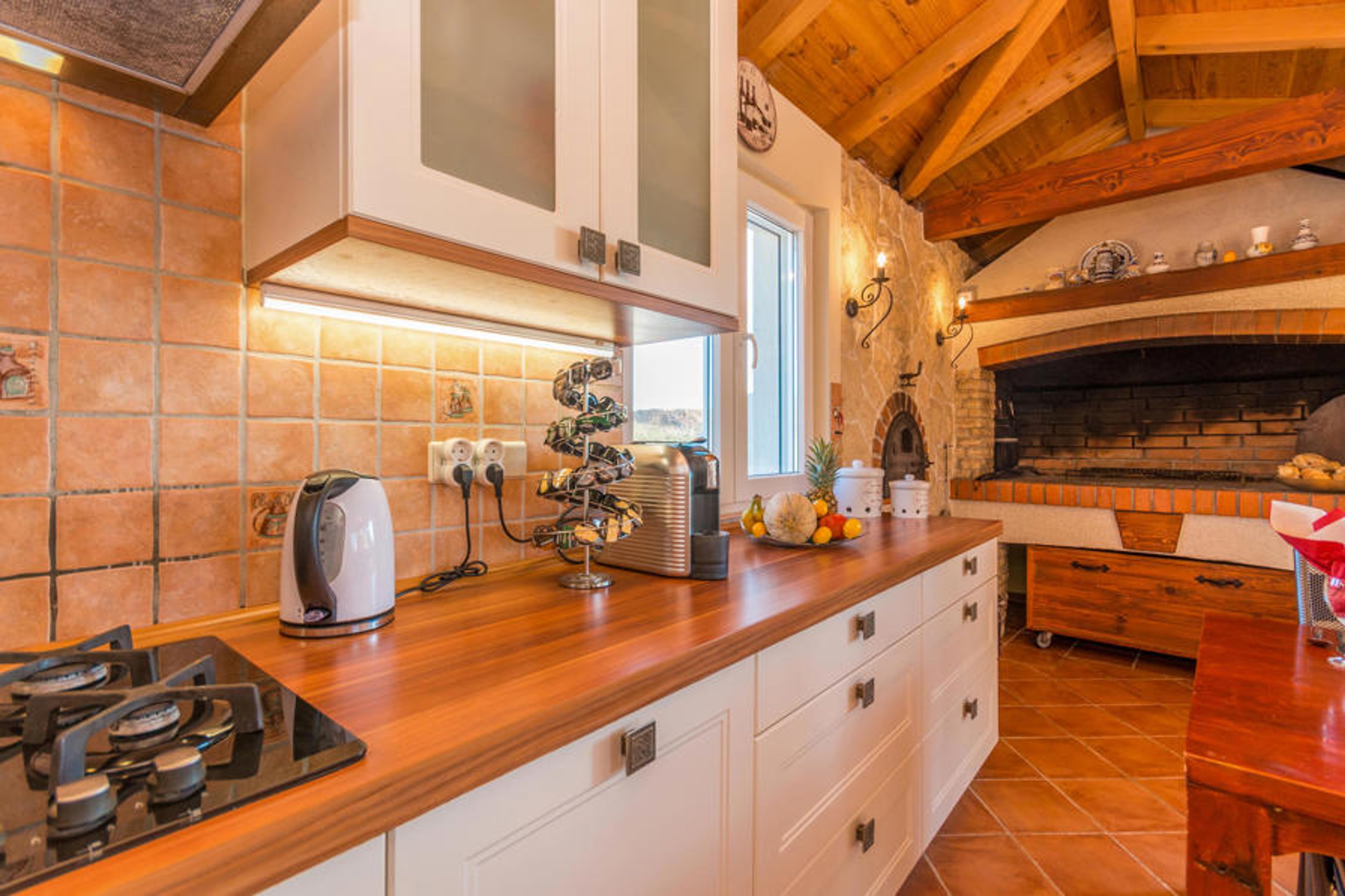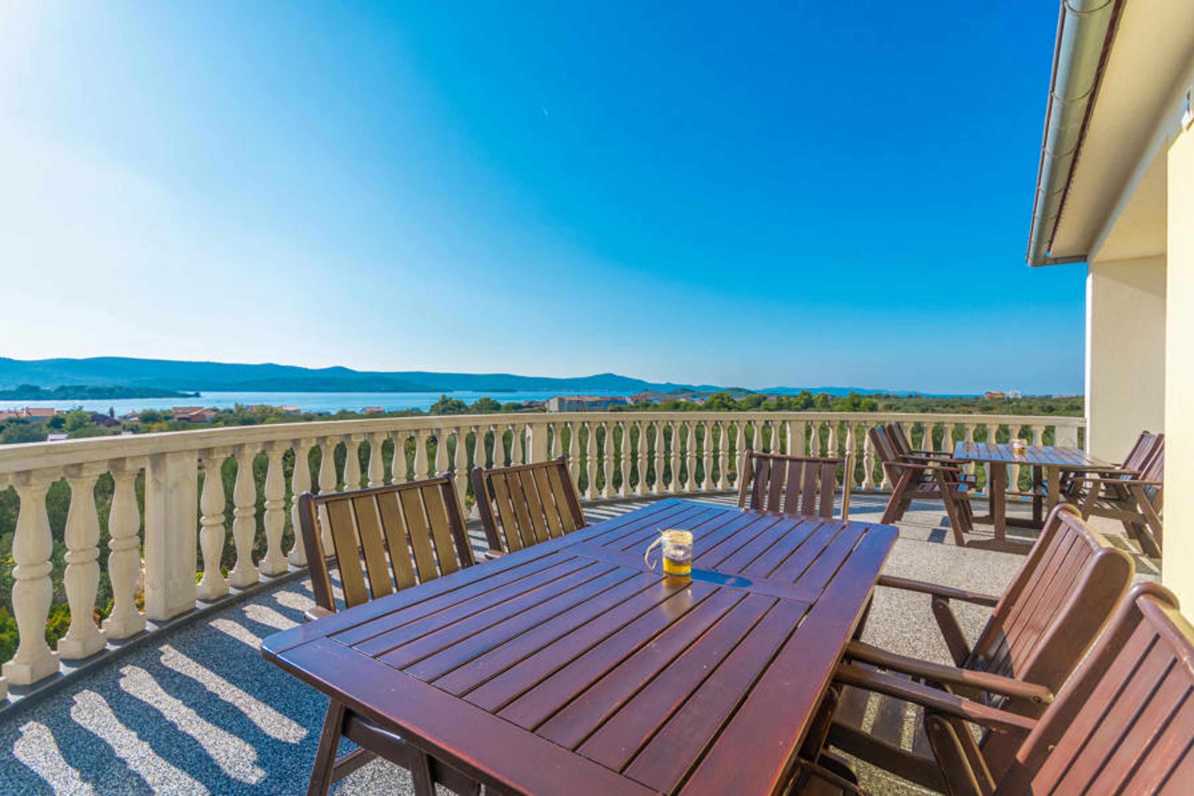 This vacation house with pool is located in the quiet part of Turanj, near Zadar. It has a large apartment on the first floor and upstairs there are several units: two apartments with two bedrooms each, one apartment with one bedroom and a studio apartment. The house is very spacious and equipped with everything you need for a comfortable vacation. On the green and fenced property there is a heated pool, next to which there is a konoba with a fireplace, an additional toilet and a shower. Each part of the cottage is well equipped and offers sufficient comfort, while the outdoor area with recreational facilities offers variety. The covered terrace offers cooling shade on hot summer days. Children will definitely use the space for games on the lawn or in the pool. Biograd is a tourist and nautical destination in Northern Dalmatia and an excellent starting point for visiting national parks such as Kornati, Paklenica, Krka waterfalls and Plitvice Lakes.