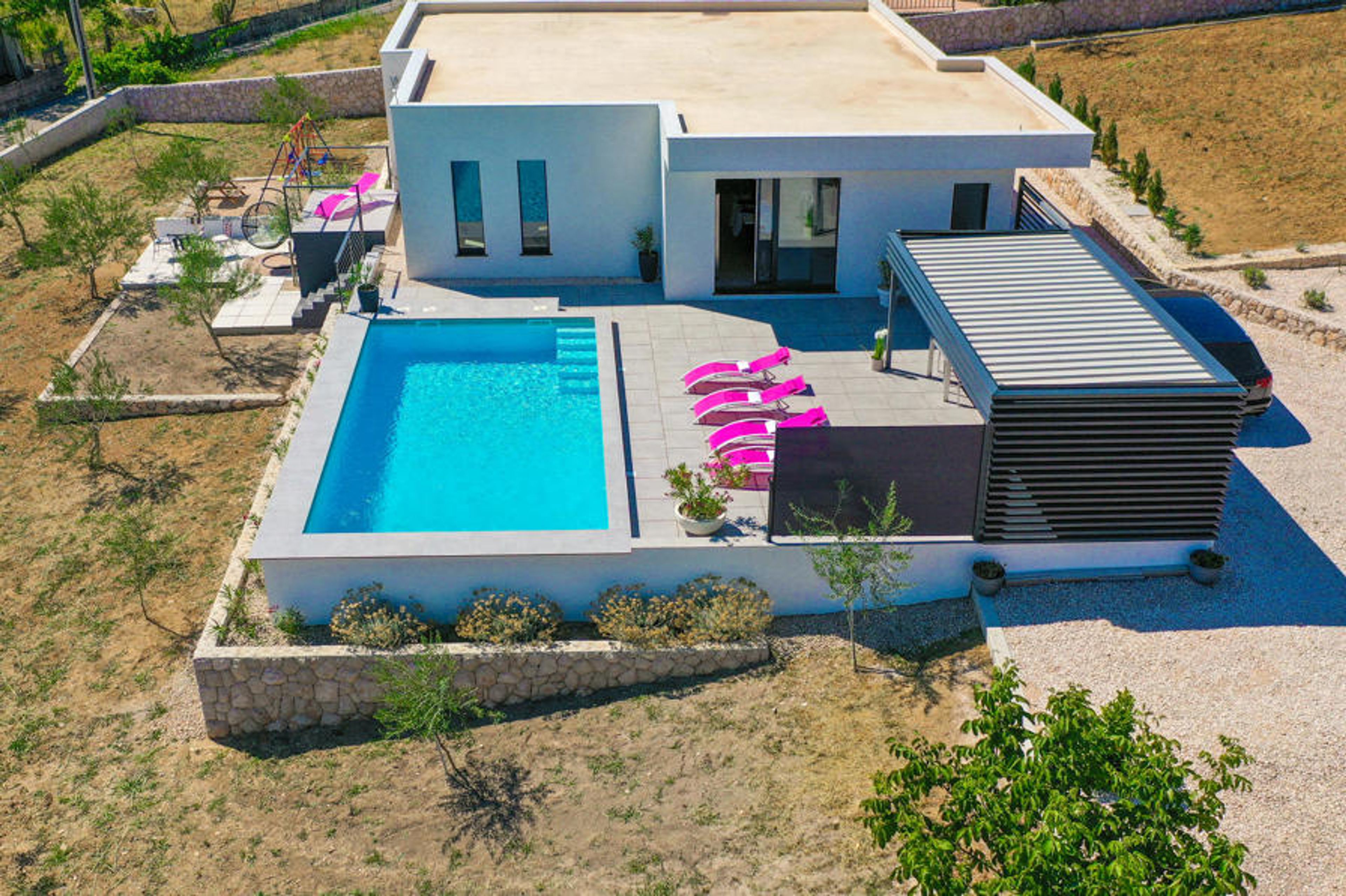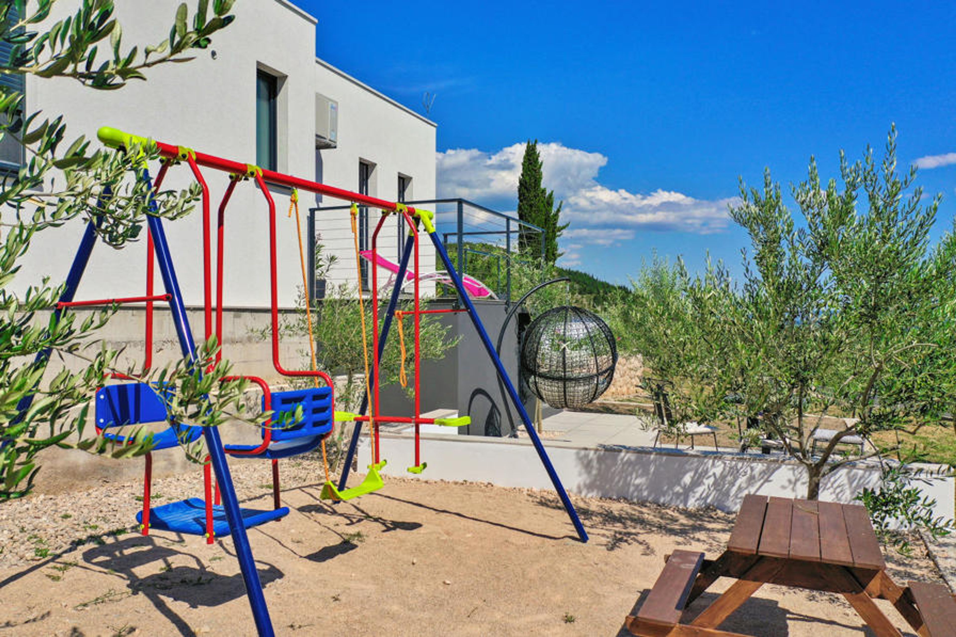 Spend a pleasant stay in this modern bungalow, which is built on a large plot of land. This holiday home is not far from Imotski. Refresh yourself in the pool and enjoy the covered terrace with barbecue next door. The house is surrounded by an olive grove, with a play area for children. This location, about 700 metres from the Red Lake, is ideal for additional activities with its cycling and hiking trails nearby. A restaurant, shopping facilities and the river Vrljika are also not far away. Visit the town of Imotski with many events during the summer months, as well as the Red and Blue Lakes. Experience beautiful moments on the pebble beaches of the Makarska Riviera and enjoy the unspoilt nature in the surrounding area.