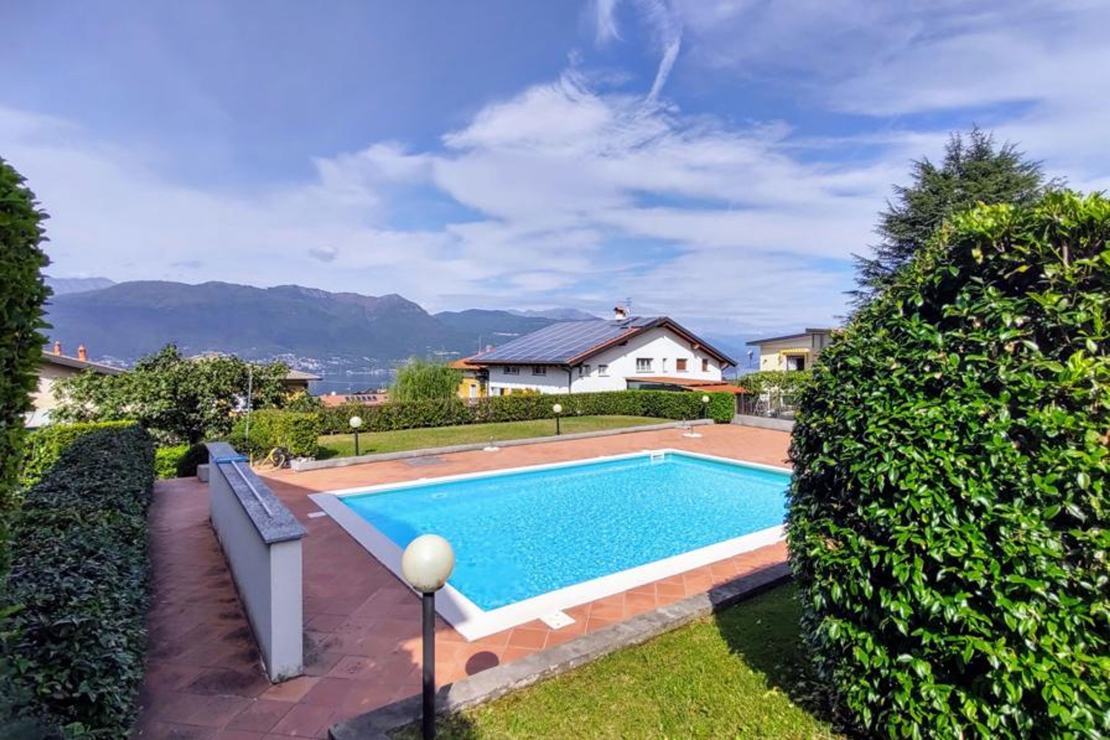 Small, modern residence "Torre del Lago", 3 storeys. 5 apartments in the residence. In the district of Musadino 2.6 km from the centre of Porto Valtravaglia, 31 km from the centre of Lugano, 33 km from the centre of Varese, on a slope, in the residential district, 2.6 km from the lake. For shared use: property 750 m2 (fenced) with lawn and plants, swimming pool (8 x 4 m, depth 140 cm, seasonal availability: 01.Jun. - 15.Sep.). Outdoor shower, terrace, garden furniture, pool maintenance by the owner/gardener. Stepped path to the house. Supermarket 2.5 km, bus stop 400 m, railway station "Porto Valtravaglia" 3 km, pebble beach "Punta Molino" 2.6 km, indoor swimming pool 11 km. Marina 2.6 km, golf course (18 hole) 23 km, mountain railway 10 km.