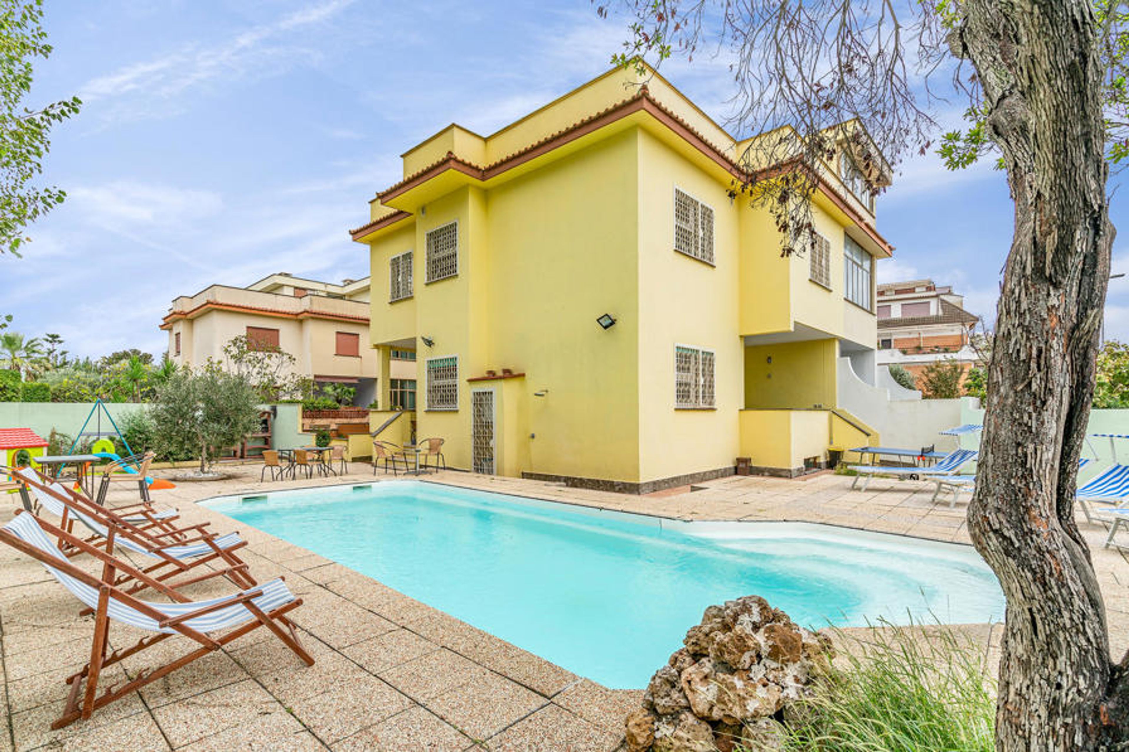 Here you will occupy a part of a beautiful two-family house with outdoor area and private pool, just 200 meters from the beach of Torvaianica, on the coast of Lazio.