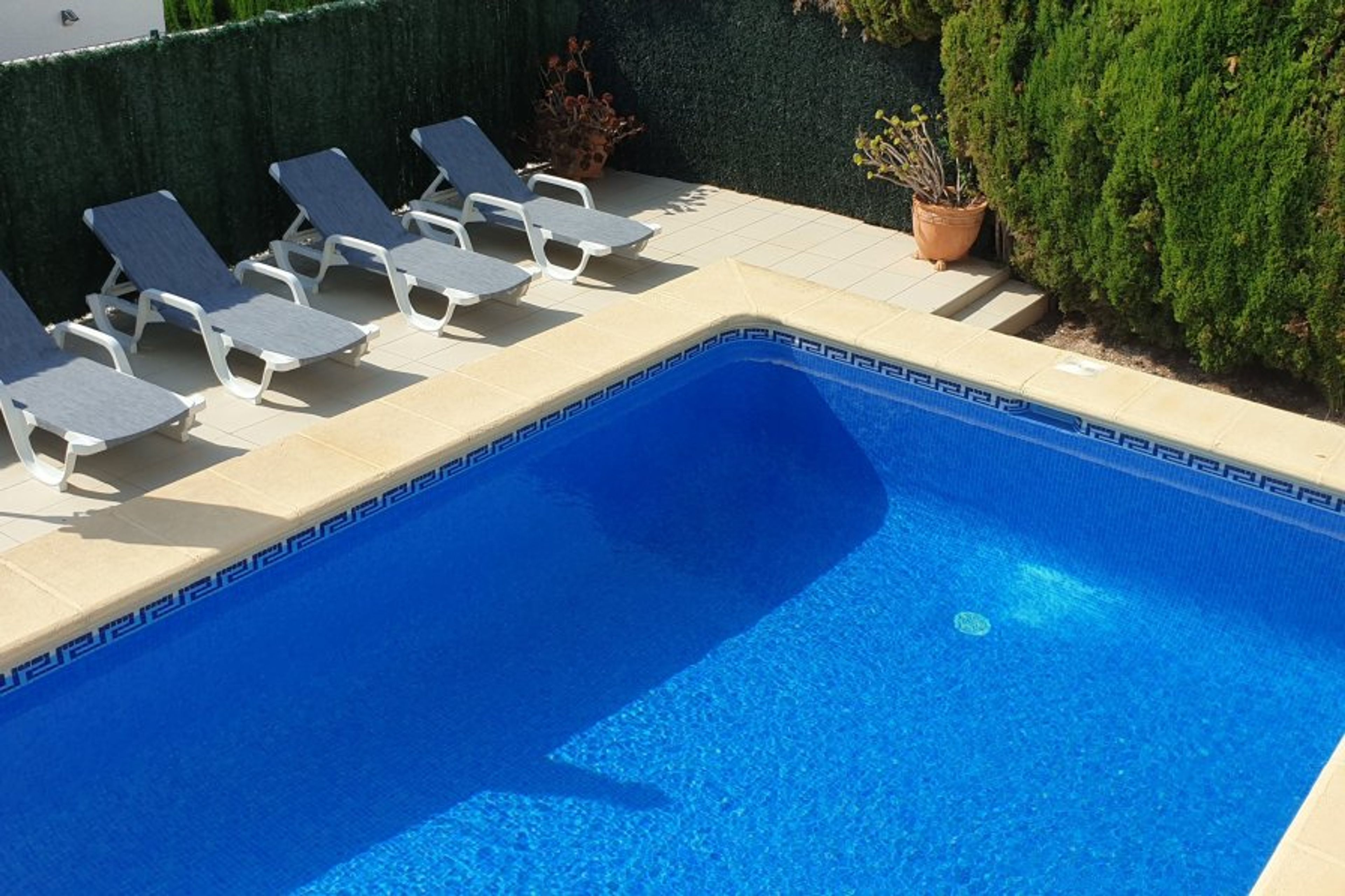 Privately owned 3 bed detached villa with private pool, with safety fence. air con and free view sky channels in the living room & both main bedrooms. Netflix. A short drive to Moraira town and beach.