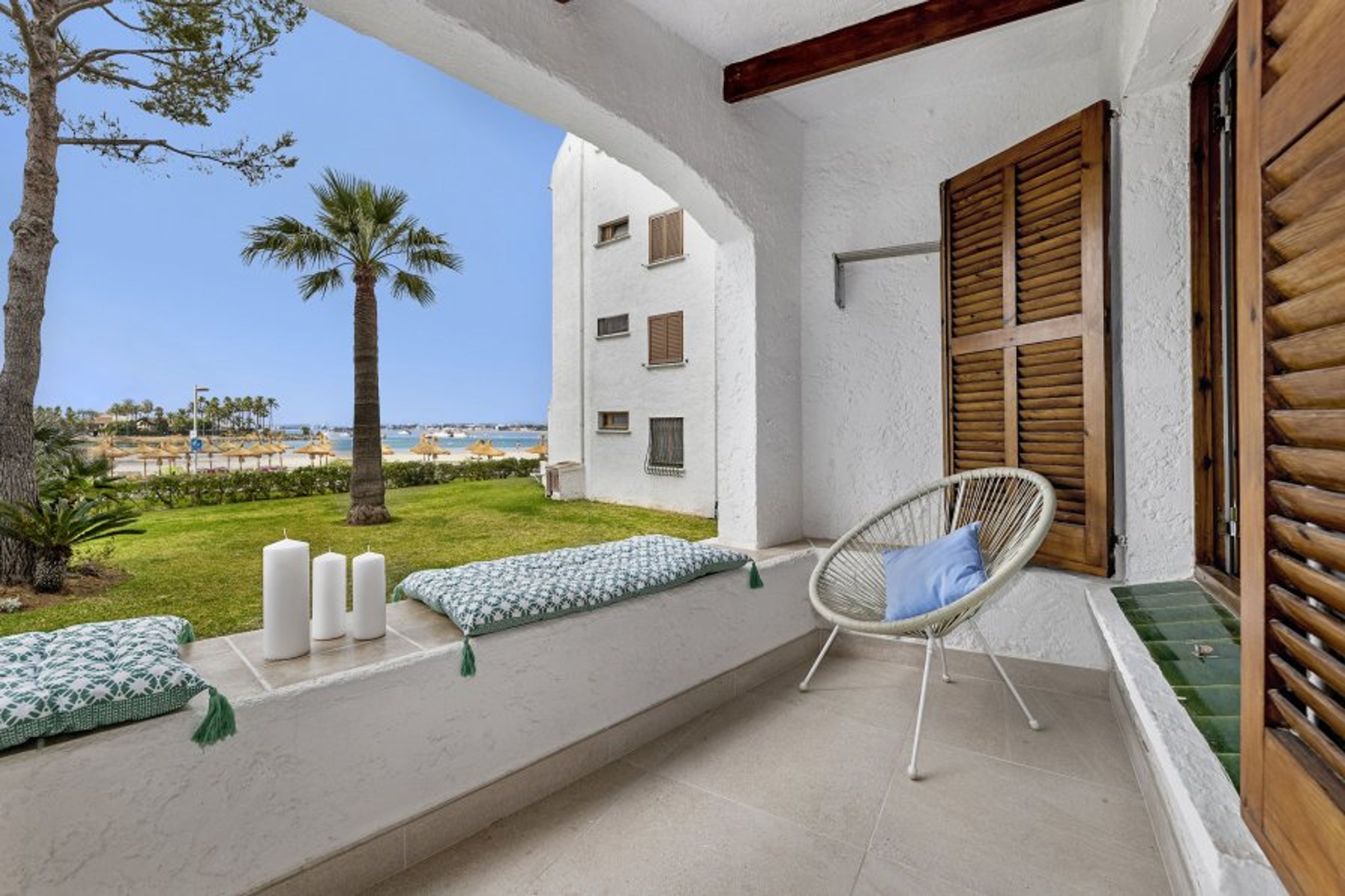 This beachfront apartment is part of the Carabela complex in the heart of Puerto de Alcudia.