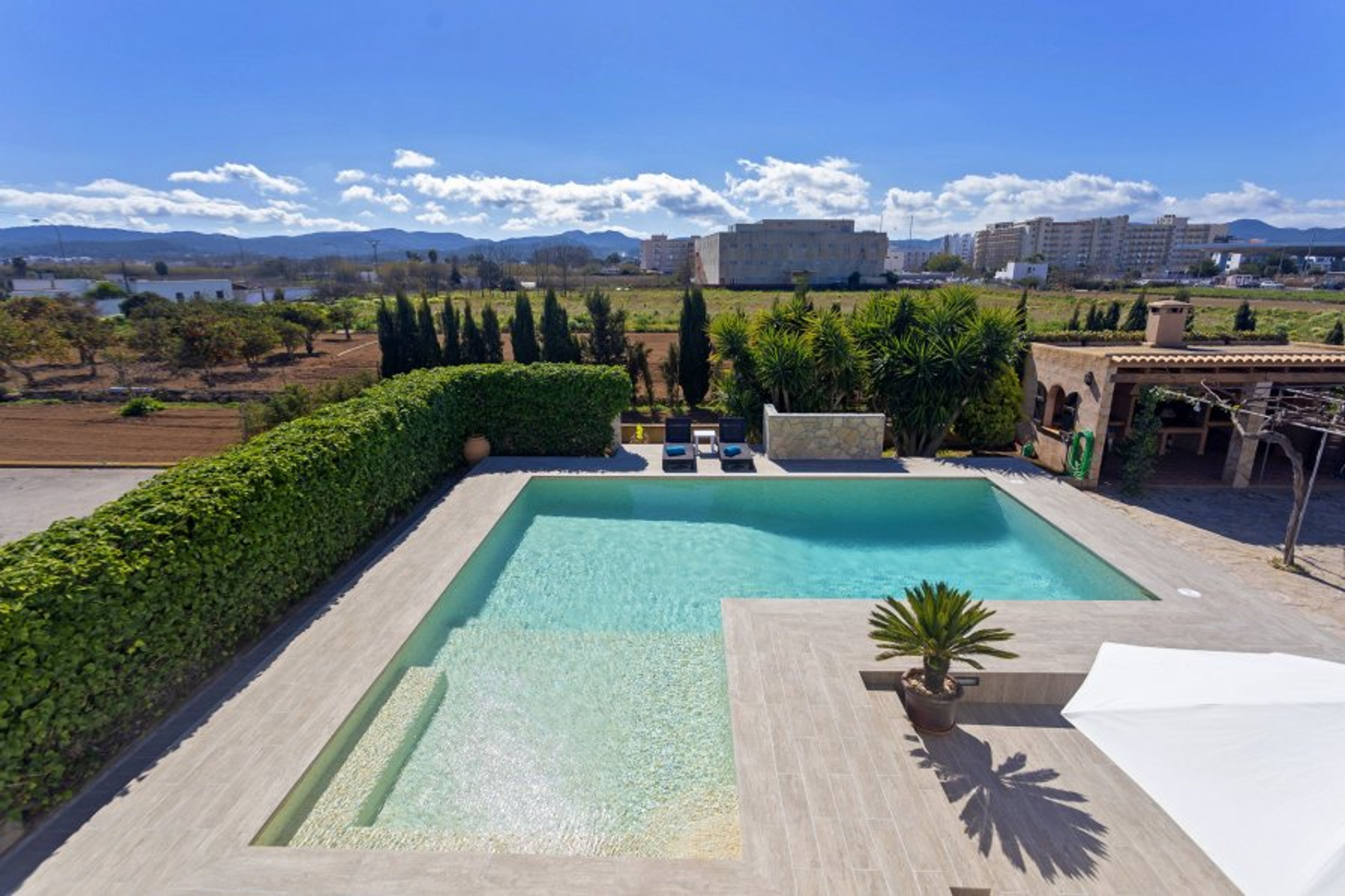 Nestled in the heart of San Antonio, Villa Huerta offers a remarkable outdoor experience with its enticing amenities including a swimming pool, a fantastic BBQ area, and a private tennis court. This central location provides the best of both worlds - a 5-10 minute stroll to the seafront while ensuring a peaceful retreat away from the city's bustling energy.
