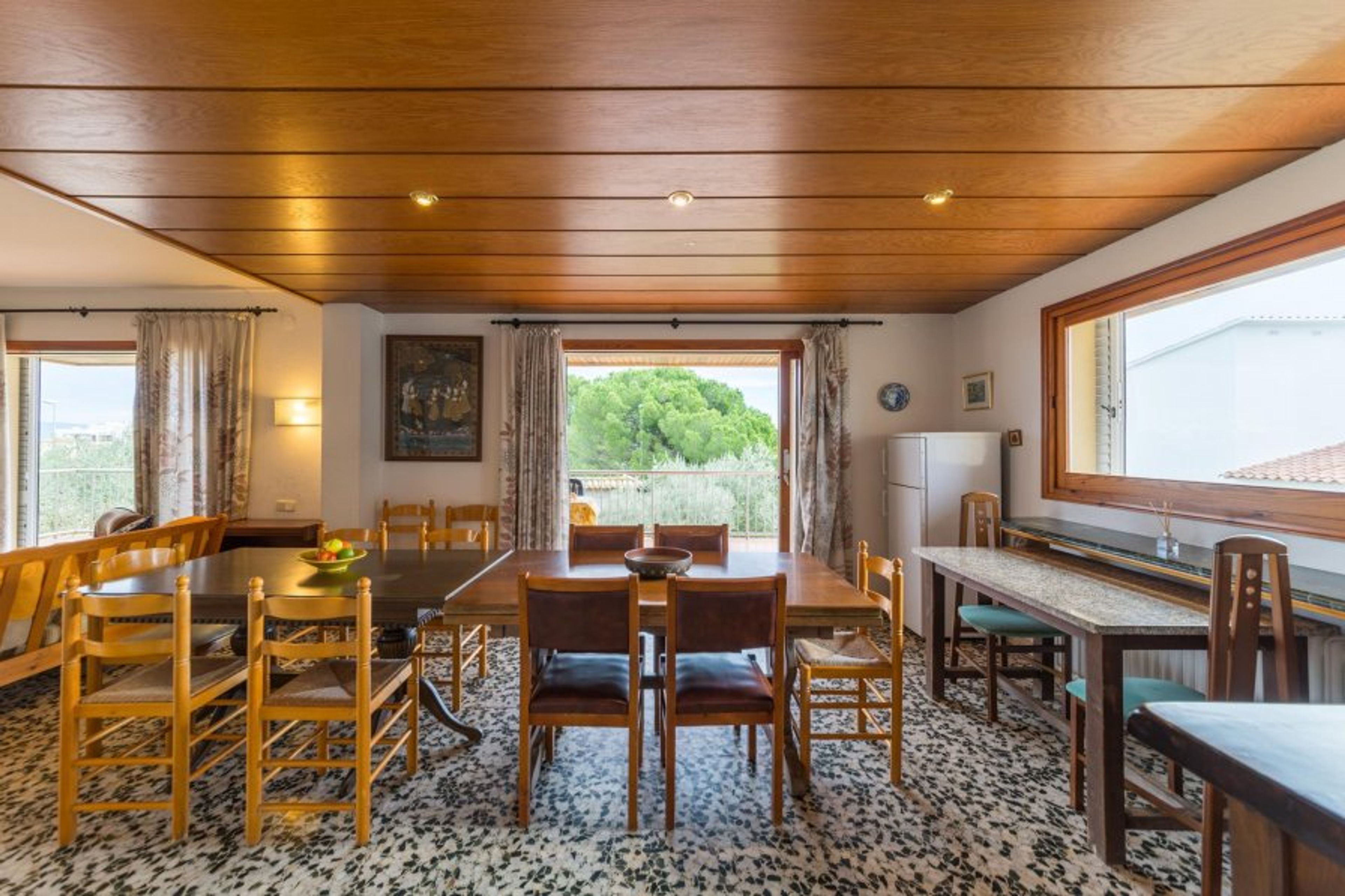 Spacious holiday home with private pool and a large garden, located in the most tourist area of L'Escala, just 8 minutes (750 m) walking to the beach of Riells. The nearest supermarket is 5 minutes away (350 m). The house has a bedroom with a double bed and two single beds. A bedroom with a double bed and a single bed. A bedroom with three single beds. And another bedroom with three single beds. Two bathrooms, one with shower and one with bathtub, plus a toilet. A large dining room with access to the main terrace, fully equipped kitchen, and a large living room. The house has a wonderful garden with private pool and porch -equipped with barbecue- where you can enjoy your meals outdoors. In total, the villa can sleep 13 people: in 2 double beds and 9 single beds.