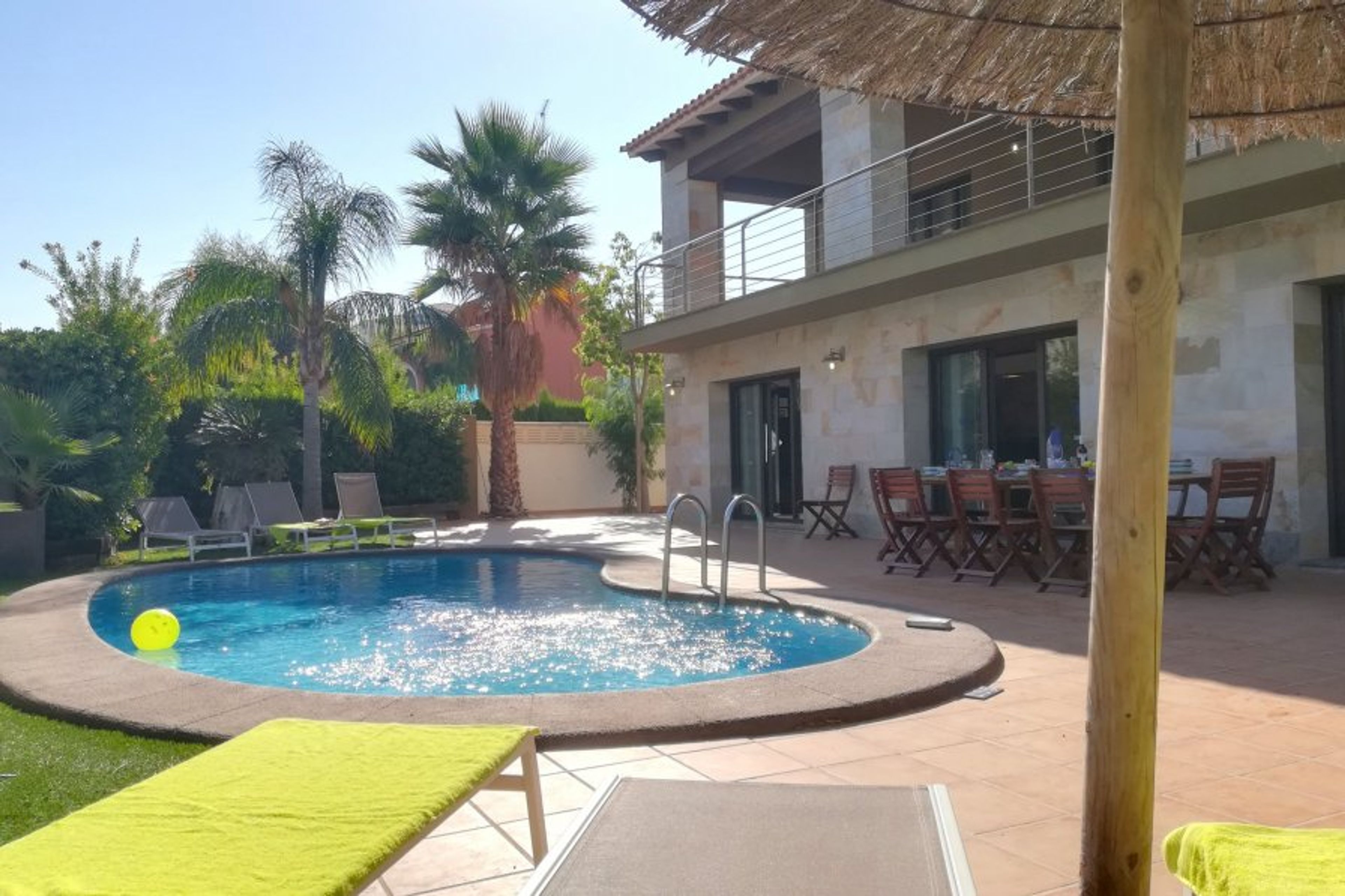 Outside we find the private pool, built-in barbecue and large garden terraces equipped with hammocks and furniture to enjoy your lunches and dinners outdoors. This villa is the ideal place to spend a quiet and relaxed family holiday by the sea. It also has three parking spaces in the plot and air conditioning.