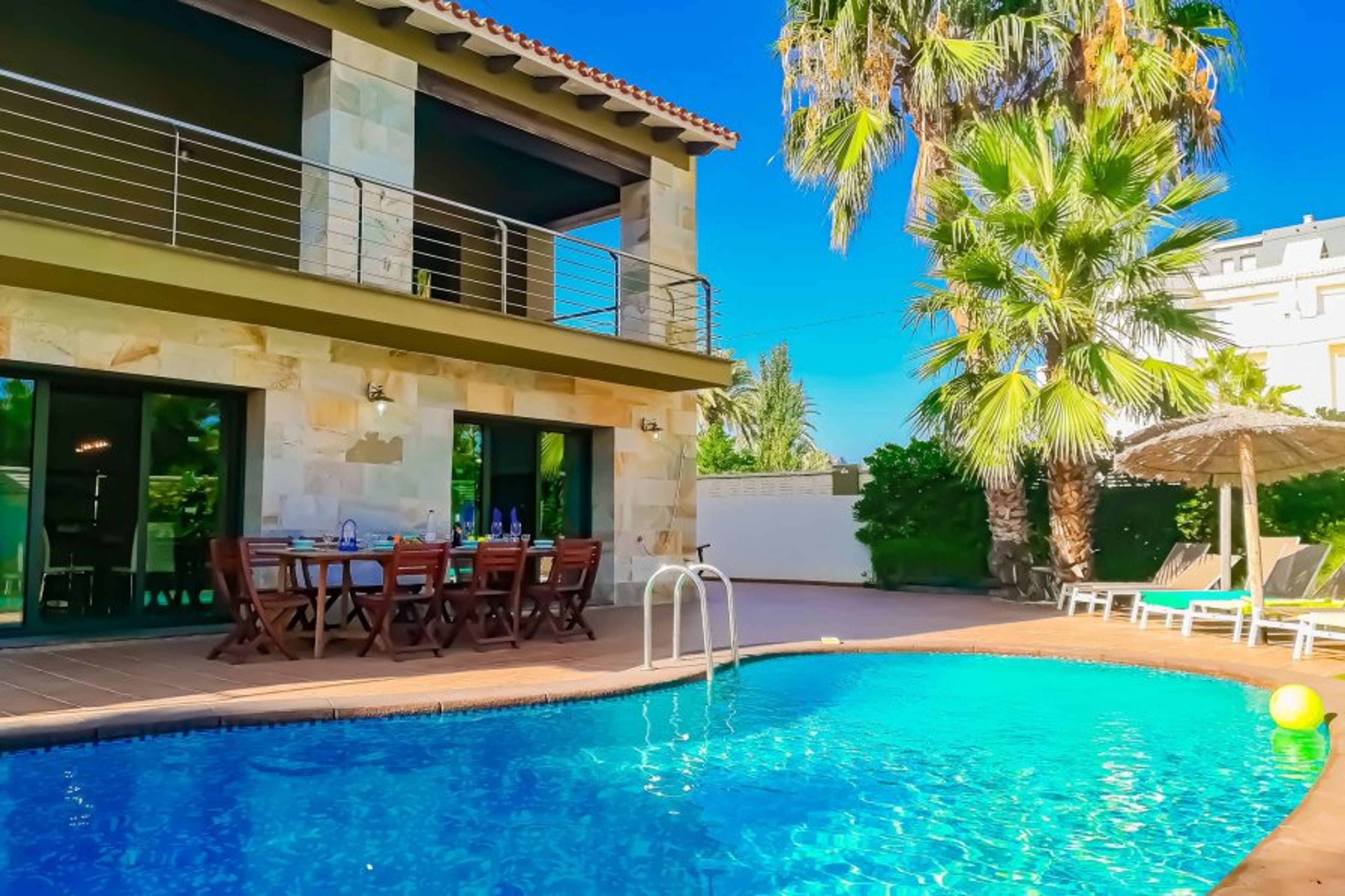 Fantastic, modern and sophisticated family villa offering a high standard. The architecture of the house is elegantly designed as well as bright and spacious. It is located just 100 meters from the sandy beach "Els Molins".