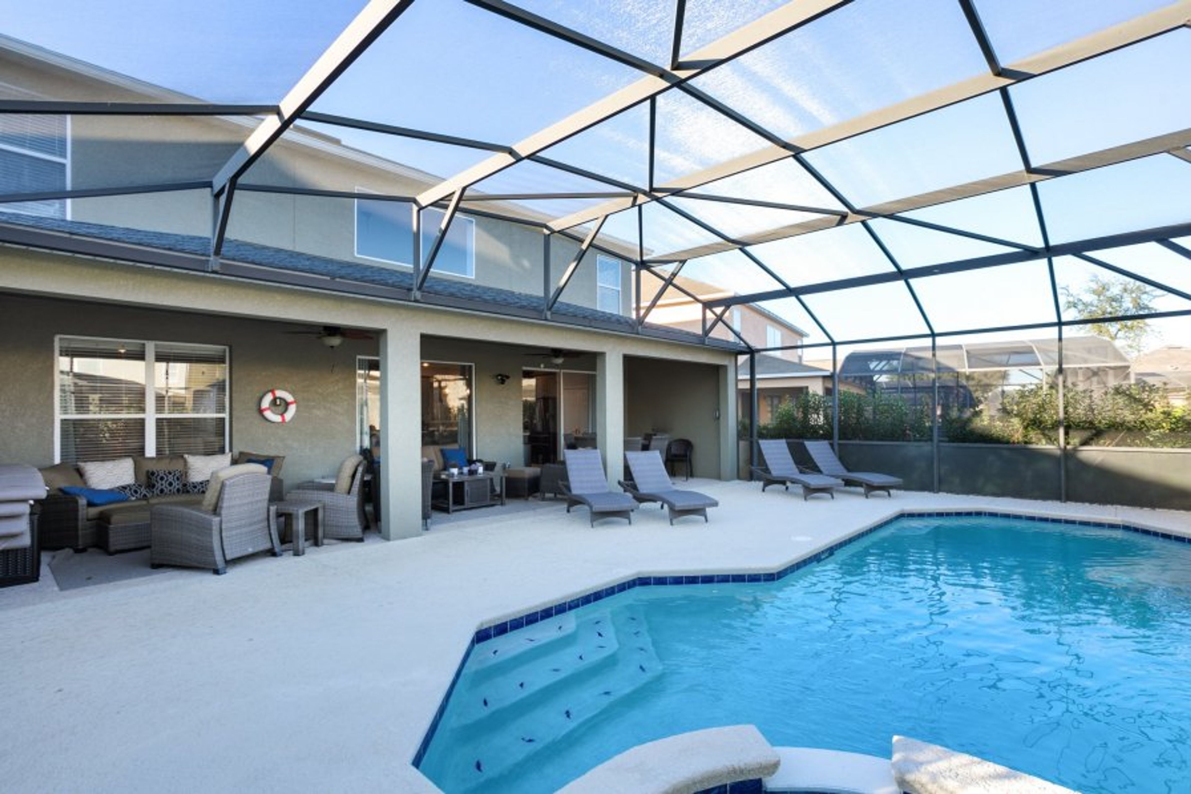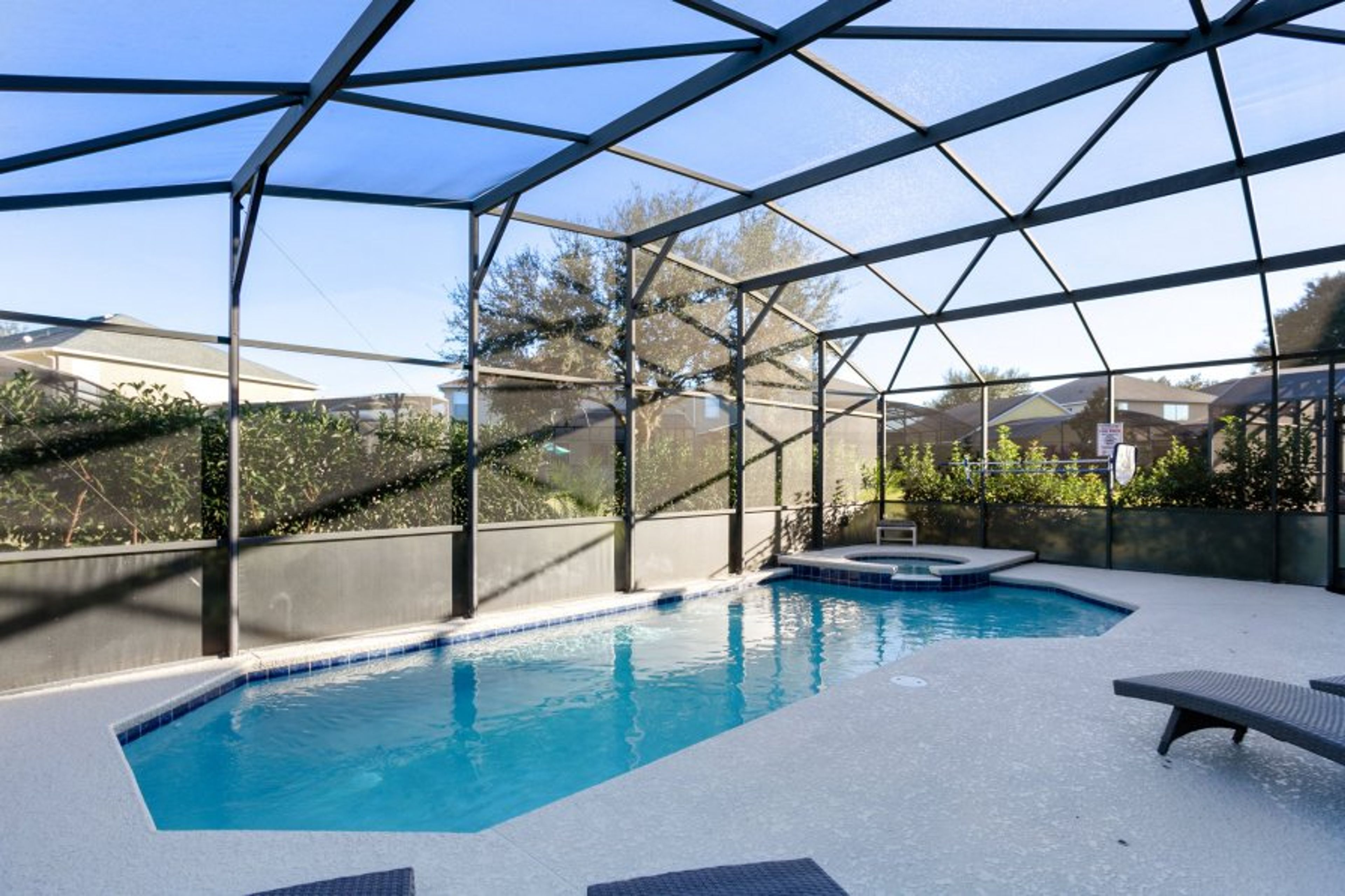 If you find the pool is a little cool for your liking, it can be fully heated at an additional daily charge (recommended for October to March). The pool deck is fully screened which helps to keep the pool clean and the wildlife out. The pool is serviced weekly by professionals so you can be sure it is clean and safe to swim in.