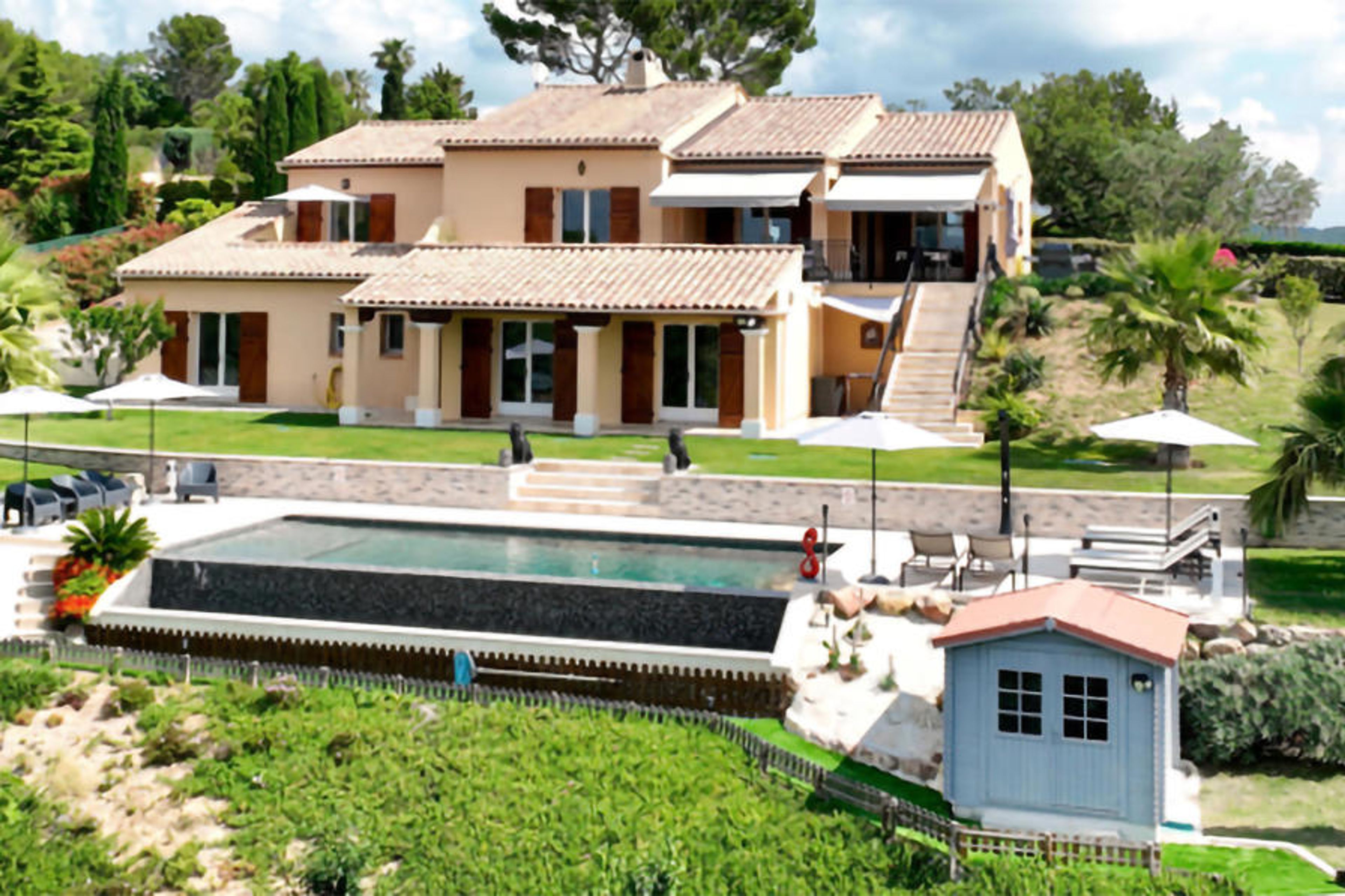 Superb individual vacation accommodation with panoramic views and private pool, located on a beautiful fenced plot in a lovely residential area on the heights of the village of Adrets, very quiet, only 13 km from Mandelieu la Napoule and its sandy beaches. Cannes, the city of cinema, is only 25 km away. With a ping-pong table, billiards and access to two tennis courts (900 m), just 13 km from the beach, this beautiful villa is the perfect place for a vacation with family or friends under the sun of the Côte d'Azur.
