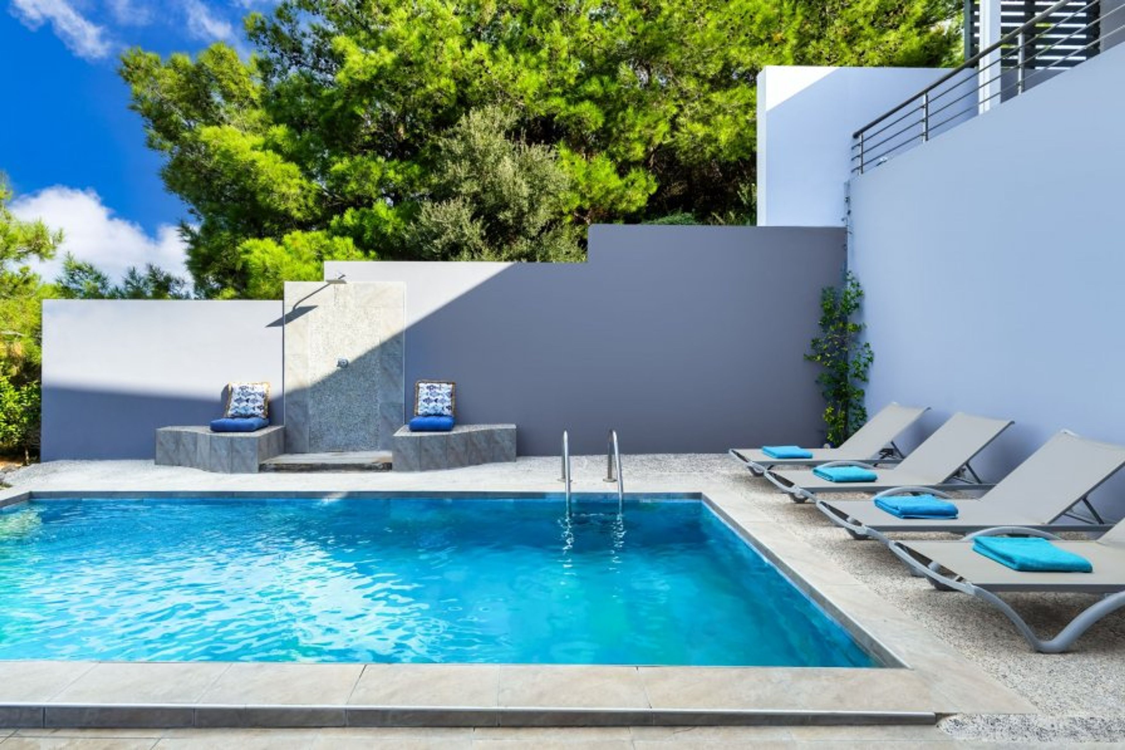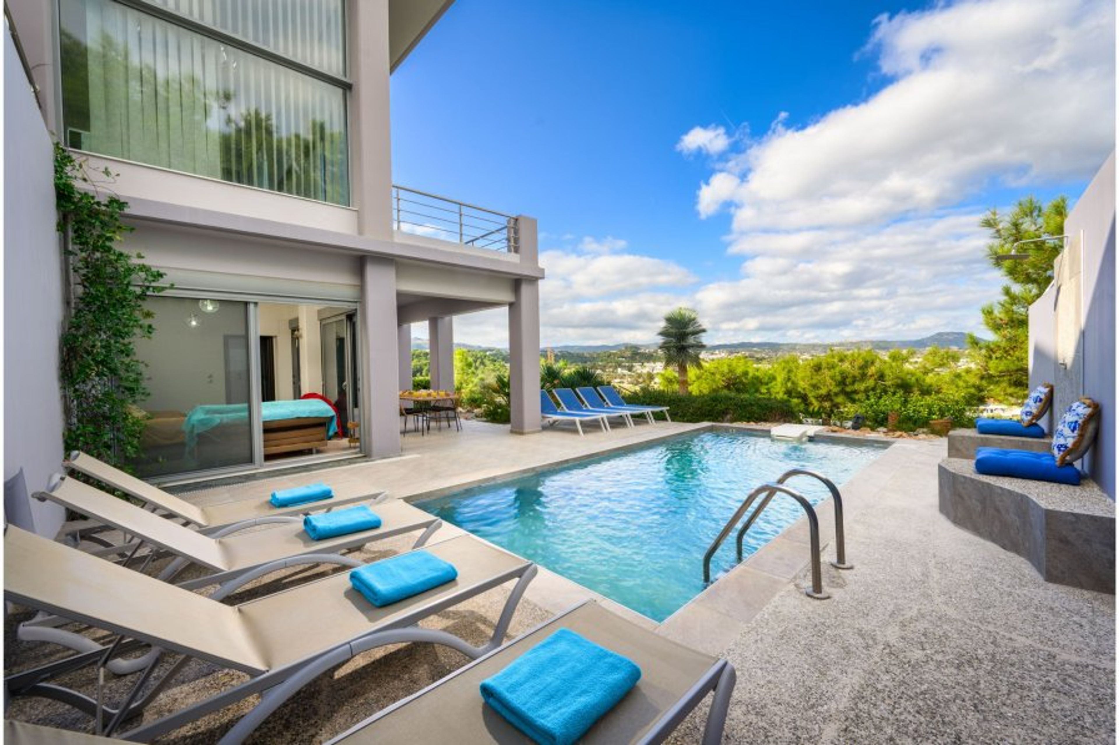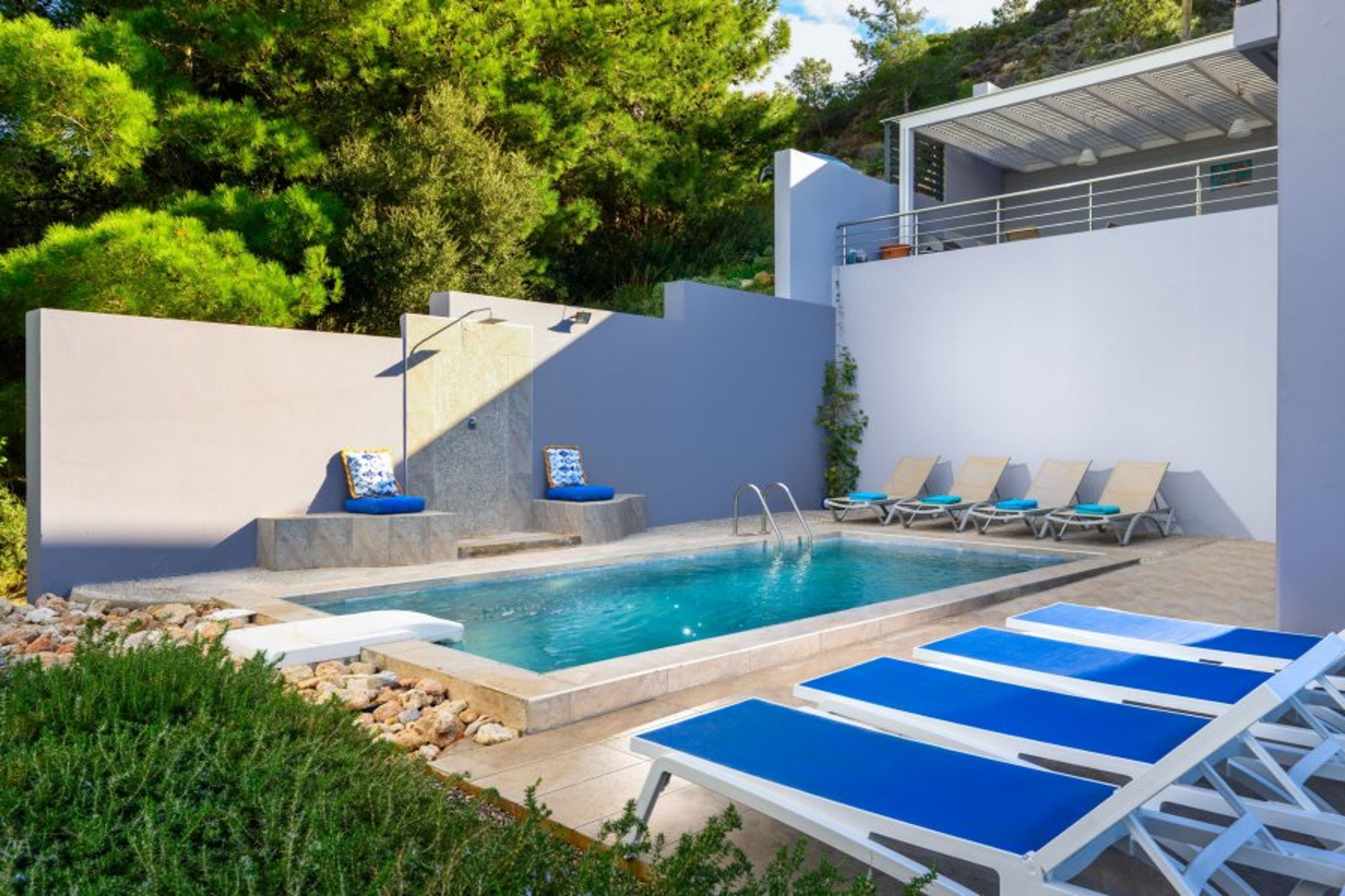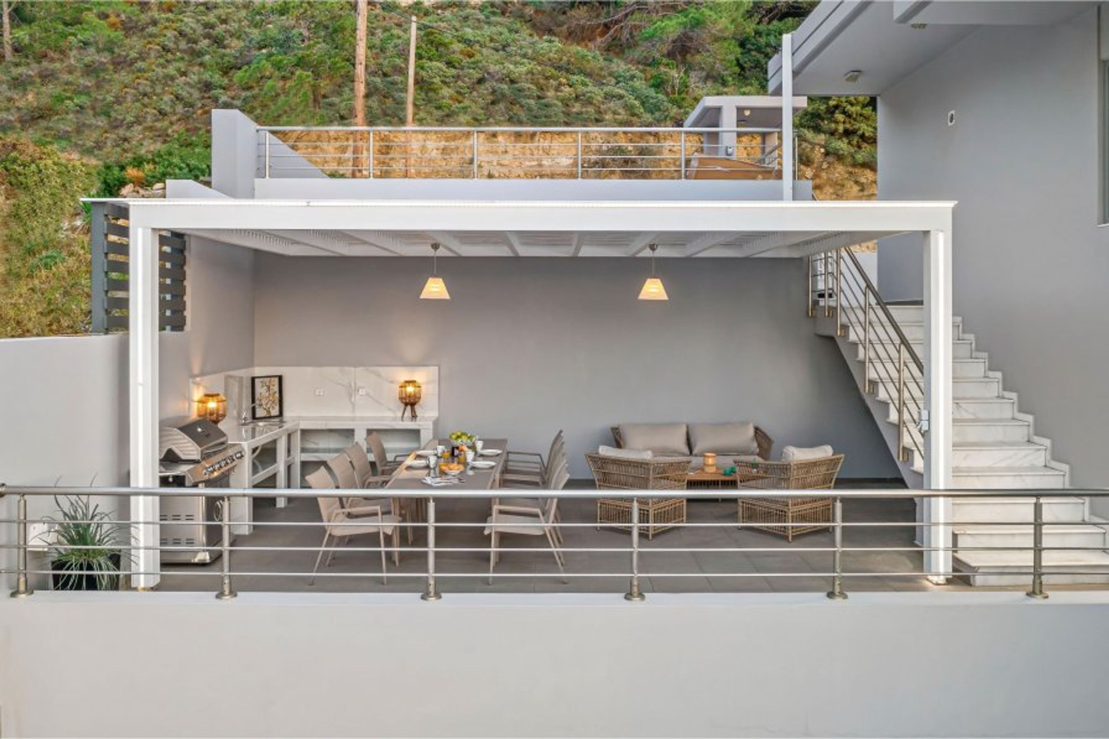 The 4-bedroom villa provides 3 double-bedded rooms and 1 room with 2 single beds, also, 2 bathrooms including a shower and a bathtub. On the ground floor there is a modern living room and a comfy dining area with an inspiring view outdoors. At the top level of the villa is found a fully equipped kitchen, along with a dining area and a cozy living room. The villa owns a flat screen with satellite channels and free Wi-Fi access. Outdoors, guests will find their private swimming pool and a heated jacuzzi where they can rest on their stylish sunbeds and benefit from the sun and the remarkable view. Faliraki is quite popular for its night life but if you prefer a tranquil evening with your company there’s a furnished balcony where you can enjoy a fine wine and the starry sky.