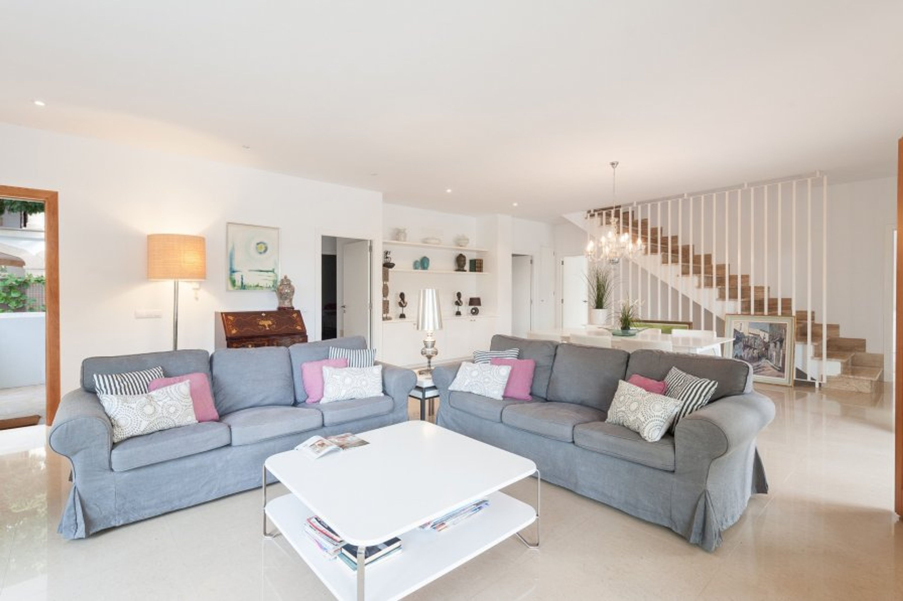 We receive a large living room opening onto the garden and pool exquisitely decorated with outstanding works of contemporary design with TV area with comfortable sofas and a dining area which highlight the incredible lamps.
