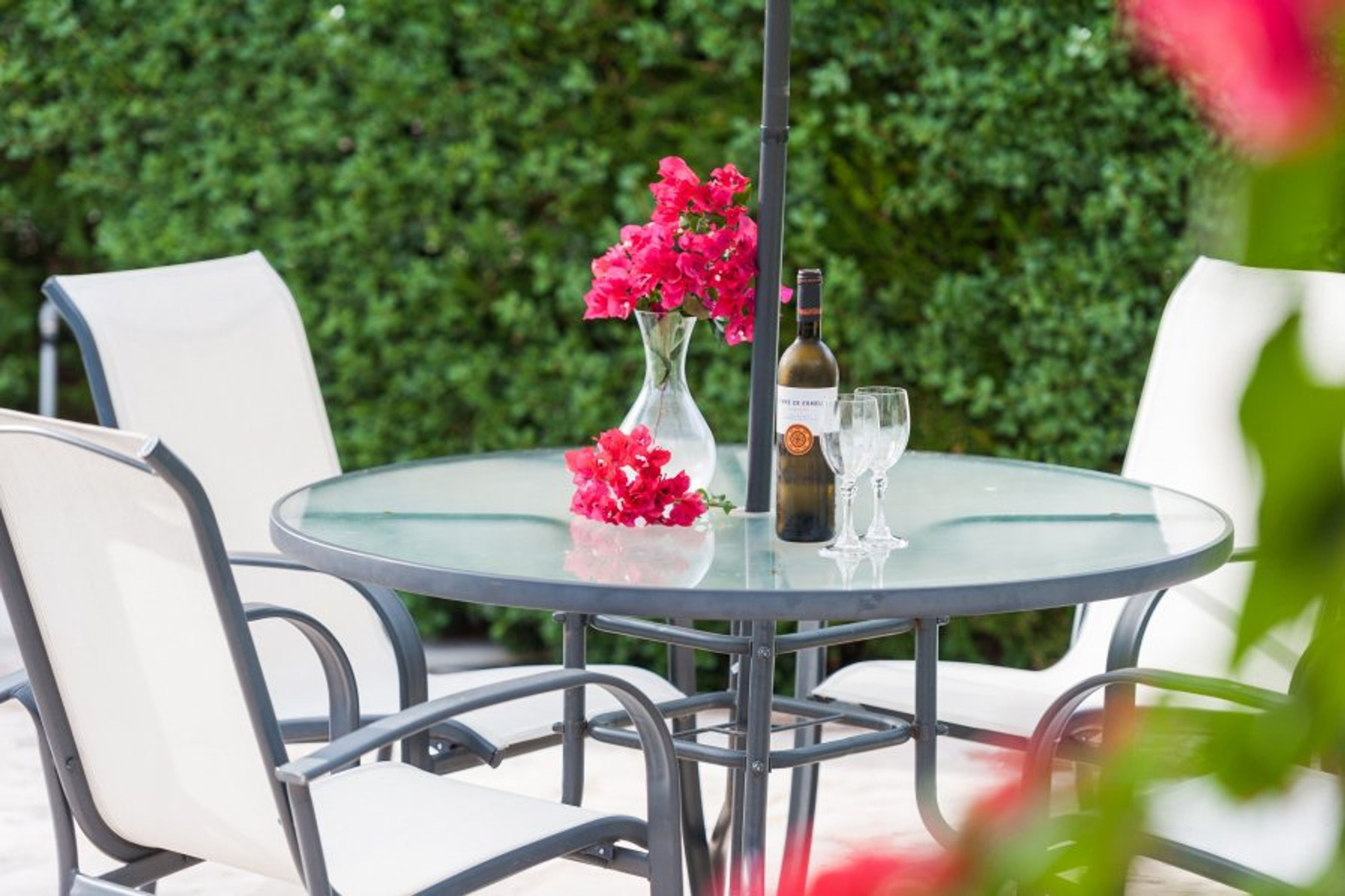 Villa Bell Lloc Bonaire is a magnificent property of premium holidays: construction contemporary air with a fragrant Mediterranean garden dotted with olive and lemon trees with a fantastic pool flanked by a row of chairs design, ping pong and your feet an attractive corner chill out with elegant rattan furniture.