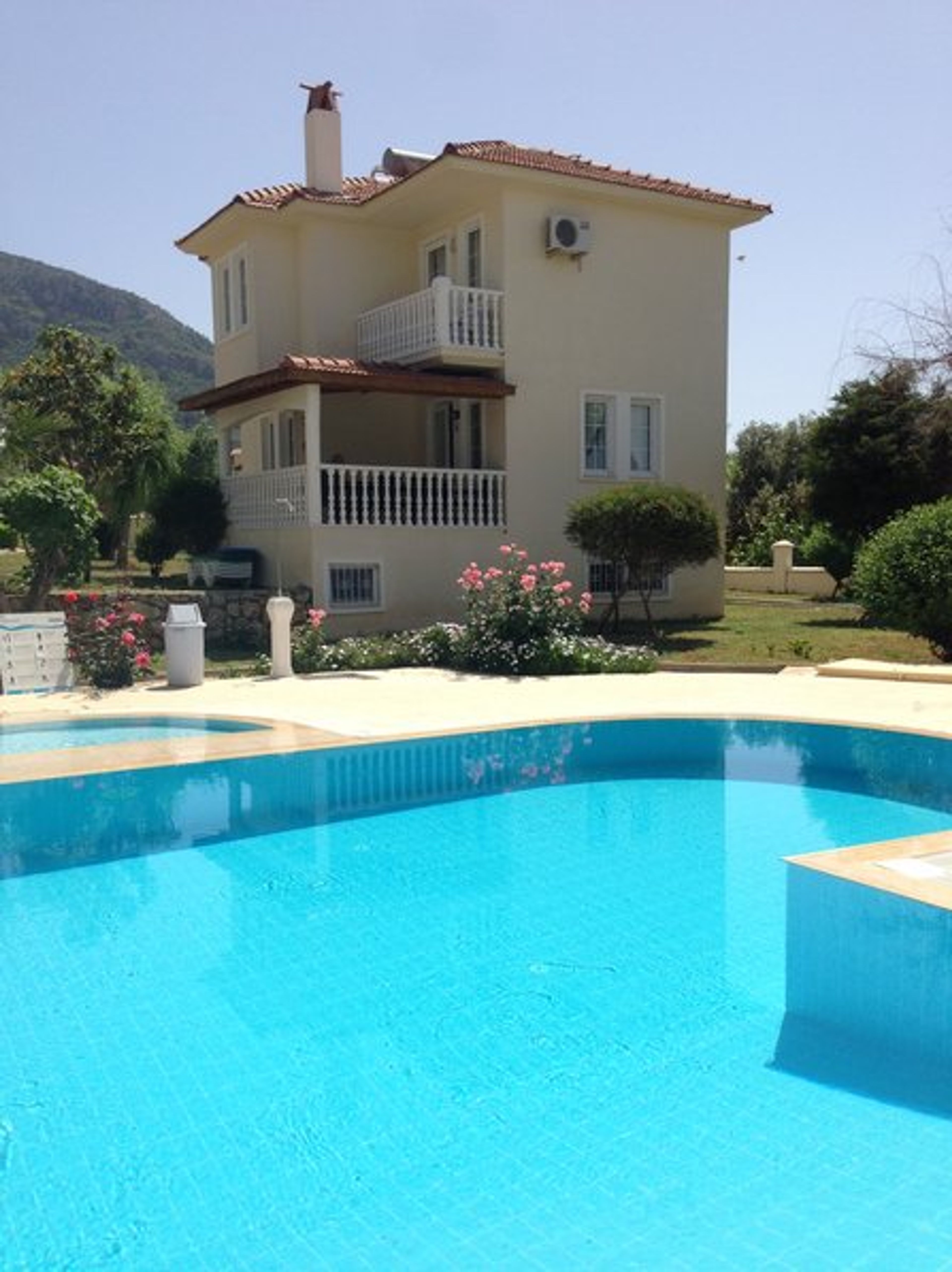The villa is in a great position just on the outskirts of the bustling village of Hisaronu in the sort after area of Ovacik, nestling just below the mountains and with wonderful mountains views and fantastic views over the village.