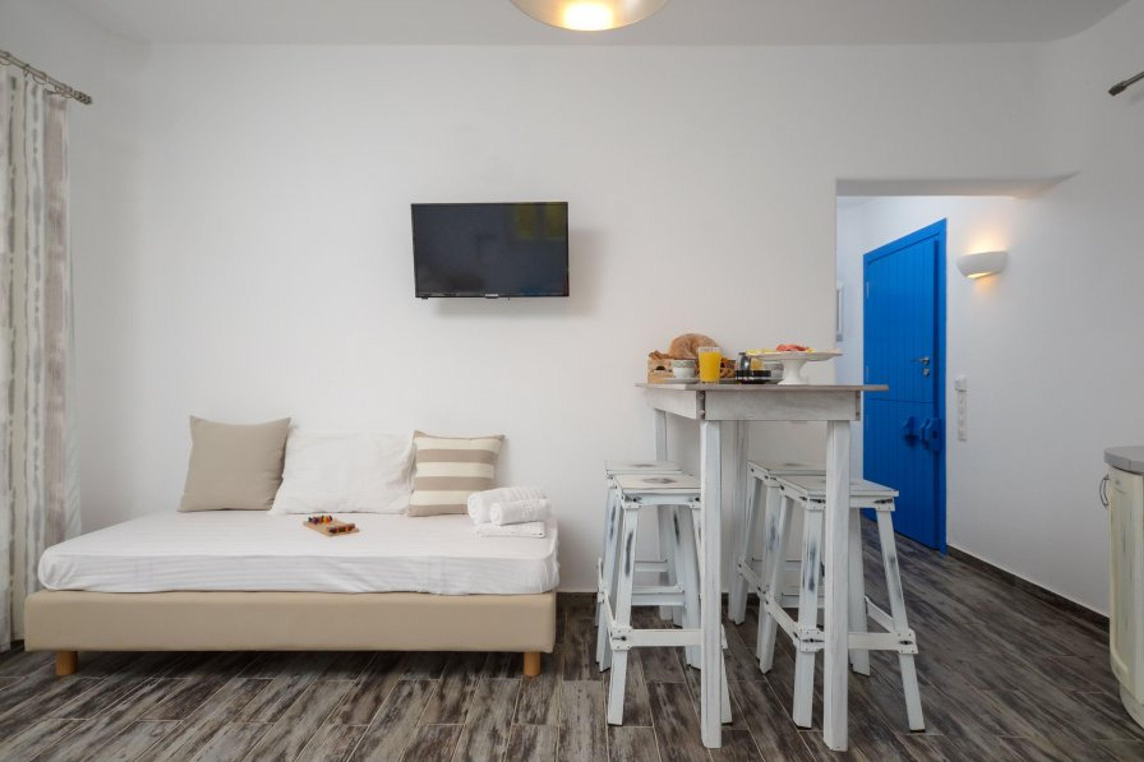 On the 2st level there is a living room with a TV, a/c ,a fully equipped kitchen with an oven, a refrigerator, kitchenware , a coffee machine , a king size double bed and one single with bathroom and 2 verandas.