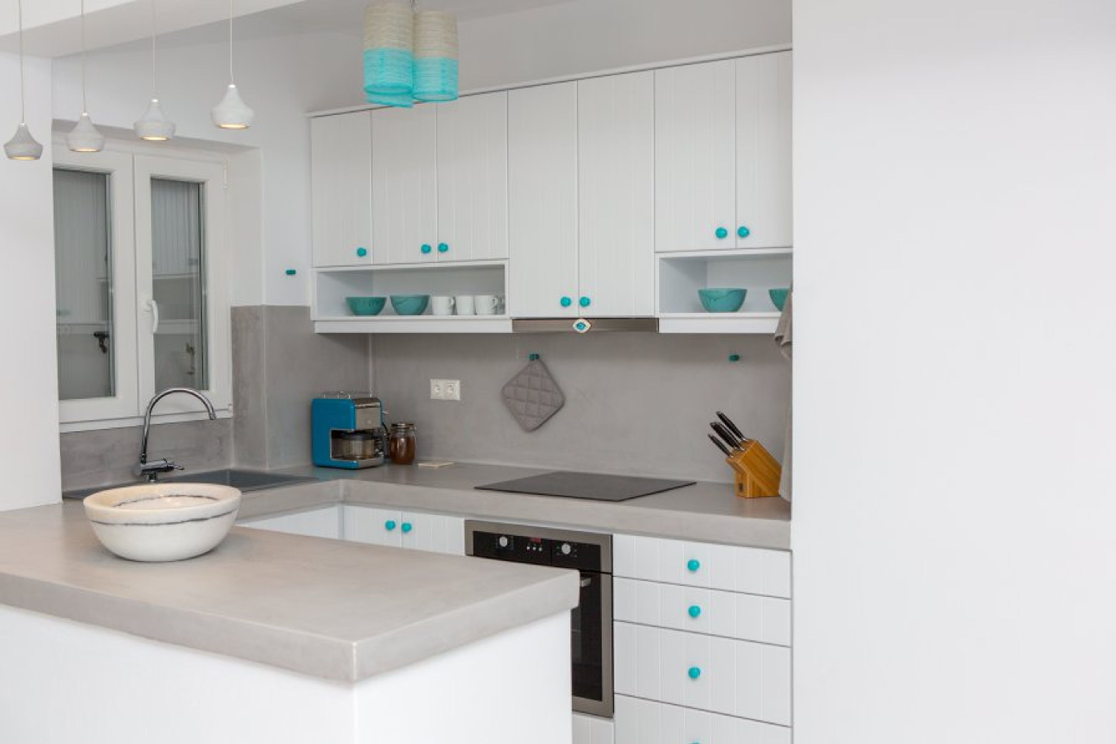 All the villas offer sea and mountain view, garden, barbeque, private parking, 2 bedrooms, bathroom, 2 balcony’ s , 2 led TV ,a/c, laundry, kitchen with full equipment-living room, 24h hot water, everyday cleaning , free Wi-Fi, free transfer from port/airport.