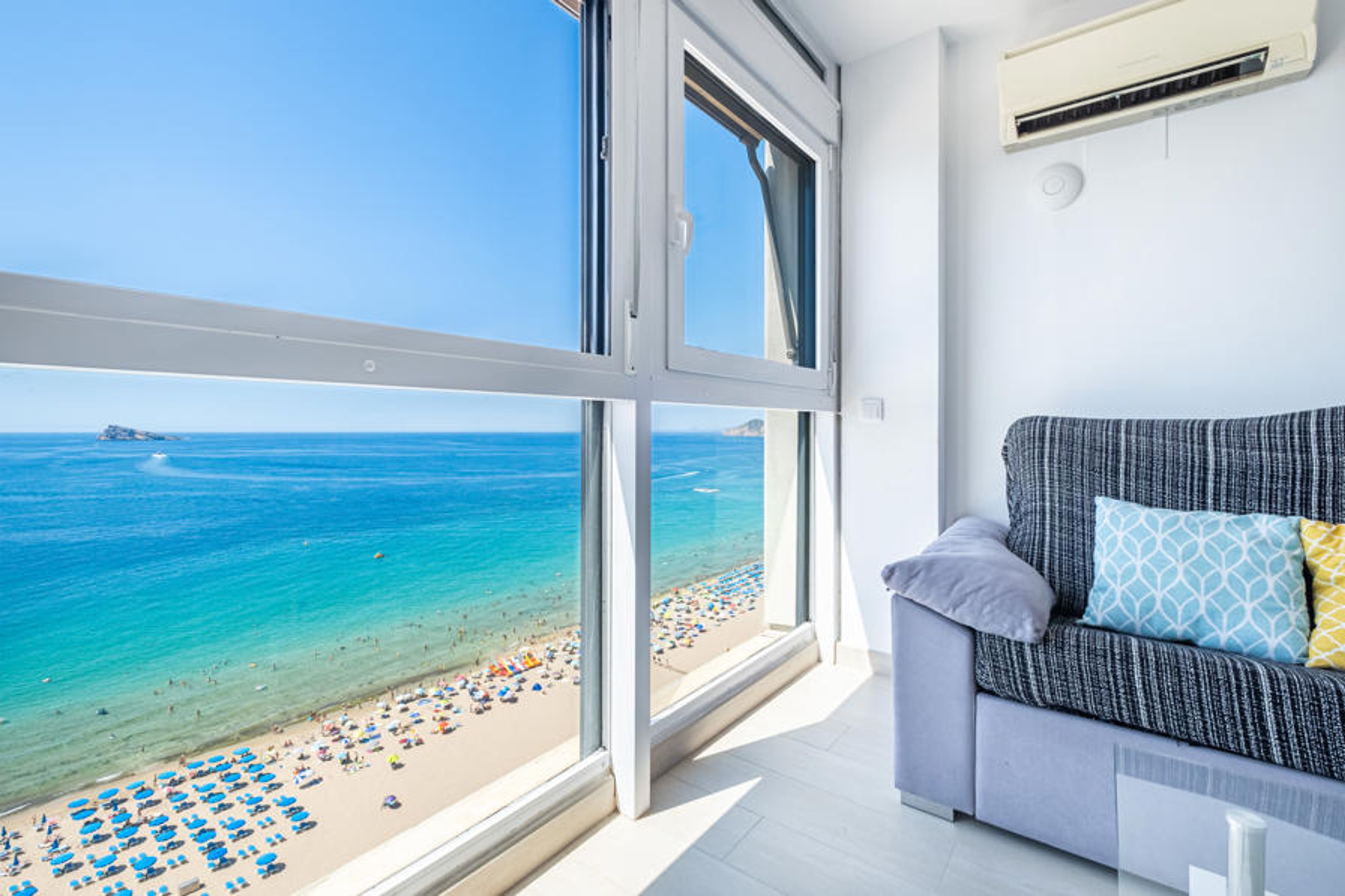 Renovated apartment on the Levante beachfront, Benidorm, with direct access to the beach from the building. It has 1 bedrooms and capacity for 4 people. Tastefully and modernly furnished 70 m² accommodation, with panoramic views of the sea and the bay.