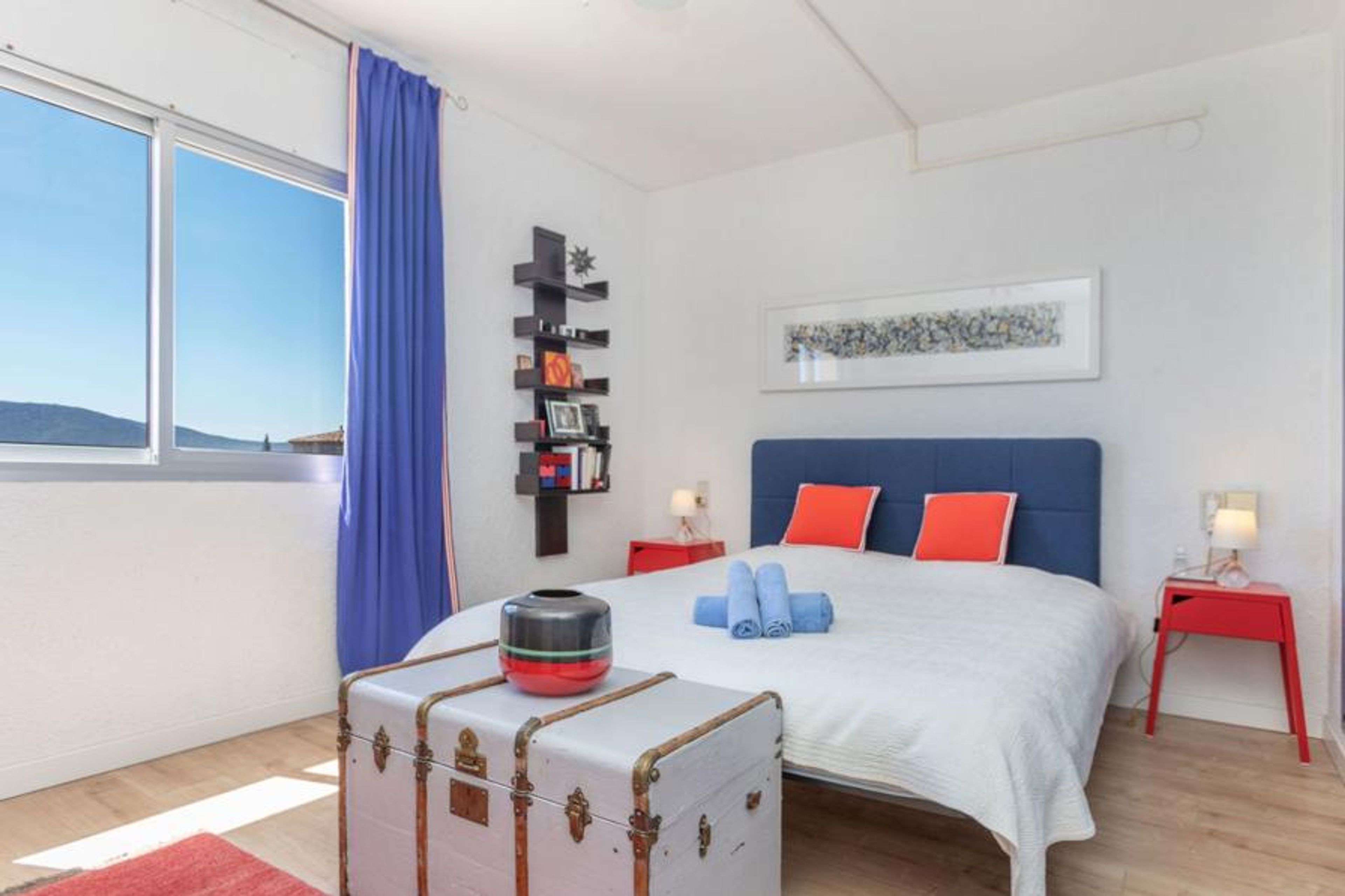 "Can Gy", 6-room house 200 m2 on 2 levels. Comfortable and modern furnishings: living/dining room with open-hearth fireplace and satellite TV (flat screen), fan. Exit to the terrace. 1 room with 1 french bed, shower/WC and forced-air heating. Exit to the terrace. 1 small children's room with boiler (100 litres). Open kitchen (oven, 4 ceramic glass hob hotplates, microwave, electric coffee machine). Sep. WC. On the lower ground floor: (spiral staircase), 1 room with 2 beds (90 cm). 1 room with 1 bed (90 cm), 1 x 2 bunk beds (90 cm). 1 room with 1 french bed (1 x 160 cm, length 200 cm), shower/WC. Exit to the patio. 1 room with 1 french bed (1 x 160 cm, length 200 cm), fan. Bath/bidet/WC, sep. WC. Large terrace, patio. Terrace furniture, barbecue, deck chairs (6). Marvellous panoramic view of the sea, the mountains and the resort. Facilities: washing machine, children's high chair, baby cot. Internet (WiFi, free). Parking (2 cars) at the house. Suitable for families. On the ground floor terrace there is a porch with outdoor kitchen, 4 rings, dishwasher, refrigerator and stone table. HUTG053338