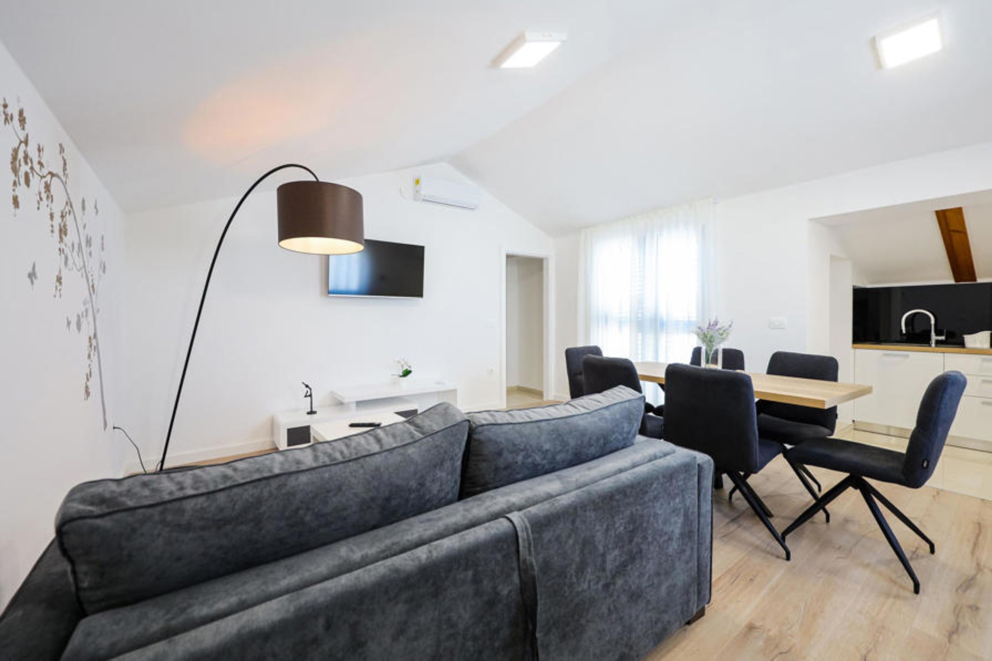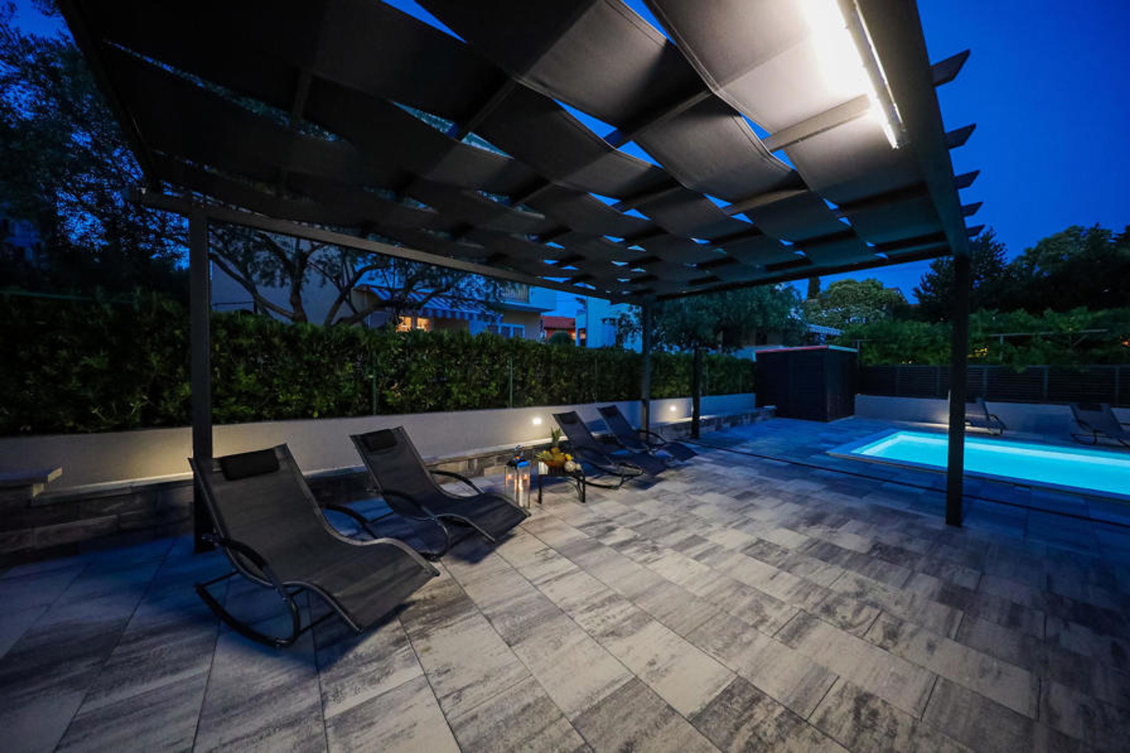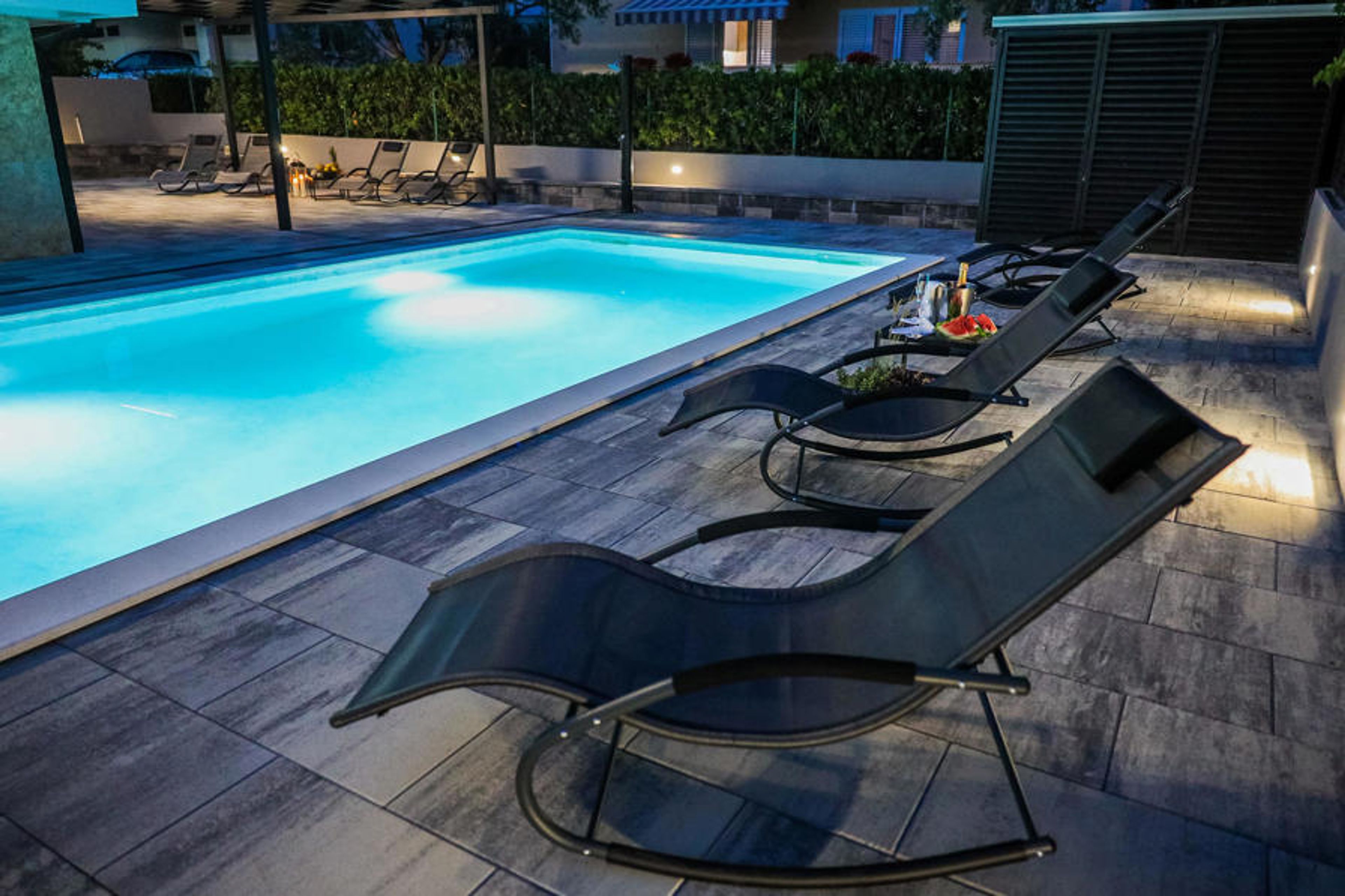 Super modern and minimalist style furnished apartment with pool in Zadar. This vacation apartment is located in a building with several apartments and has a very modern design.