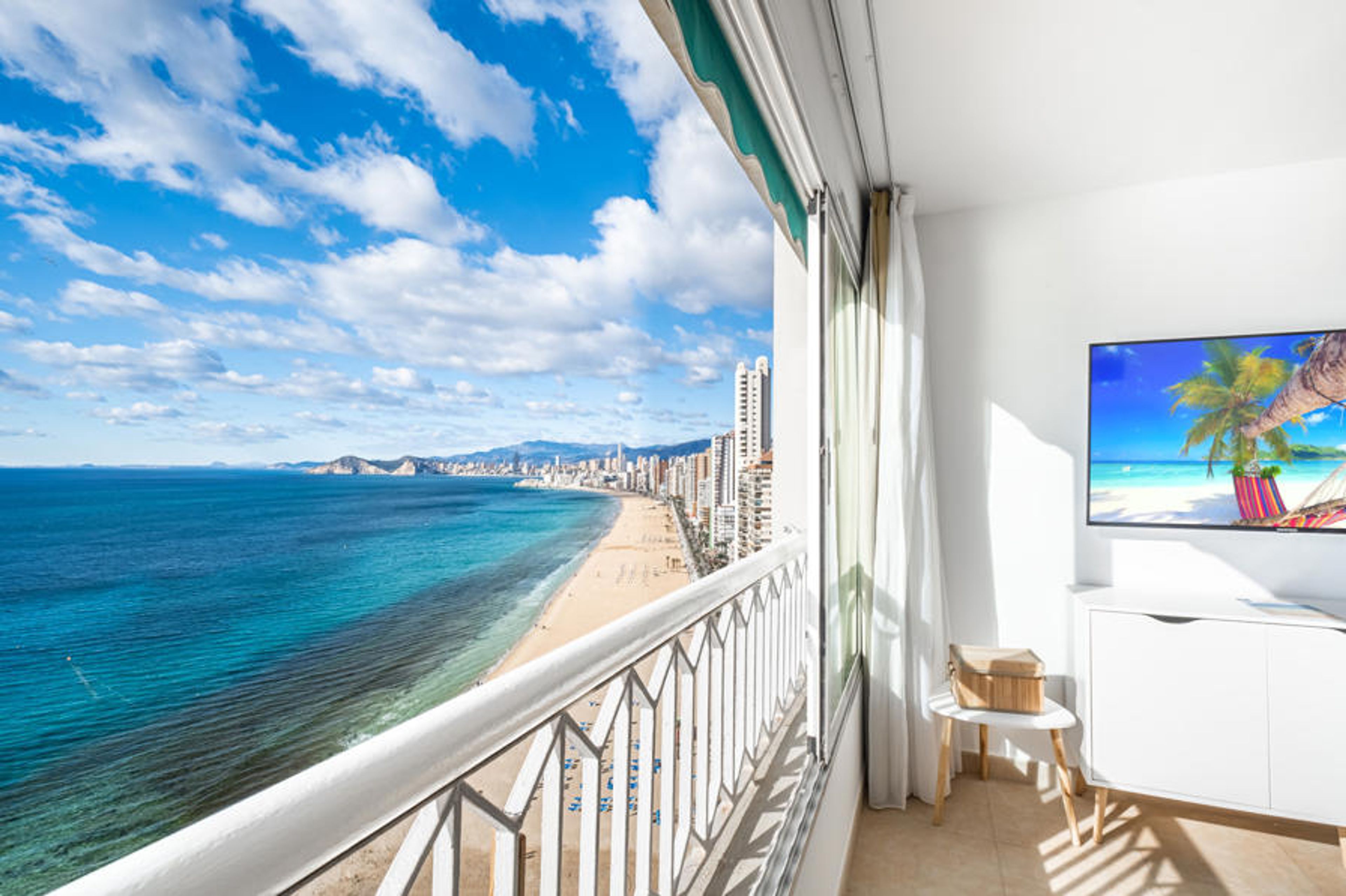 Apartment on the first line of Levante beach, Benidorm, with direct access to the beach from the establishment. It has 1 bedroom, 1 bathroom with shower and capacity for 4 people. Accommodation of 59 m² cosy and fully equipped, with panoramic views of the sea, the bay and the city.