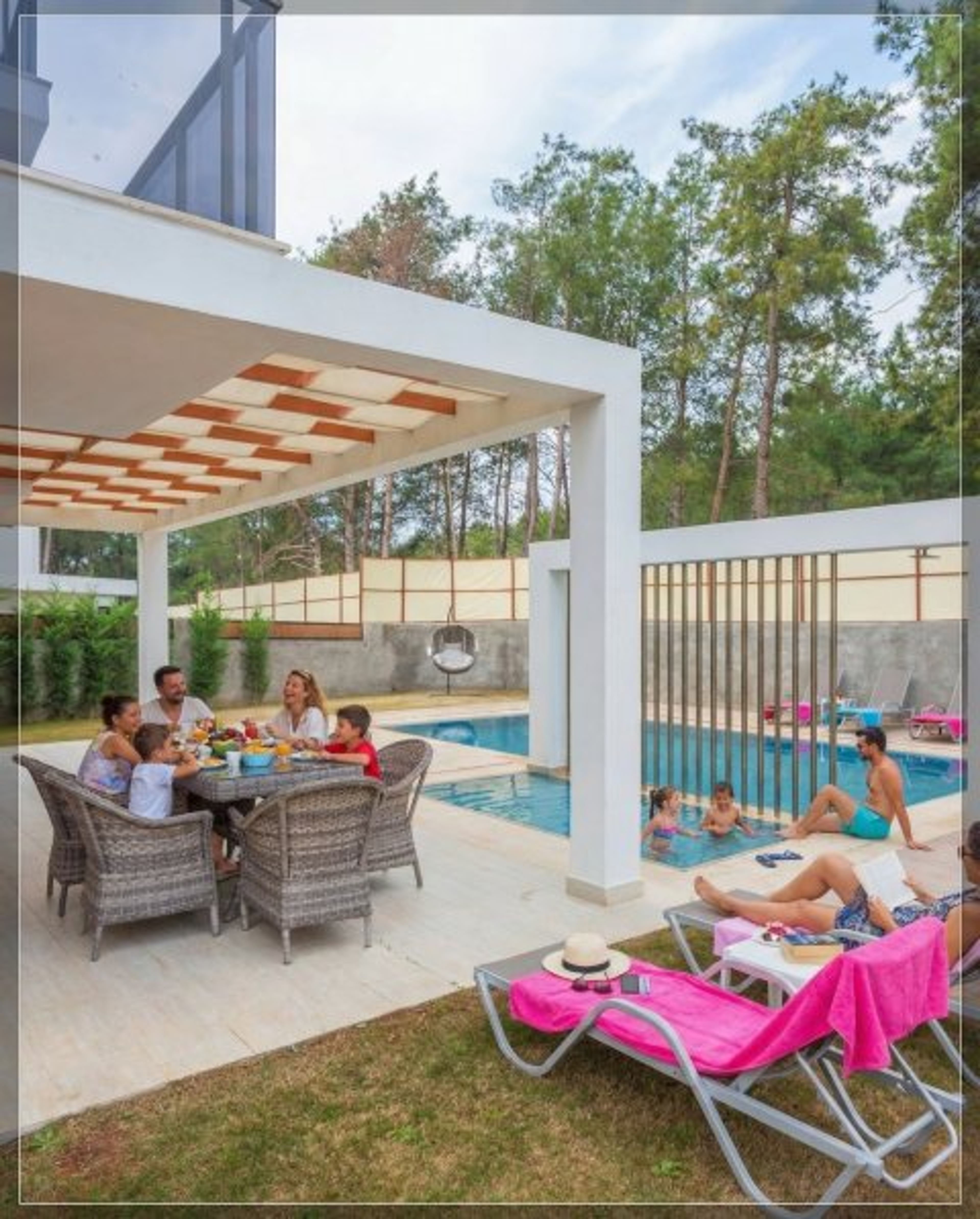 This modern villa has its own private garden with BBQ, swimming pool and children’s pool: along with its own private parking space. This property is a real home from home with everything you need for a wonderful family holiday.