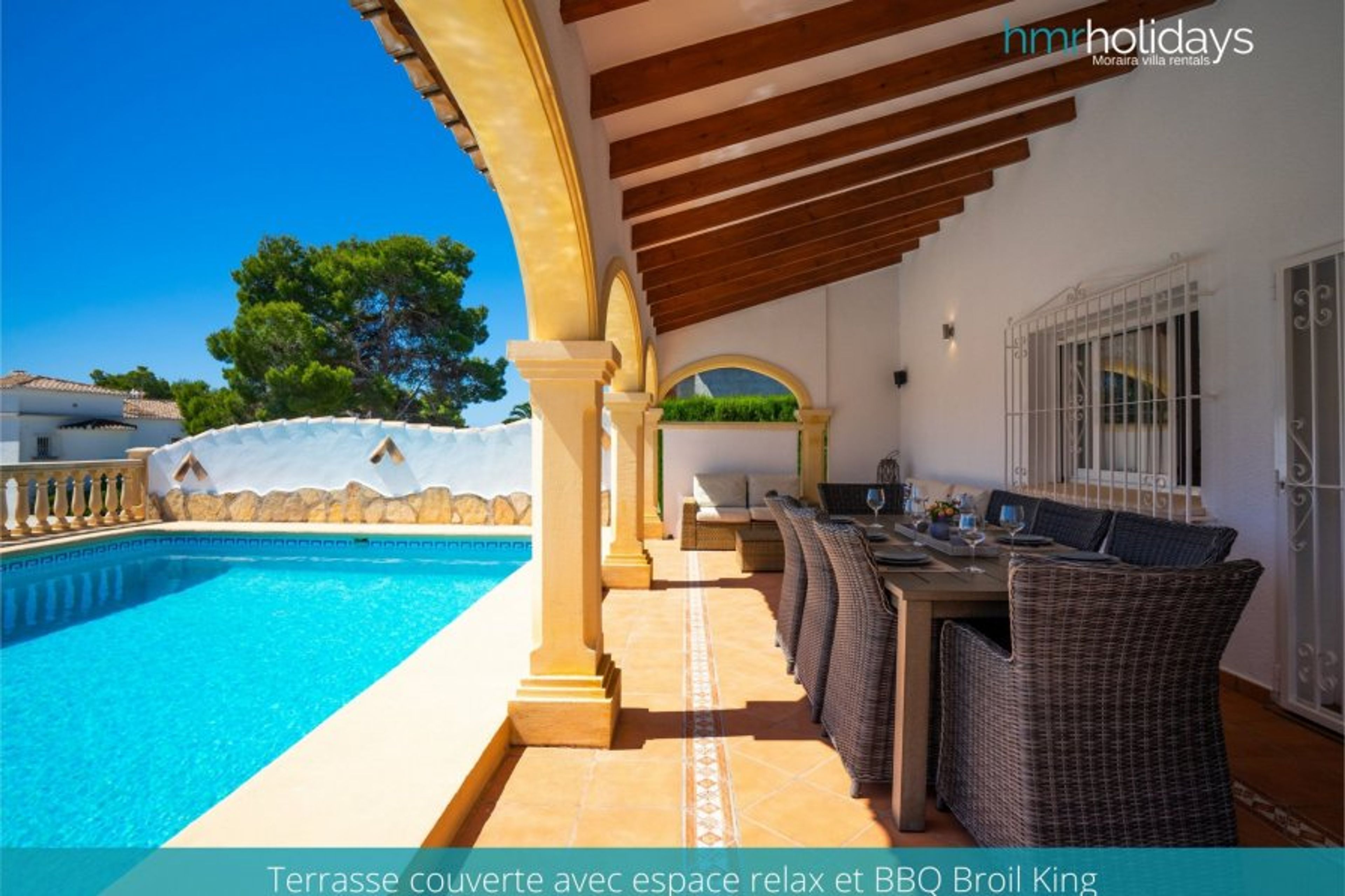 The outdoor area of the villa is equally impressive, featuring a large private pool, surrounded by sun loungers and umbrellas for your comfort. There is also a covered chill-out area, perfect for escaping the sun during the hottest part of the day, as well as a gas BBQ for alfresco dining.