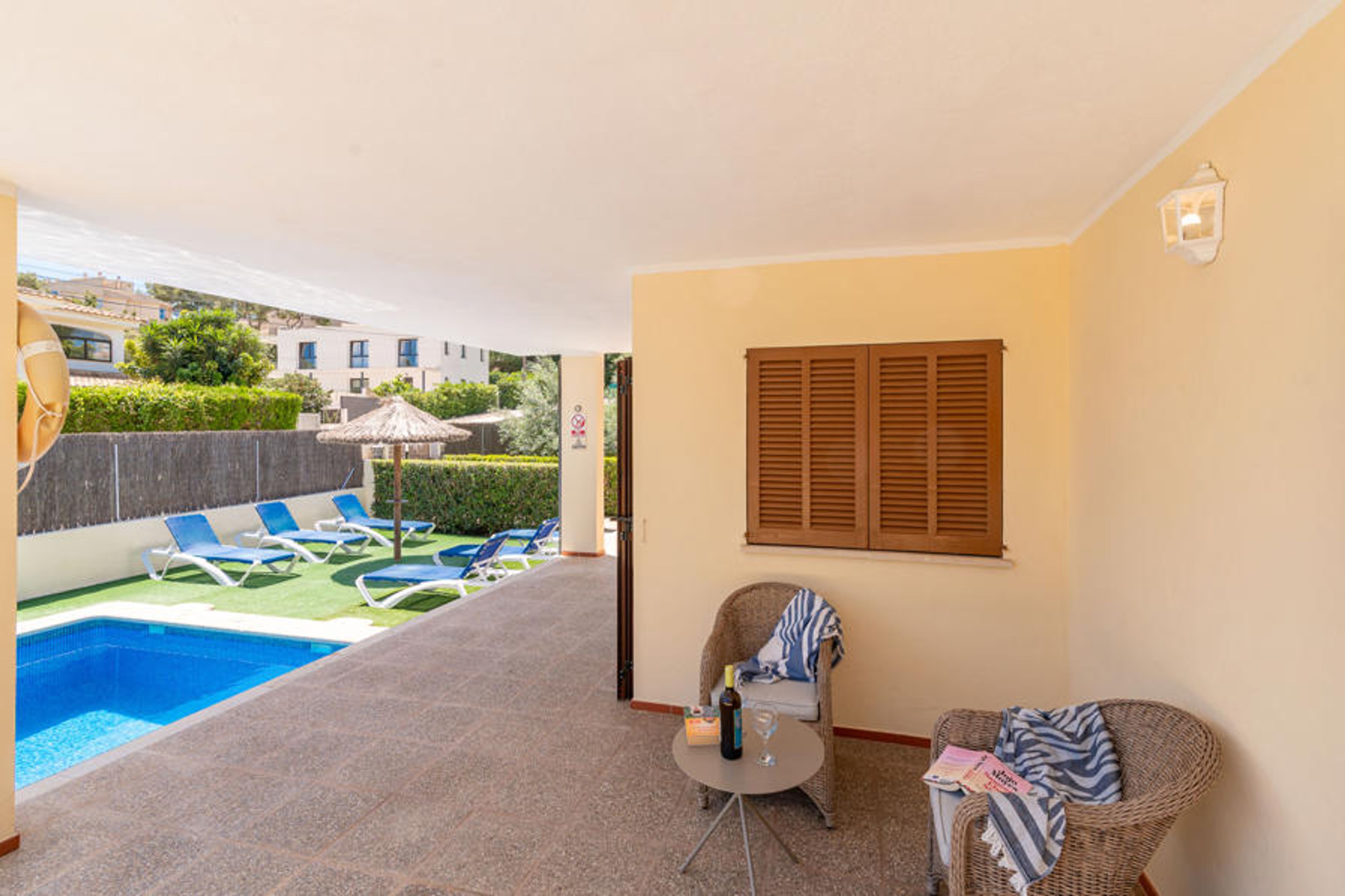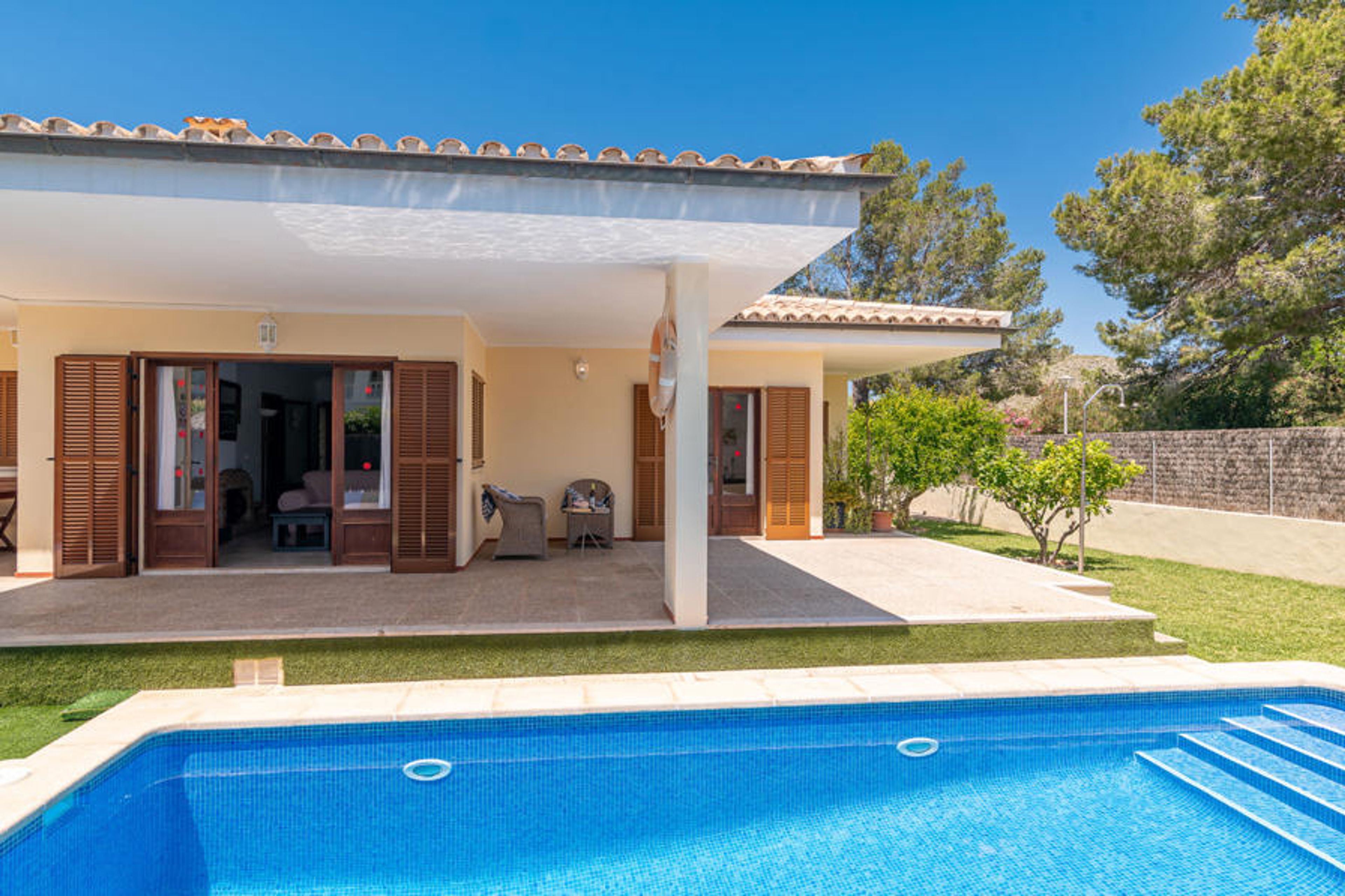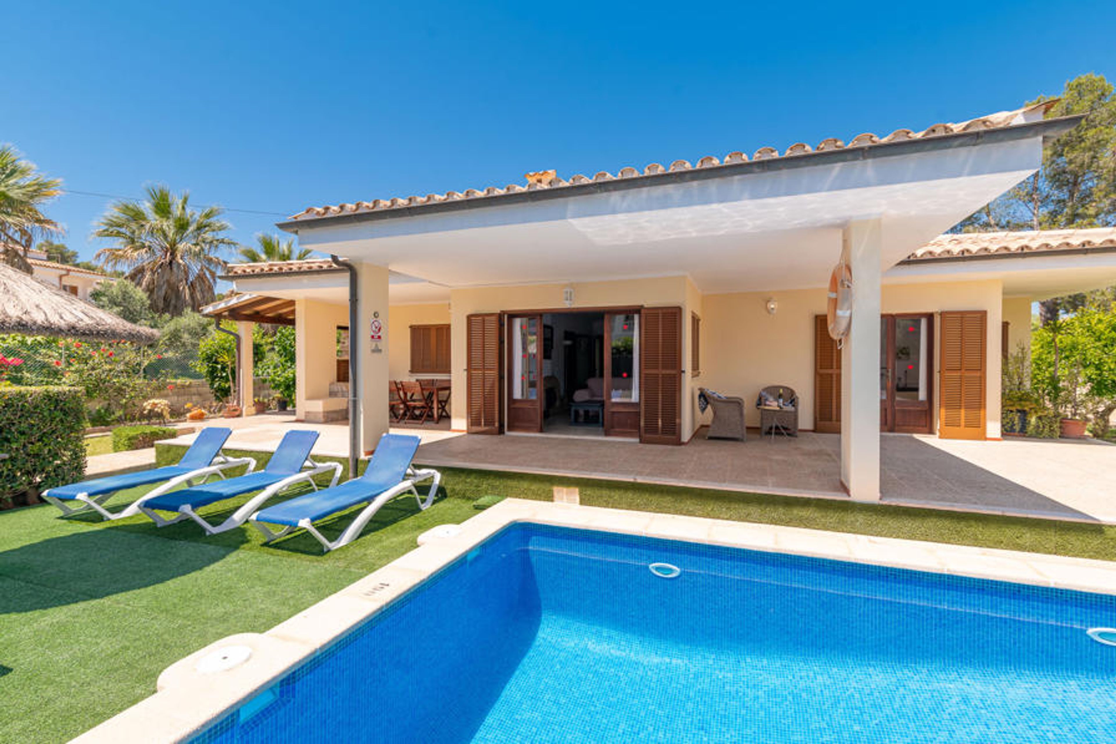 This pleasant villa with 3 bedrooms has a private swimming pool and a brick barbecue, as well as a view of the Tramuntana mountain in the distance. It includes WiFi and air conditioning/heating in all rooms.