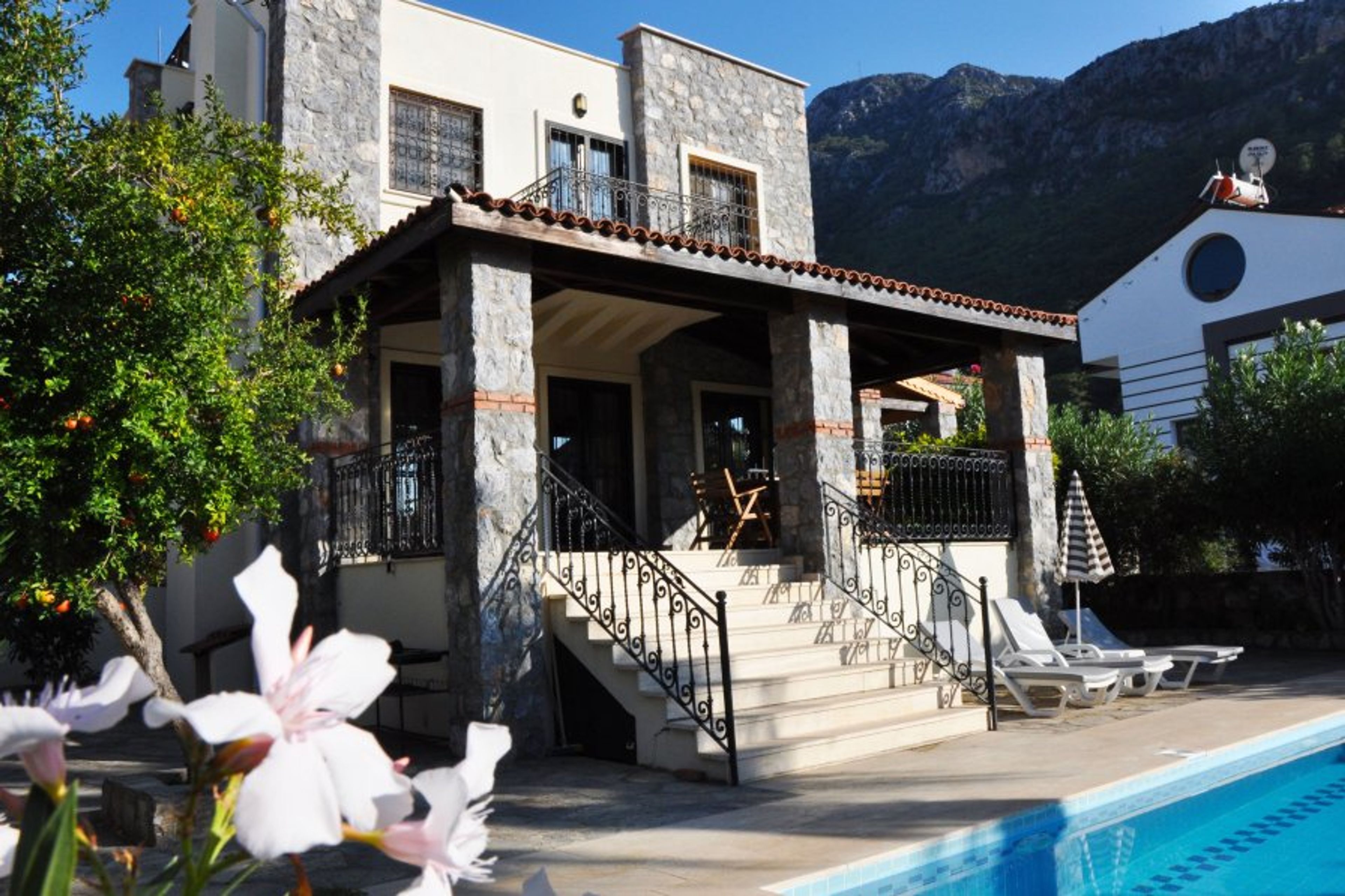 Olive Villa is a three bedroom villa set on the mountainside in the village of Ovacik. It has beautiful views of the surrounding countryside and mountains beyond.