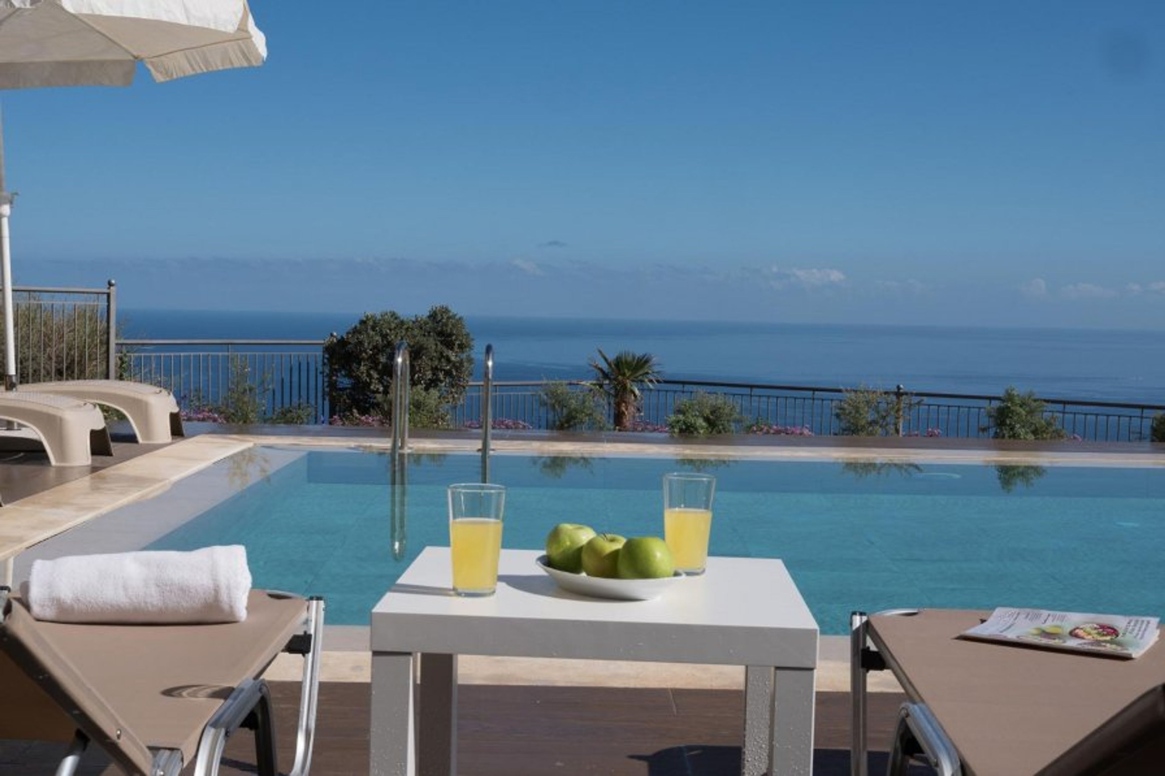 Outside, the villa is surrounded by lush gardens and extensive terraces providing the most sensational views over the Mediterranean Sea and the resort of Agia Pelagia below. The large, private pool measures 50sqm and depth is between 1.2m and 1.6m . Comfortable sunbeds as well as parasols are provided for the guests for long hours of relaxation under the Cretan sun. Finally, for the lovers of self-catering holiday, a huge outdoor kitchen is available together with dining area. Private parking available within the premises.