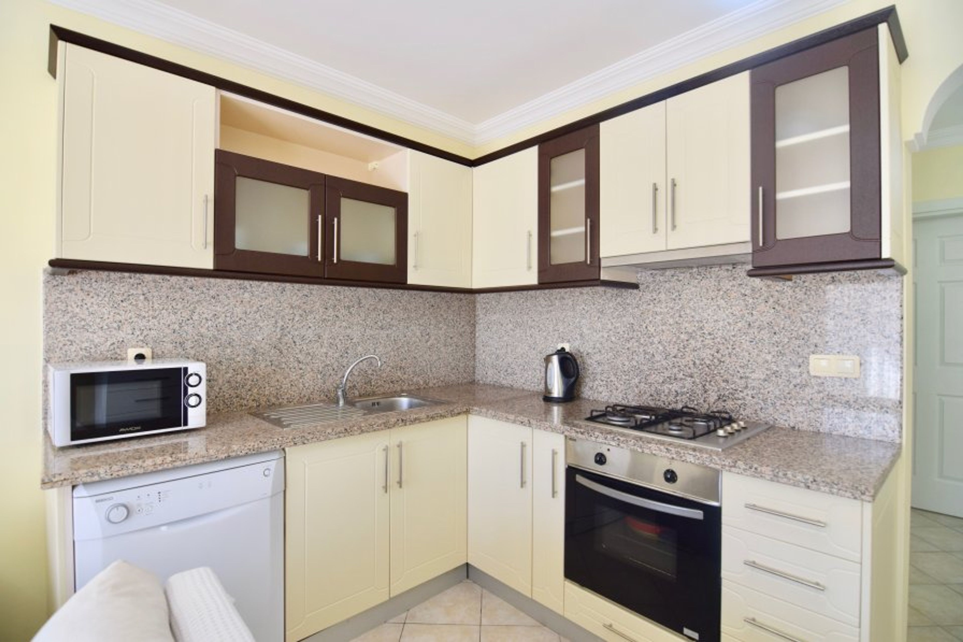 Sunset Beach Club is a self-sufficient 5 stars complex with SECURITY 24/7 and has got everything you need for a wonderful holiday, including a Private beach, Water Sports, 6 outdoor and 1 indoor swimming pools, Restaurant, Café, Pool bar, Fitness Centre, Turkish Bath & Spa & Massage centre, Internet access and Market shop. The beautiful gardens are all well maintained and landscaped.