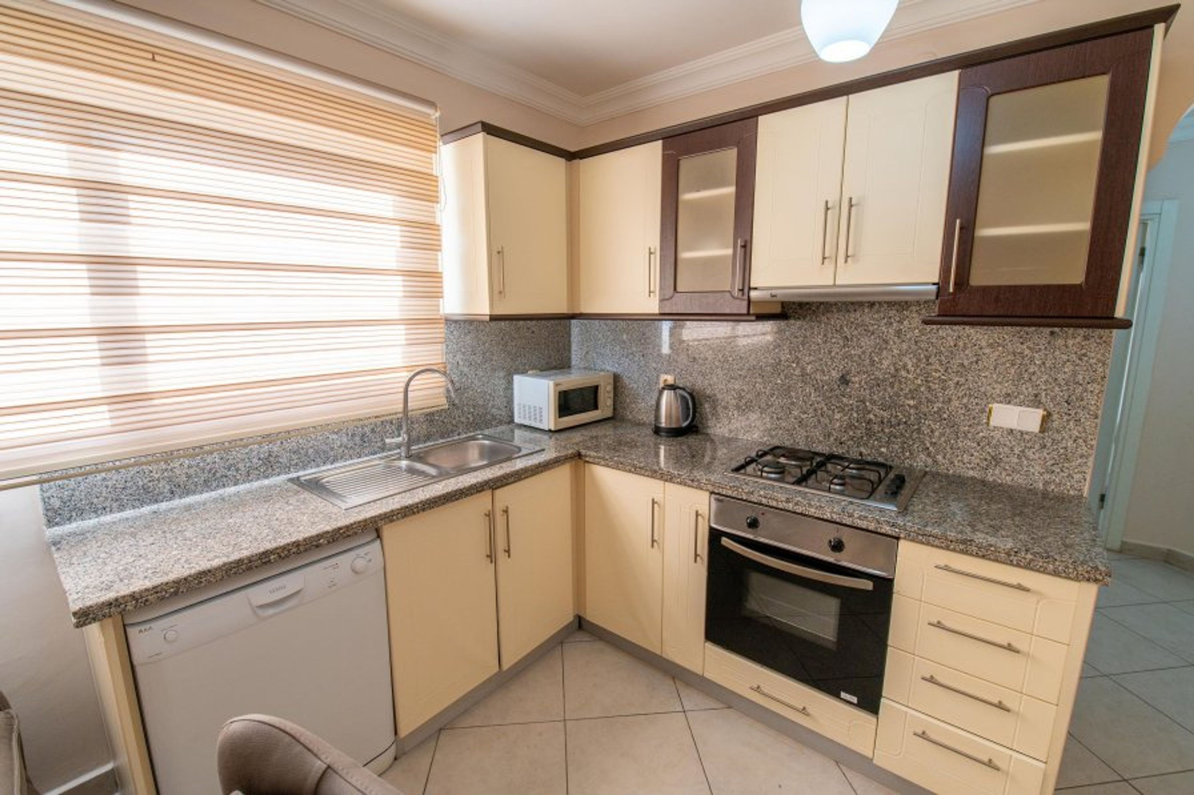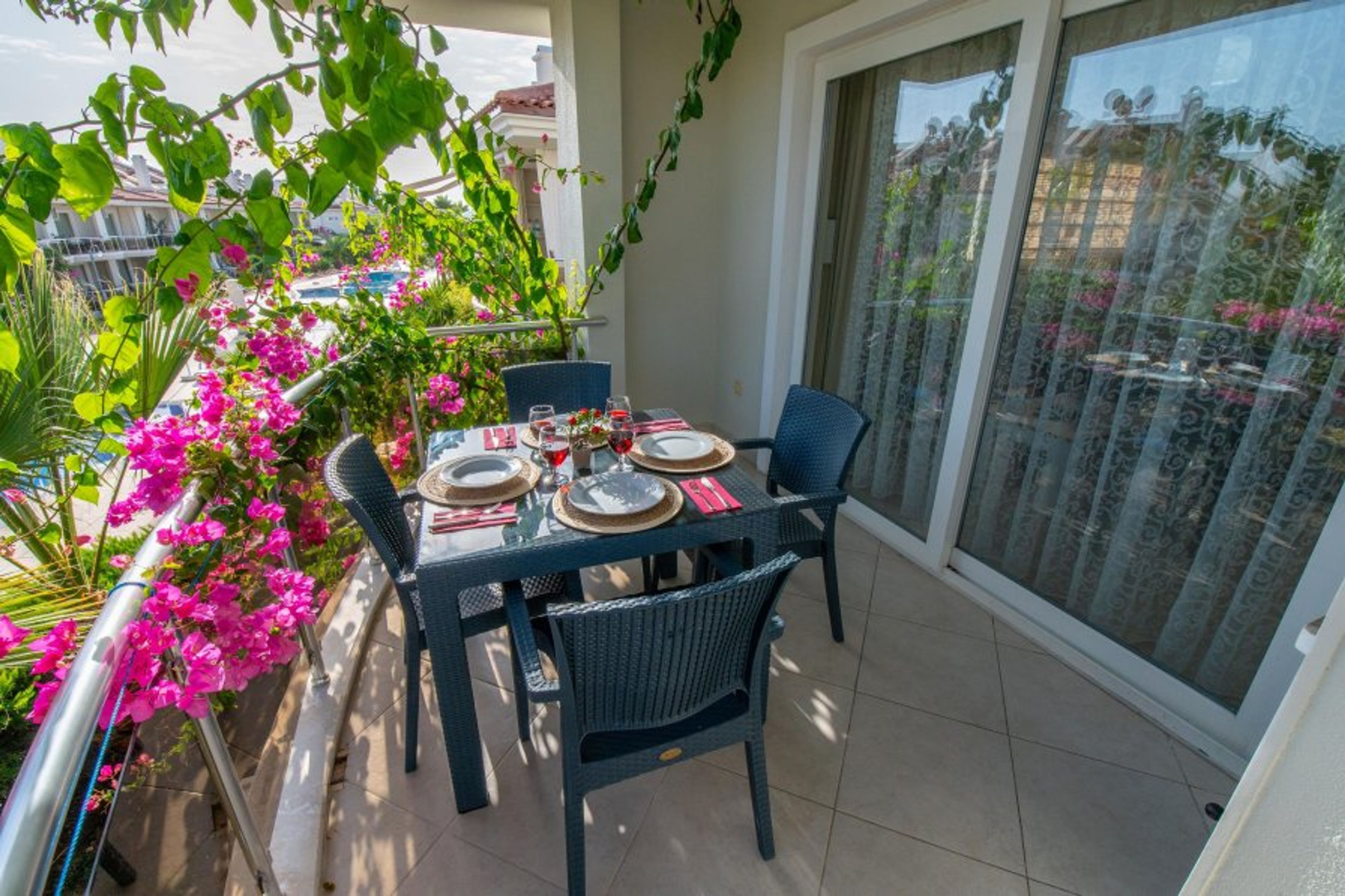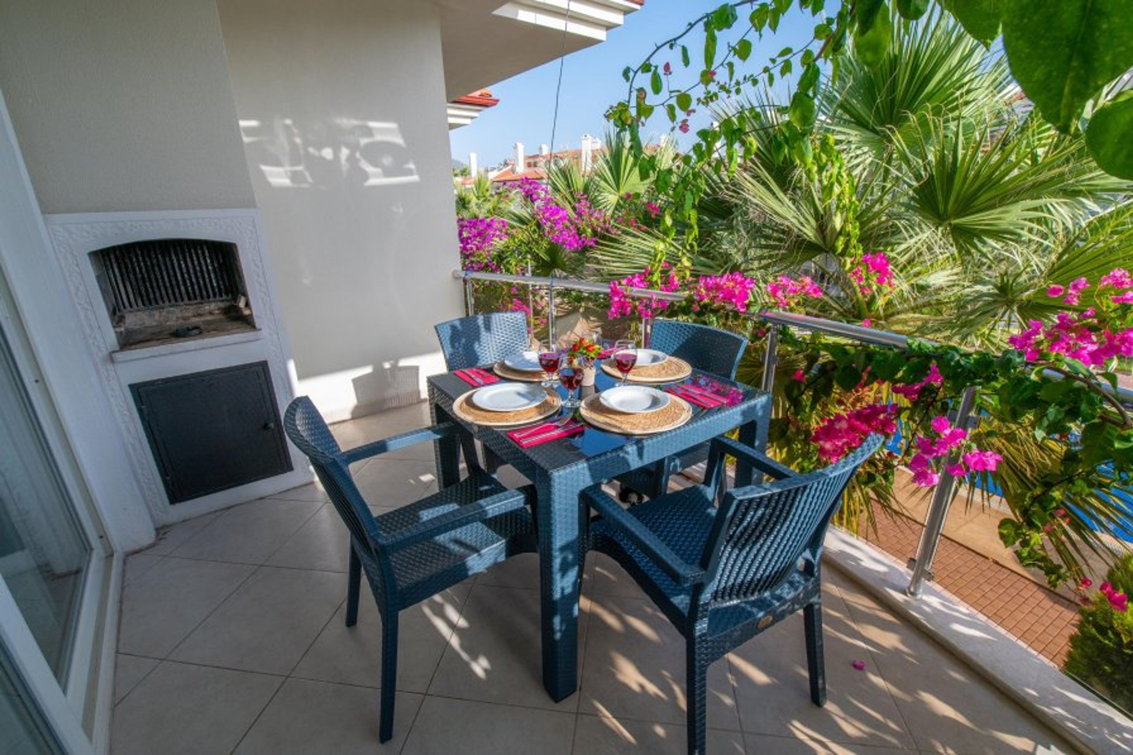This 2 bedroomed dream apart is located at Sunset Beach Club complex in Fethiye/Calis- Aqua Lettings. This fully air-conditioned 2 bedroom ground floor apartment has an open-plan kitchen which leads out onto the balcony. 2 bathrooms, 1 located on the first floor and 1 on the second with Jacuzzi. (Extra bed/baby cot available). With a large balcony dining area, you can enjoy your BUILT-IN BBQ or a cocktail whilst watching the poolside or chill out sunbathing around one of our many pools.