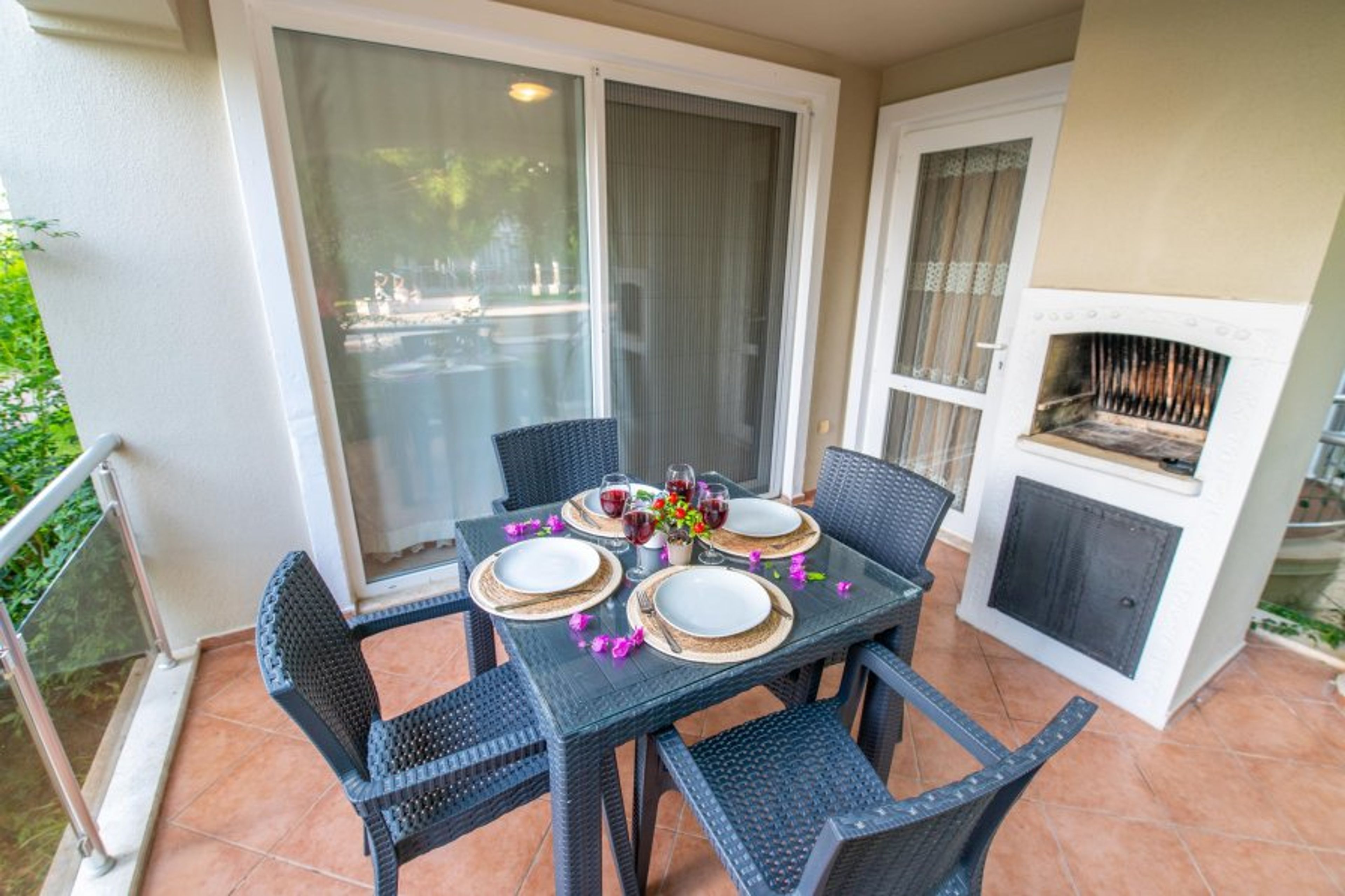 2 bedroom beachfront apartment located at Sunset Beach Club complex in Fethiye/Calis- Aqua Lettings This fully air-conditioned 2 bedroom ground floor apartment has an open-plan kitchen which leads out onto the balcony, 2 bedrooms and 2 bathrooms (Extra bed/baby cot available). With a large balcony dining area, you can enjoy your BUILT-IN BBQ or a cocktail whilst watching the poolside or chill out sunbathing around one of our many pools.https://www.rentalsystems.com/property/property-list