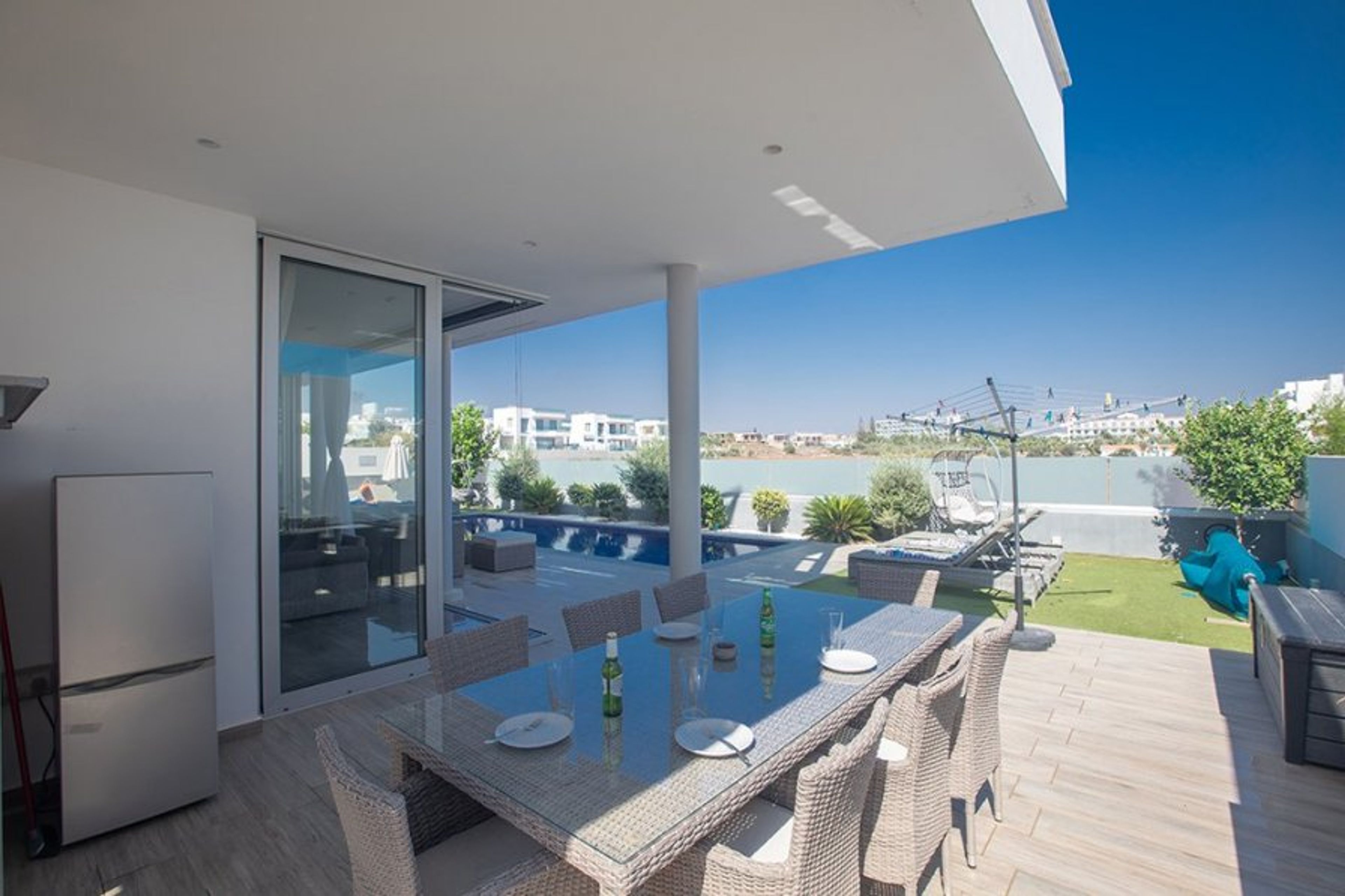 This stunning and luxurious villa is located in the popular resort area of Protaras and is just a 5 minute walk to the beach and to a vast selection of bars, restaurants and shops. The villa is newly built and fully equipped with brand new furniture and fittings to ensure a comfortable and perfect self-catering stay.