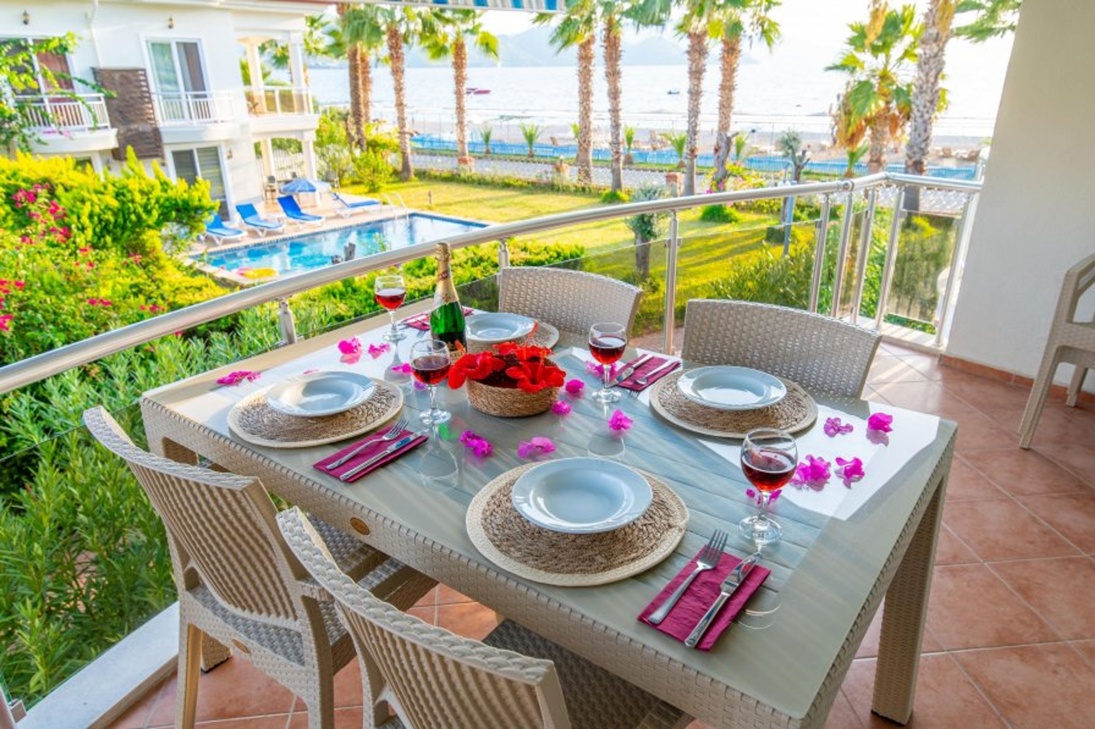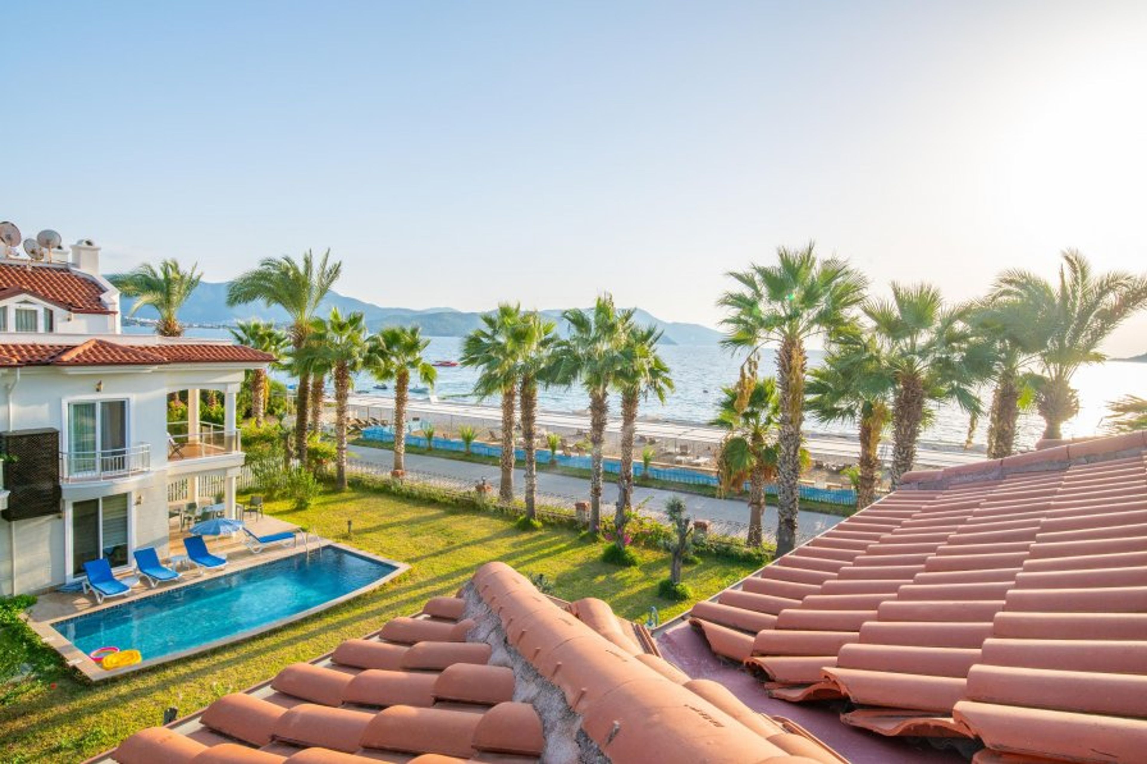 Sunset Beach Club is situated on the beachfront and it is just a 10-minute walk to Calis promenade where you will find an array of shops, restaurants & cafés start at 500 meters from the complex and goes further 500 meters. The main promenade at Calis beach boasts lovely views across the sea to the islands, mountains and hills in the distance.