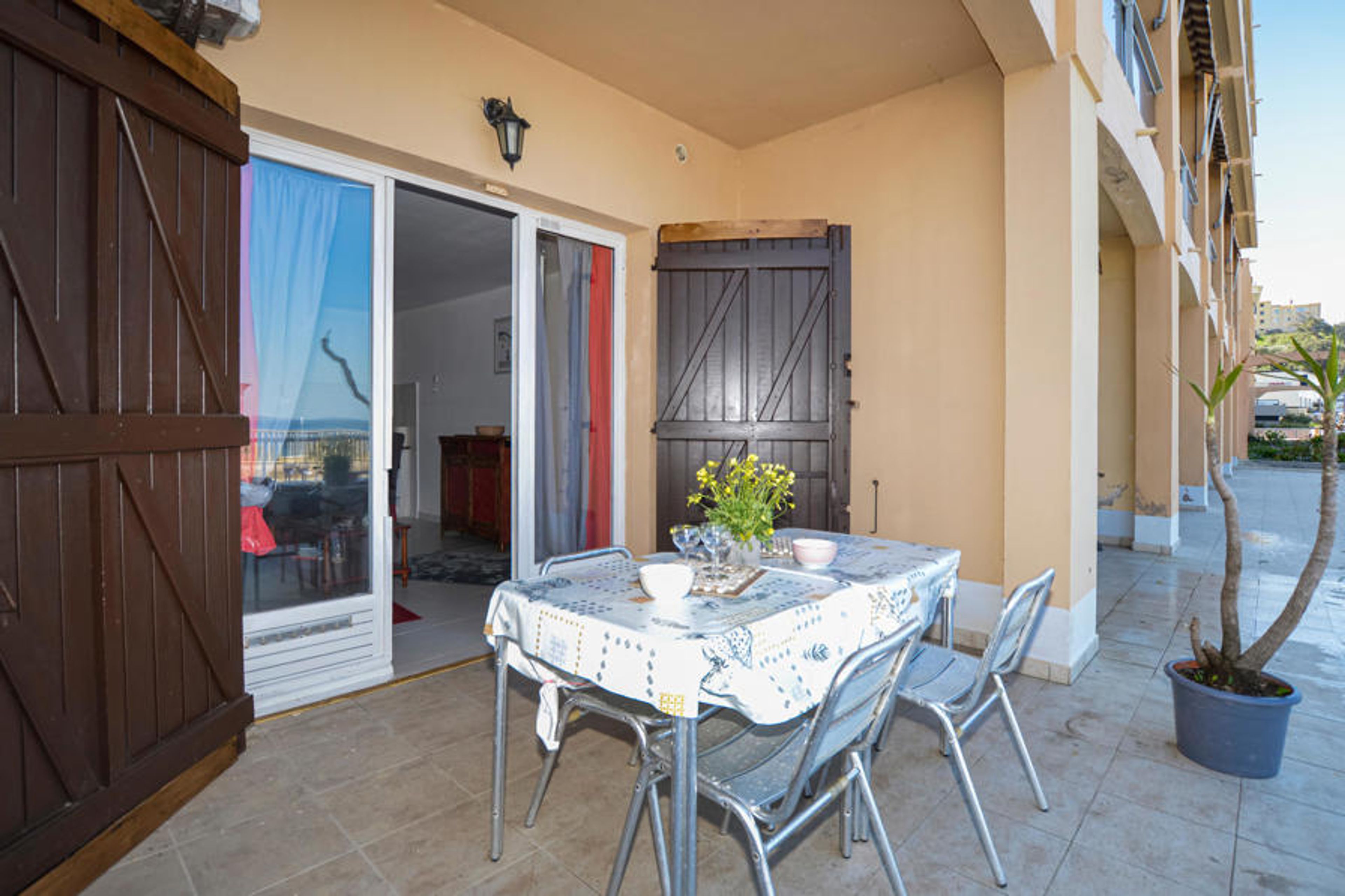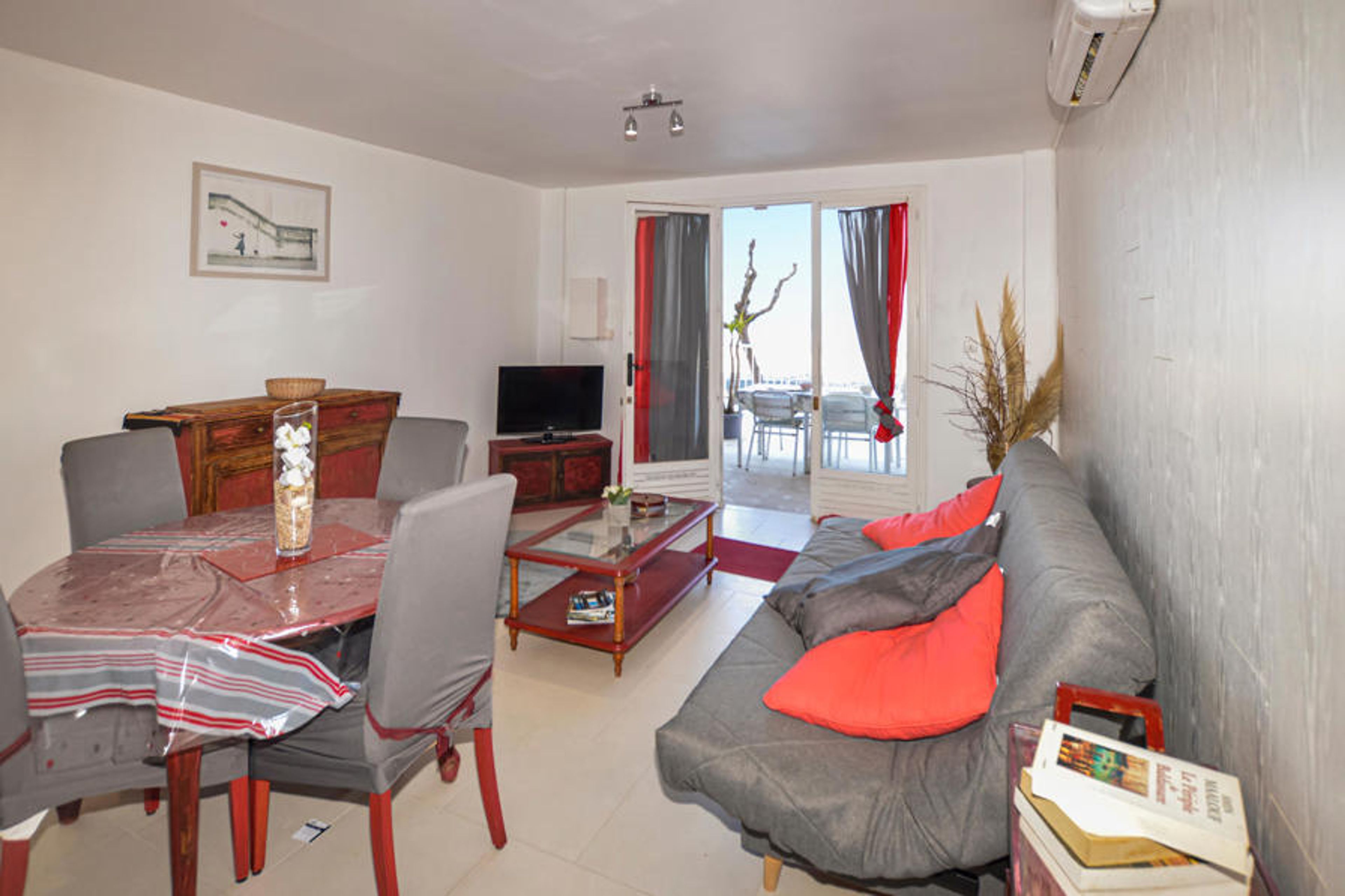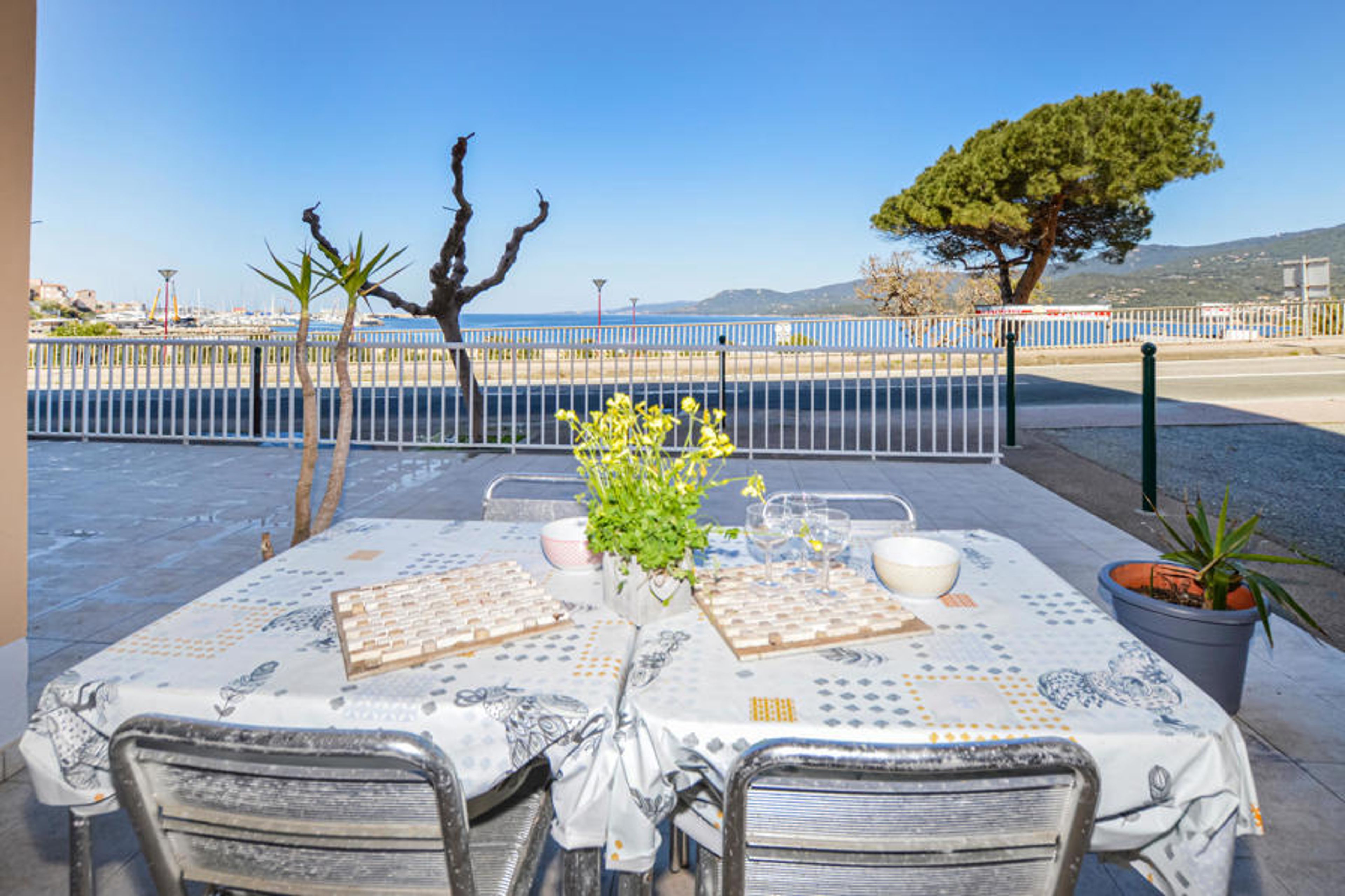 Modern, beachfront vacation apartment with large terrace and sea view.