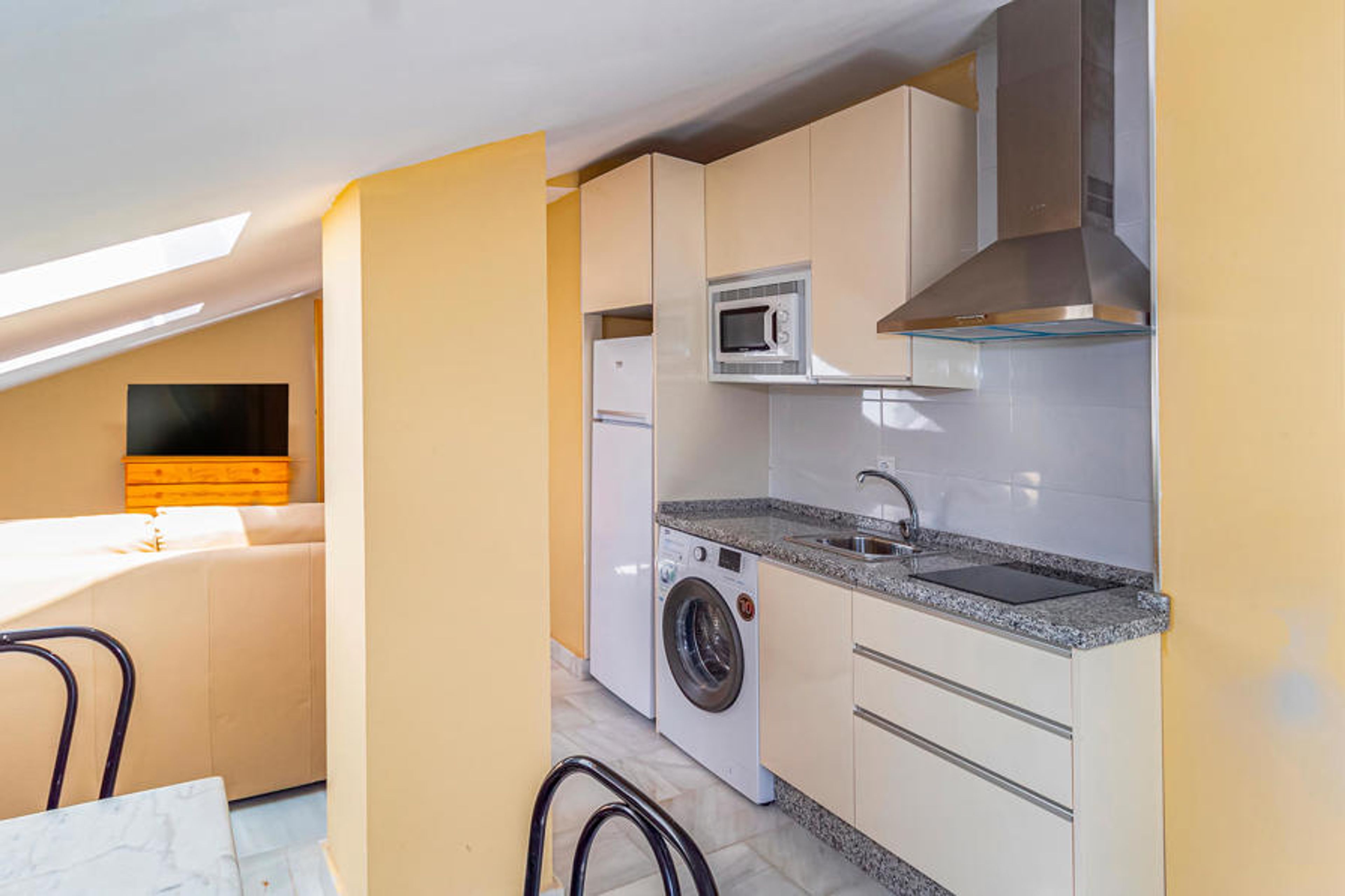Enjoy a vacation in beautiful Málaga and in this lovely vacation apartment for 3 people. The apartment is bright and practically furnished, located on the 7th floor and distributed in 1 bedroom, 1 bathroom, 1 living room and 1 kitchenette. Gather in the living room of the apartment for a cozy TV evening or plan the activities of the vacation here. This beautiful and renovated penthouse has sloping ceilings with large windows in the ceiling, allowing beautiful light to enter the bedroom and living room.