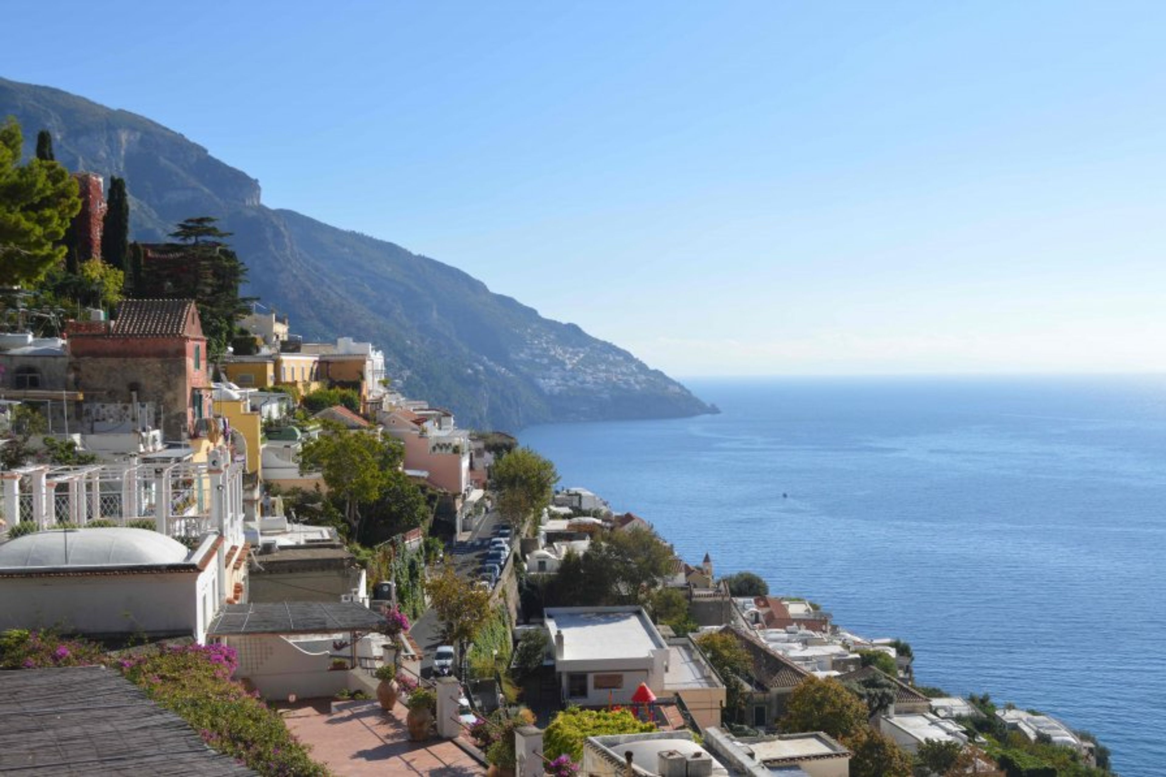 The pedestrian area can also be reached on foot through the old, typical ramps of stairs and romantic lanes which characterize Positano ; the local bus will take guests back up from the centre down below.