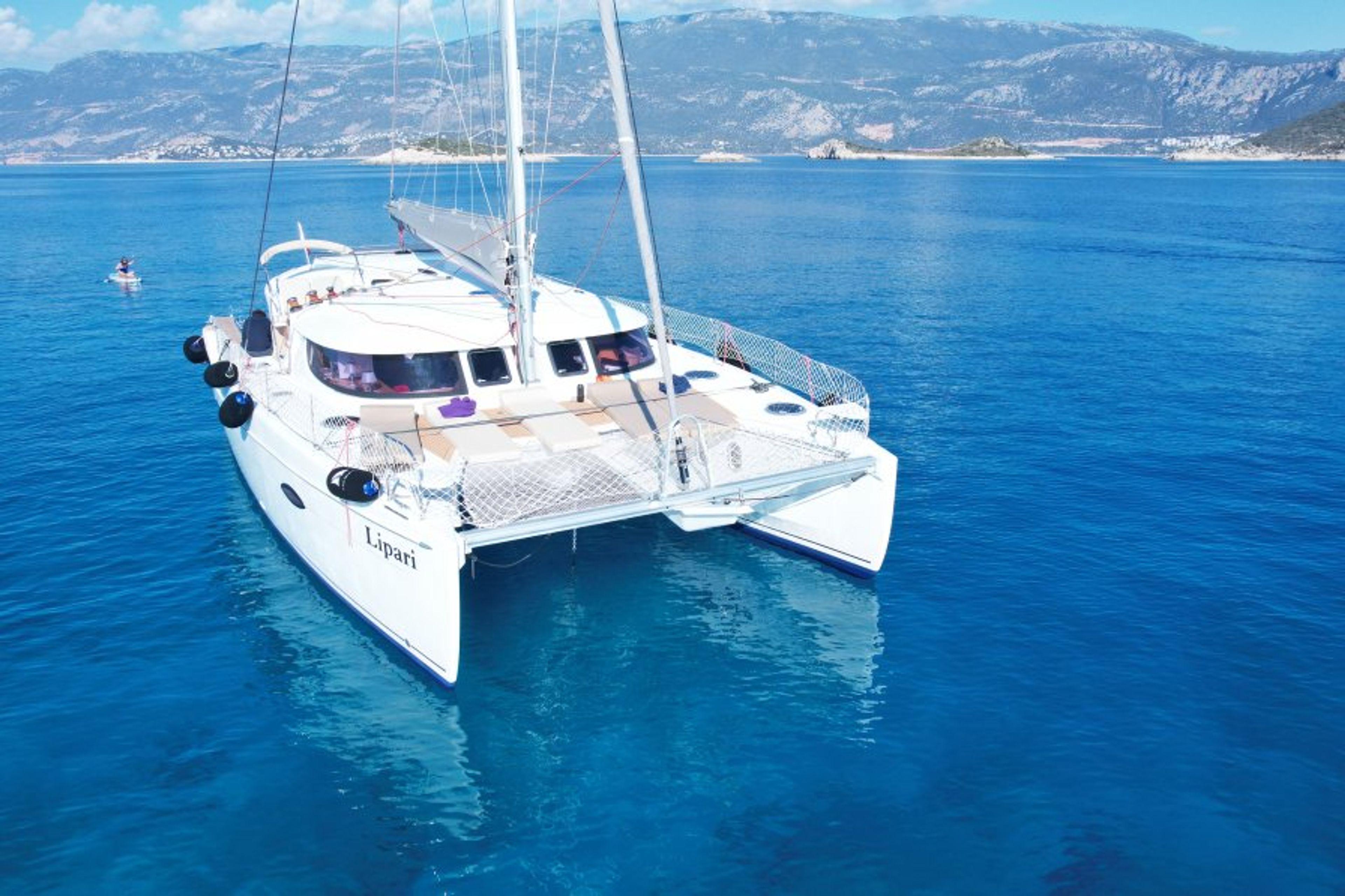 Charter catamaran Lipari 41 for rent in Kas Turkey and let us catapult you away for an unforgettable charter journey along the Mediterranean islands from Kas, Sunken City of Kekova, Kalkan, Fethiye and Göcek. Available for catamaran Crewed with our professional crew this all new sailing yacht can be rented for weekly charters starting from KAs Marina.