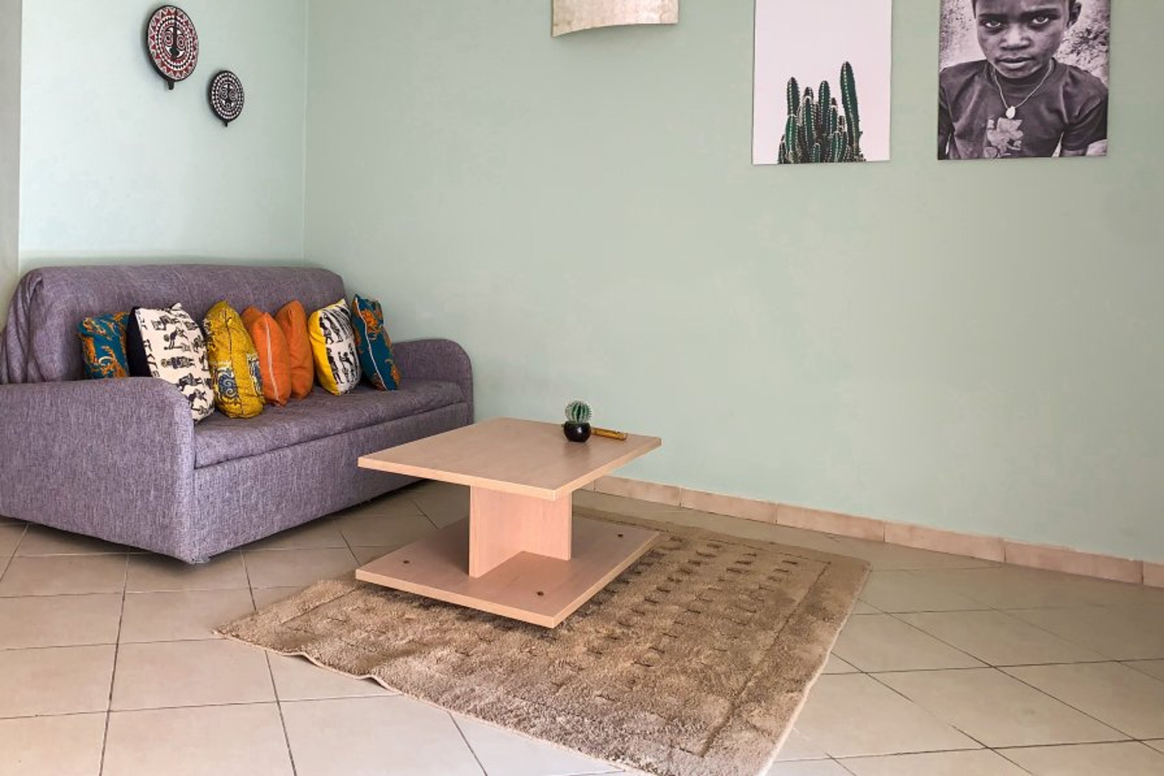 A sofa bed from where you can see the TV that has a out 24 international channels including movies channels.