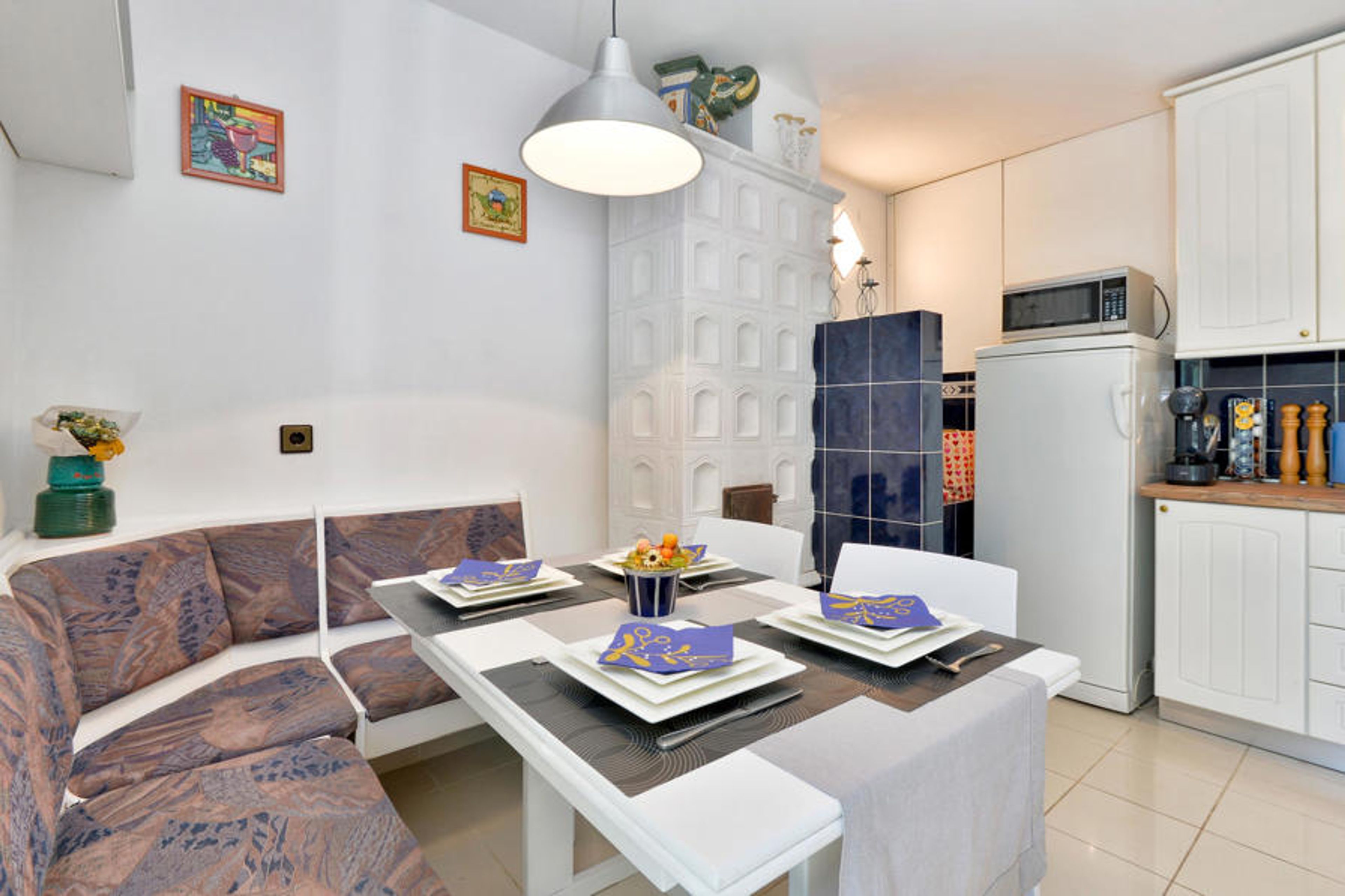 The house is spread over several floors and is nicely furnished. On the first floor is the kitchen, where you can prepare meals together and sit comfortably. On the second floor there are two bedrooms and a bathroom. The third floor offers another bedroom. On cool days the fireplace stove spreads pleasant warmth and coziness.
