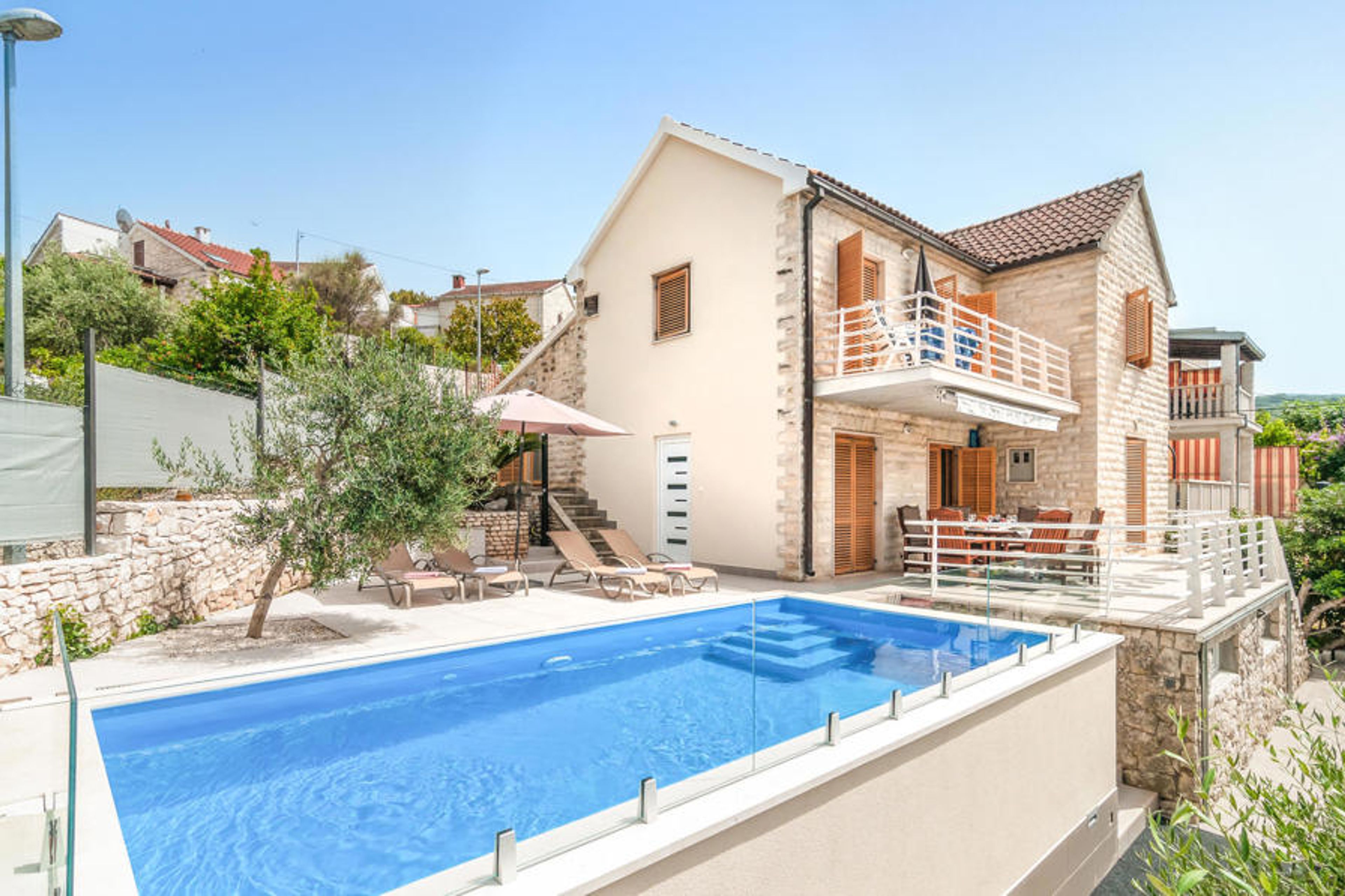 Enjoy a great sea view from the terrace of this vacation home with pool. The vacation home is spacious with 4 bedrooms and 5 bathrooms.