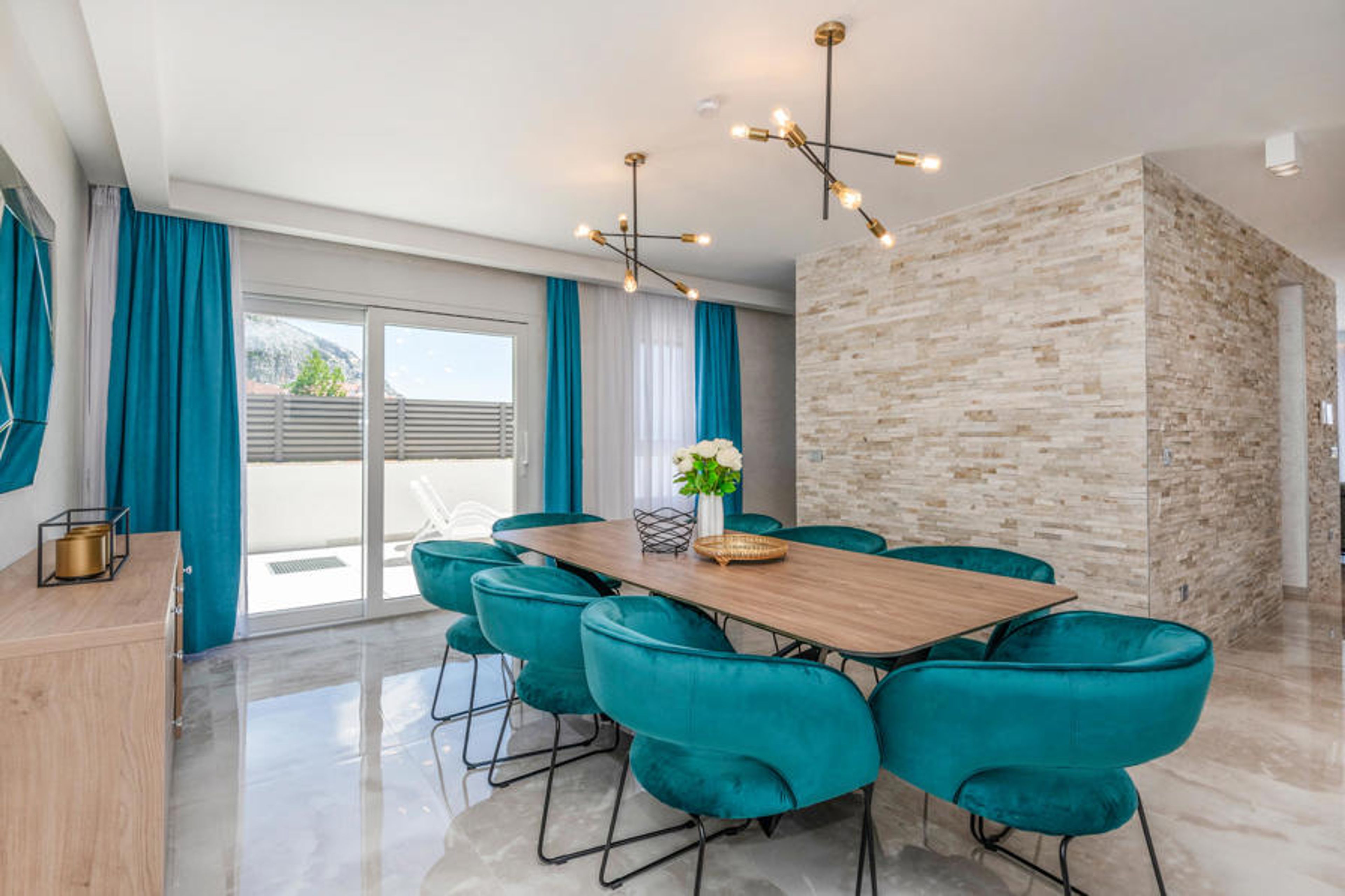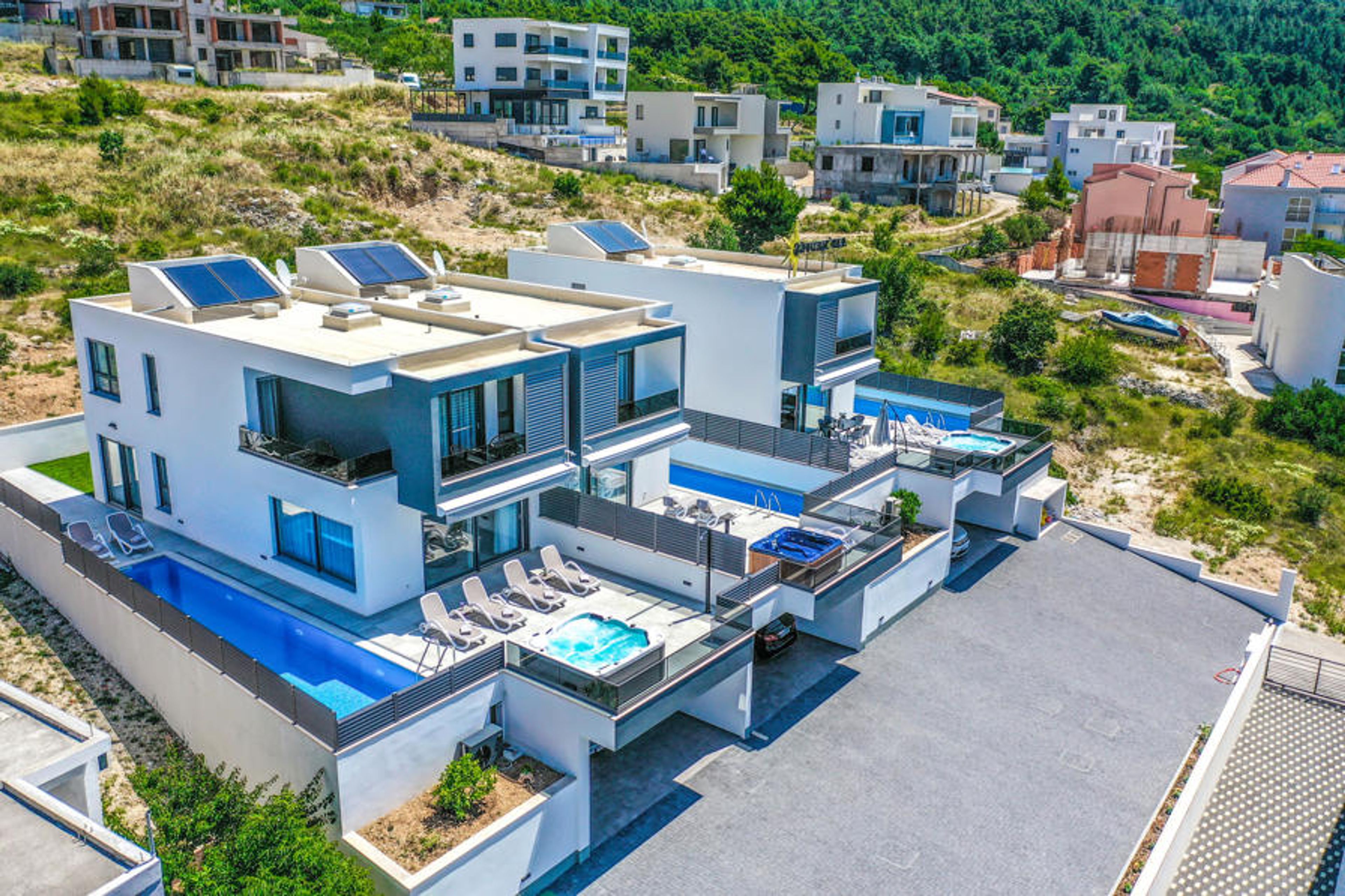 Built in 2021, this superbly equipped vacation home with pool is located in Makarska. The house is fully air-conditioned and consists of a first floor with fitness room and entertainment room with billiards, table soccer, darts, the 1st floor with living room, kitchen and dining room. On the second floor there are 3 bedrooms with bathrooms. All floors are connected with an interior staircase.