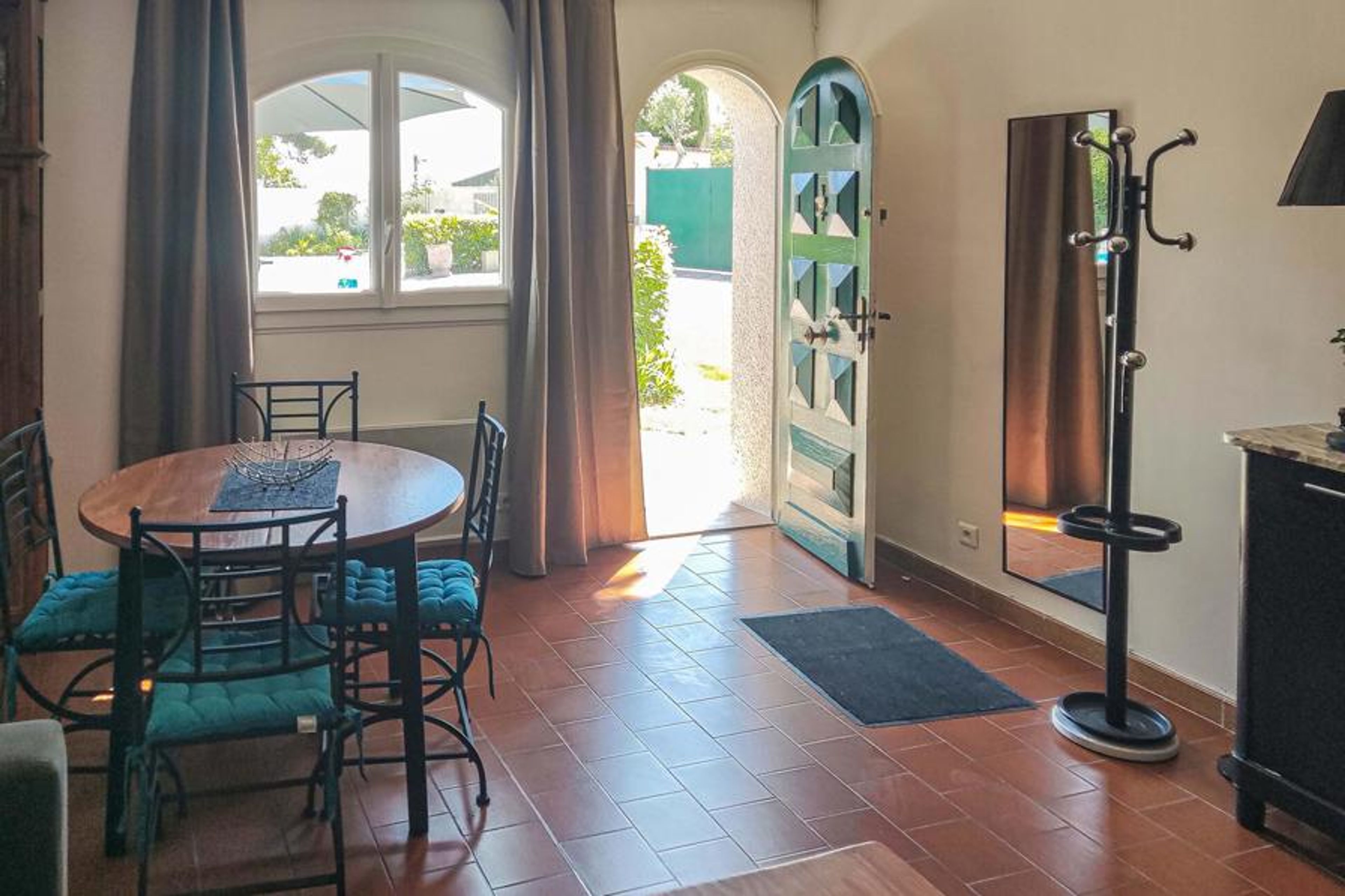 The apartment is located on the first floor of a house with private pool and on a fenced plot in a quiet area, 25 minutes from the center of Montpellier and 30 minutes from the most beautiful beaches of the Mediterranean. The apartment offers space in two bedrooms, a bathroom, a dining kitchen and a separate toilet.