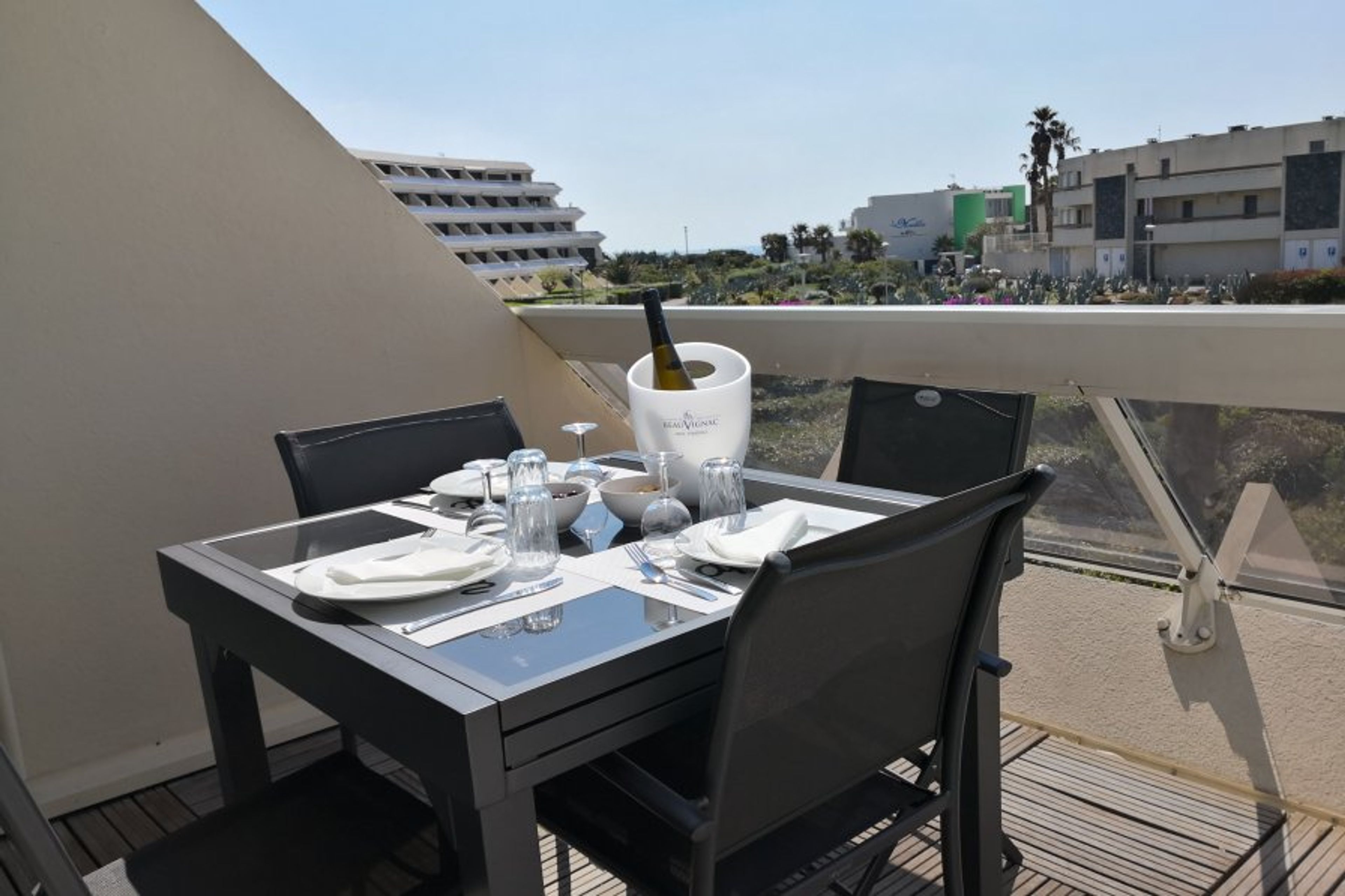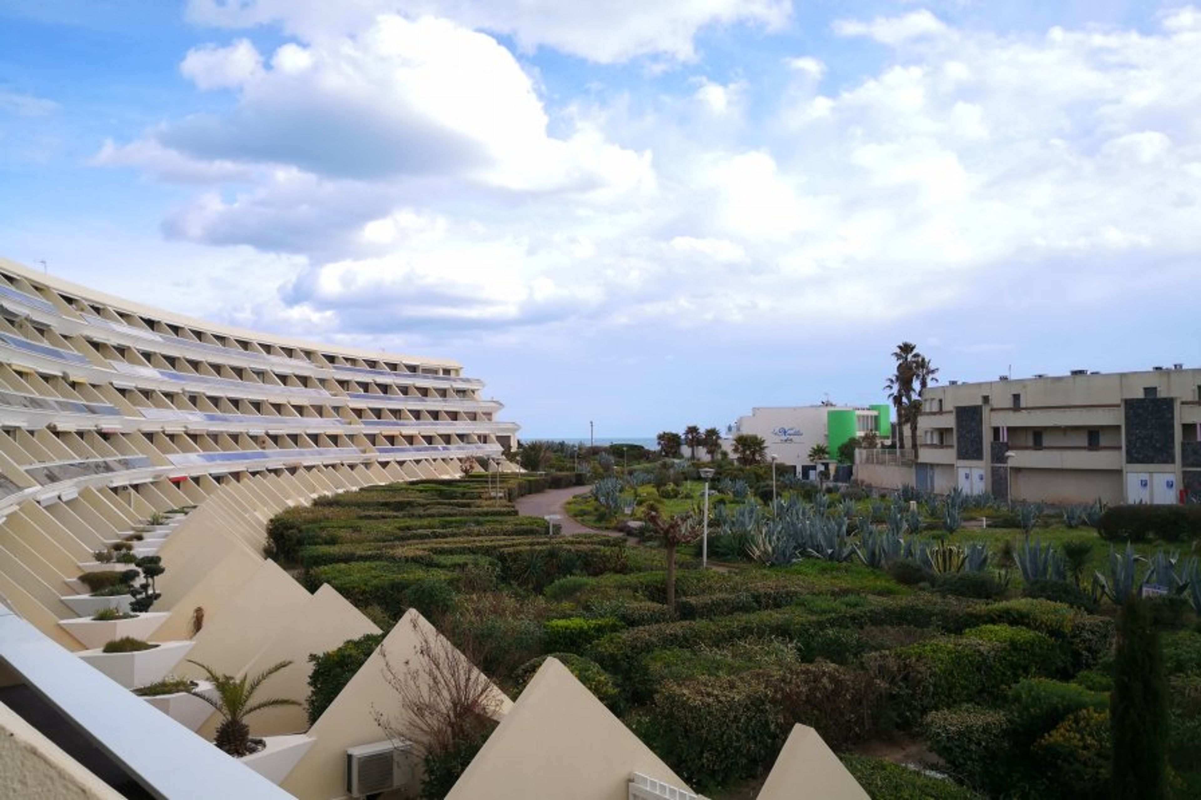 Inside the largest naturist village in Europe, 100 meters from the beach, restaurants, shops, bars and nightclubs. The studio is on the 1st floor of Héliopolis K, interior side facing south on the gardens and the sea. A 9m² terrace, where you can receive your friends.