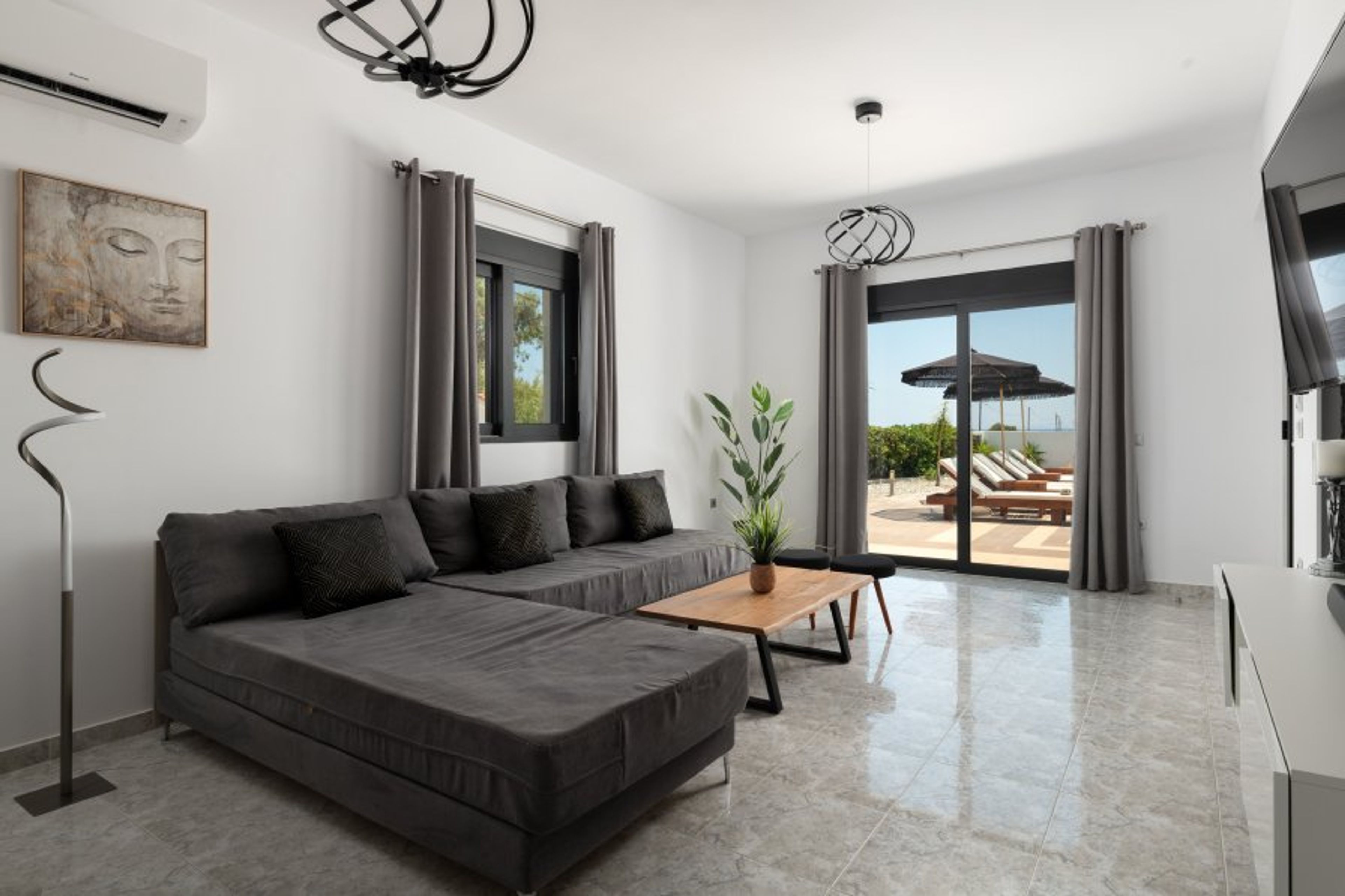 This unique villa offers a wonderful private swimming pool and a serene setting that will bring you in the mood for holidays as soon as you arrive. The villa offers uninterrupted views of the sea and an inspiring surrounding that Catches the eye. Afandou beach is one of the longest beaches in Rhodes with refreshing emerald waters. This divine property is recently renovated in 2021 and offers a beautiful design. It conveniently accommodates up to 6 guests.