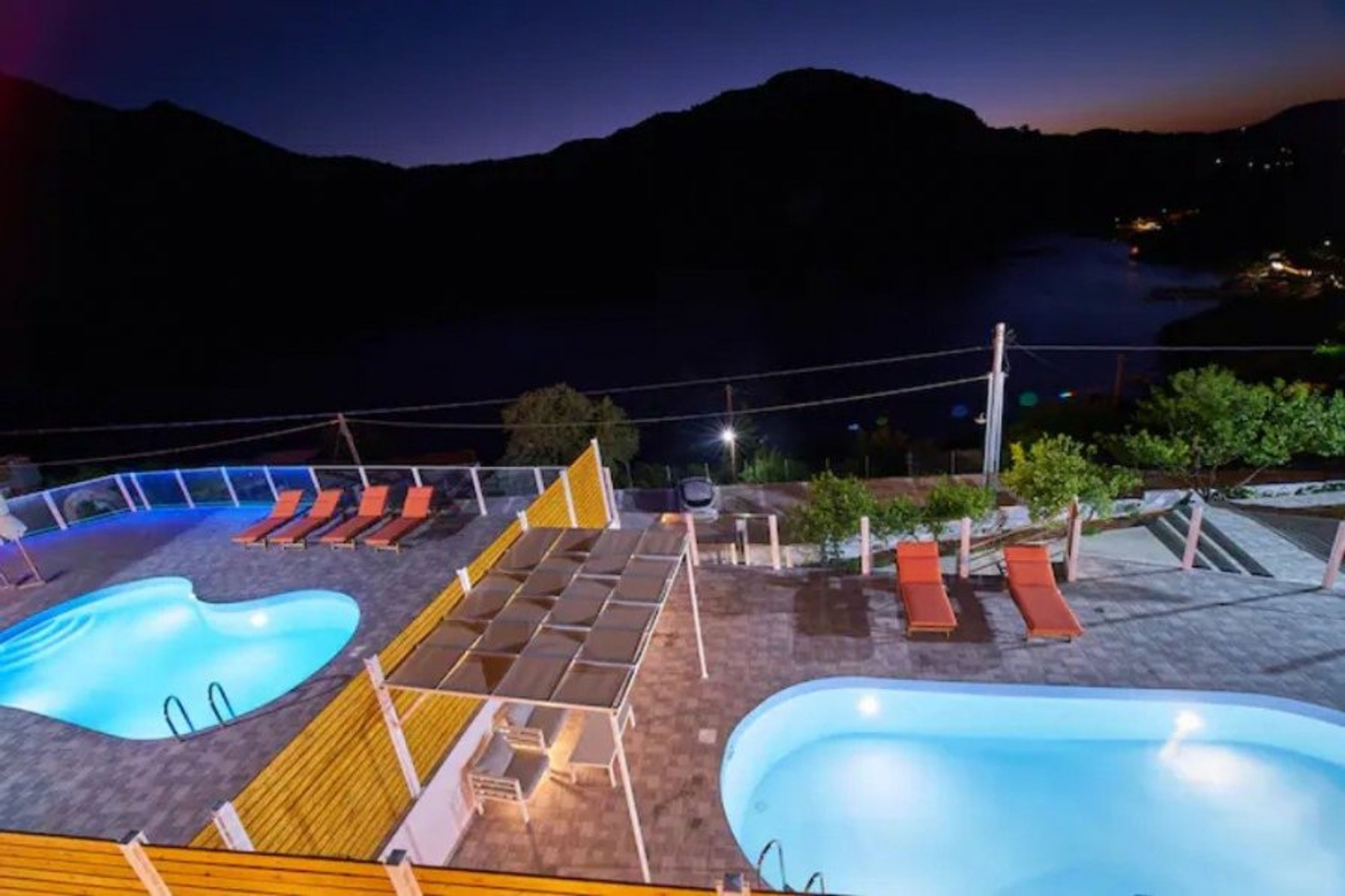 The perfect getaway for large groups! This newly constructed villa with two brand new pool offers guests a unique holiday with breathtaking, unobstructed views of the pristine Lake Kournas.