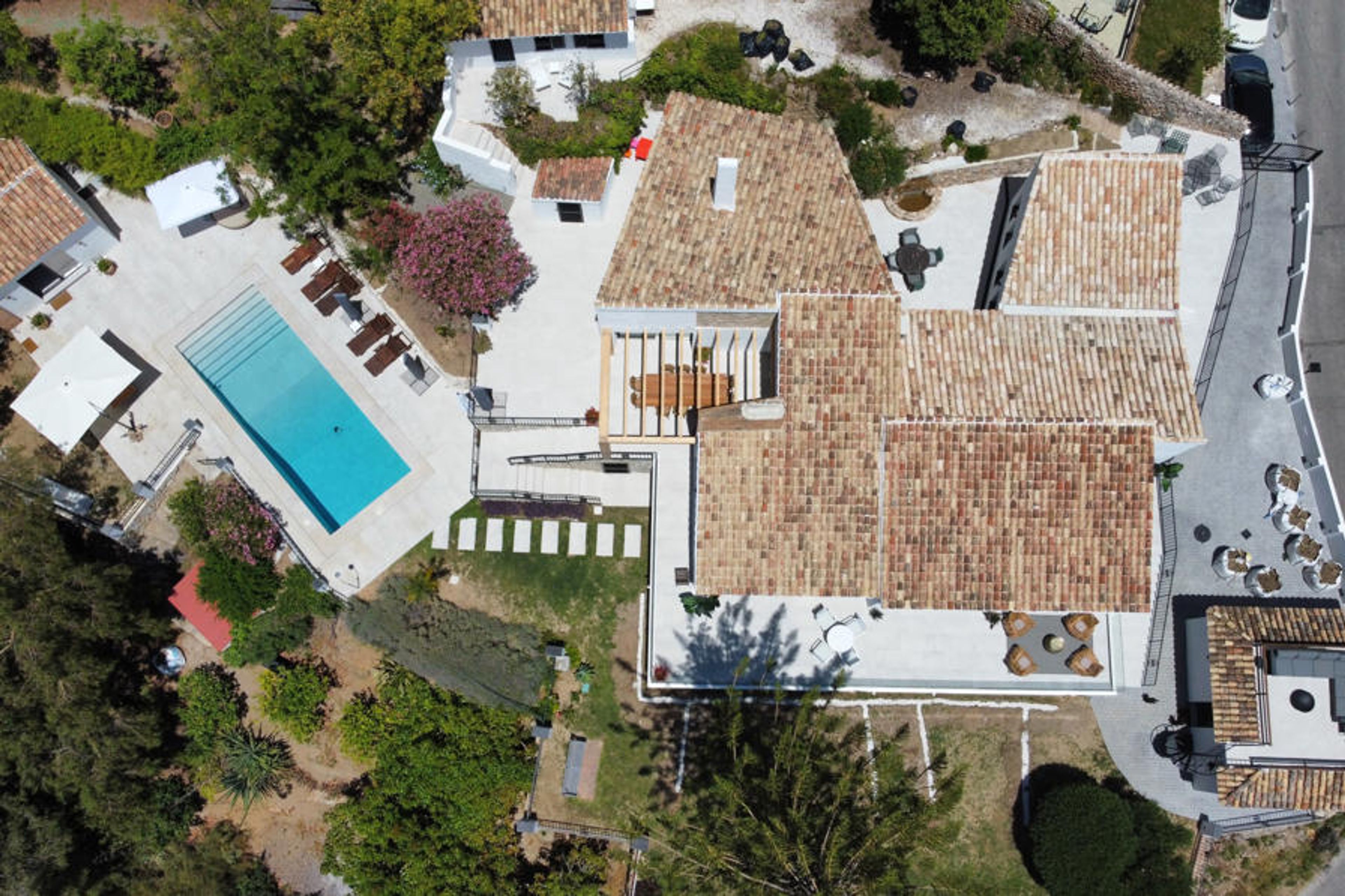 Spanning 412 m², the villa boasts an open-plan living area with floor-to-ceiling windows that flood the space with natural light and offer sweeping views of the lush surroundings. Accommodating up to 22 guests, the villa includes 7 double beds, 4 double sofa beds, and 5 bathrooms with showers. The main house features 4 luxurious bedrooms with elegant closets for storage, while 3 separate “casita” annexes provide additional space, each with a double bed and en-suite bathroom, and 2 of them equipped with kitchens—ideal for guests or older children. All rooms have private terraces with stunning views.