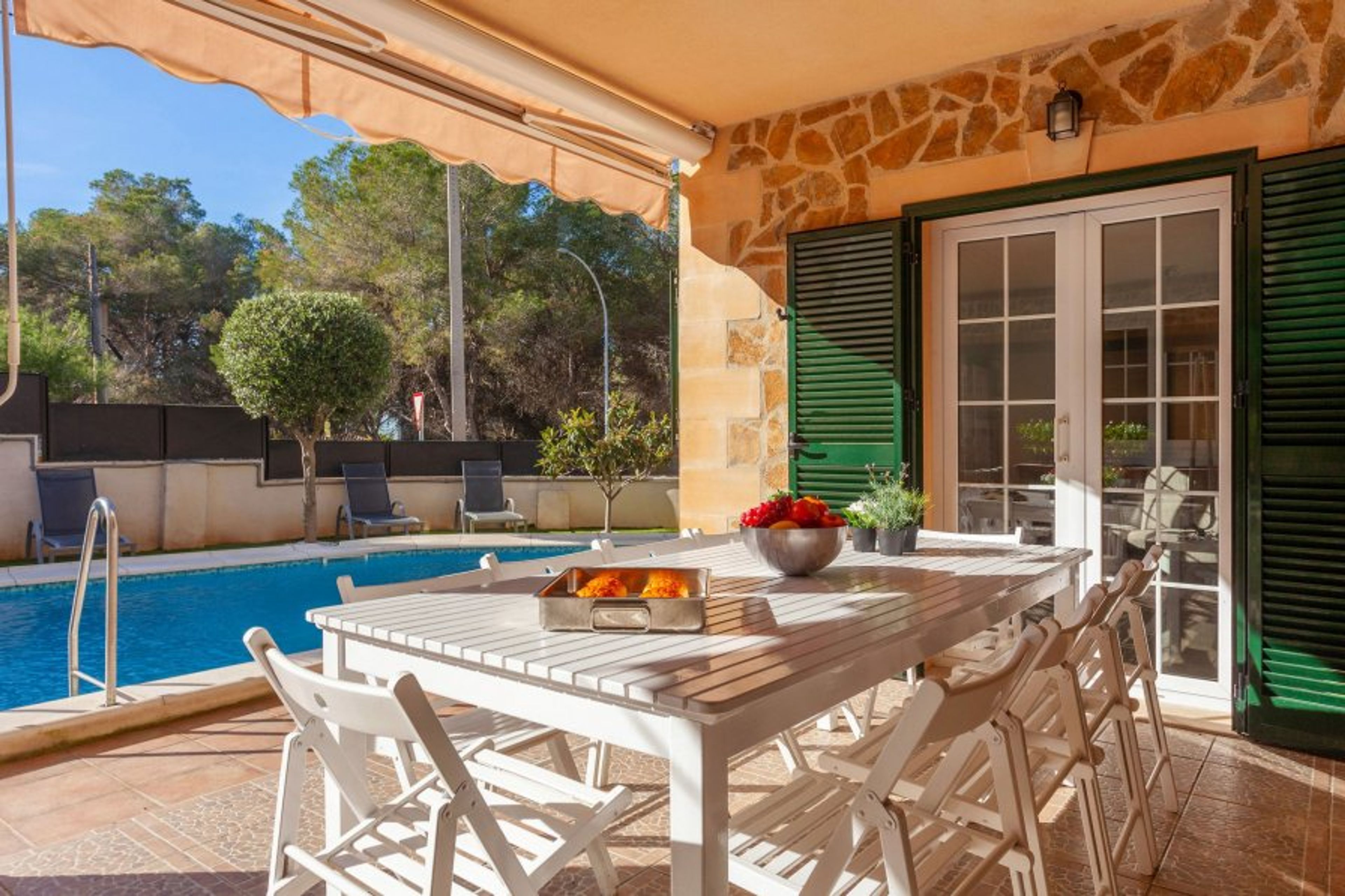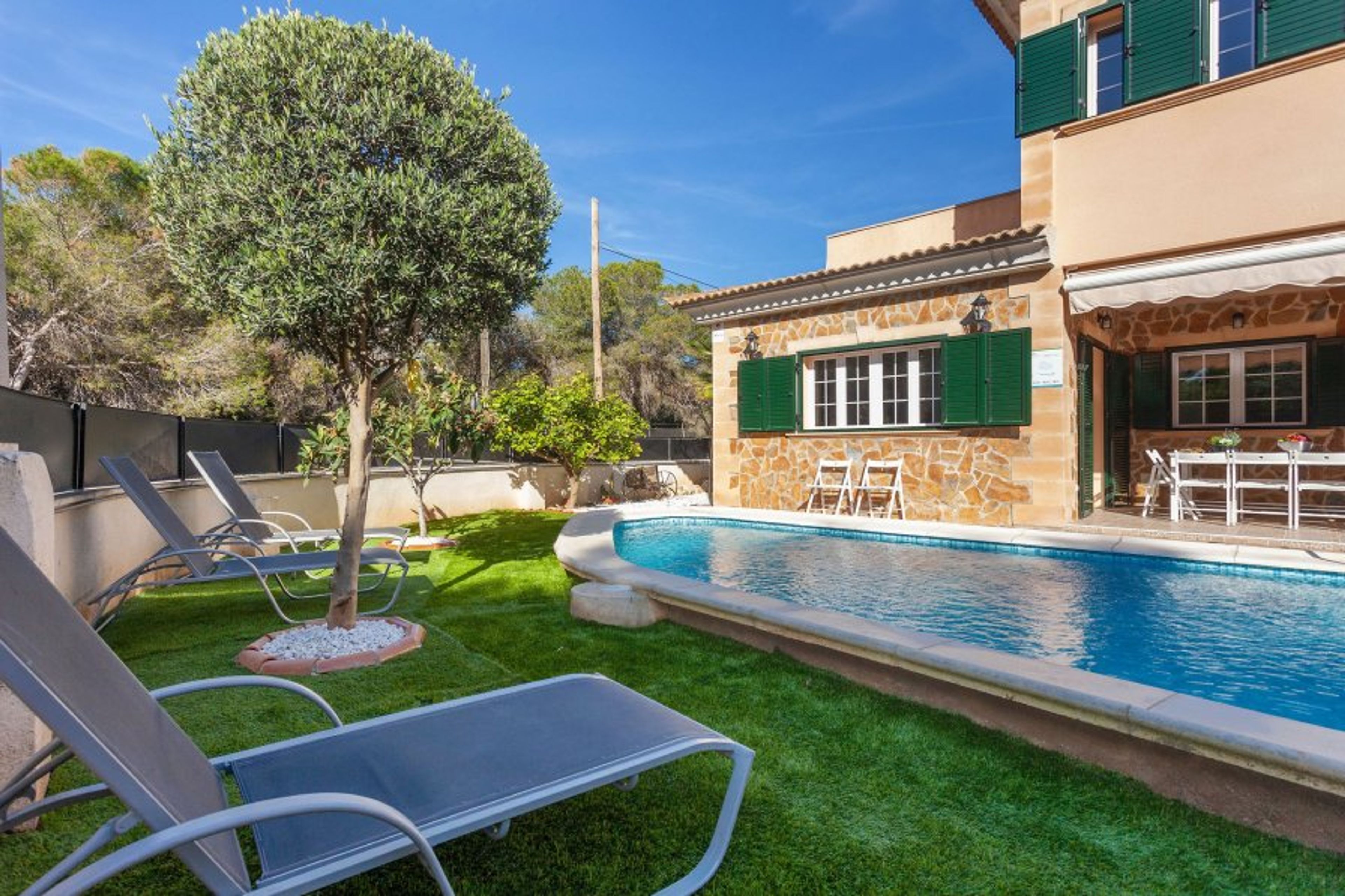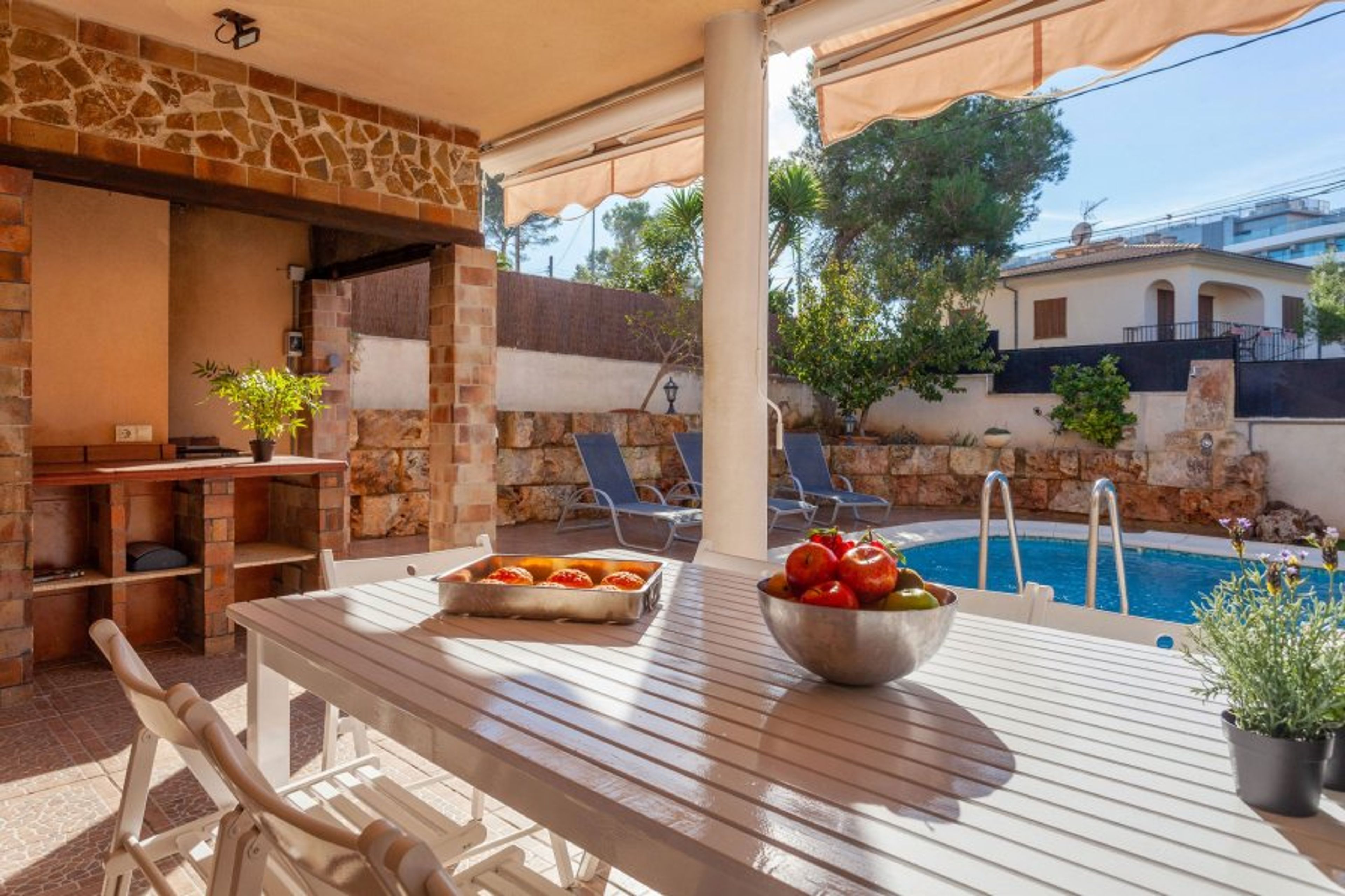 Fantastic villa in Arenal, located in a quiet and residential area but only 5 minutes from the touristic point for excellence of the island, with the ideal combination of beaches, walks, restaurants, pubs, leisure area and everything to spend an ideal holiday. Outside the house there is a large swimming pool with sun loungers in the garden area to enjoy the sun, as well as an outdoor dining area where you can relax and cook a good barbecue.