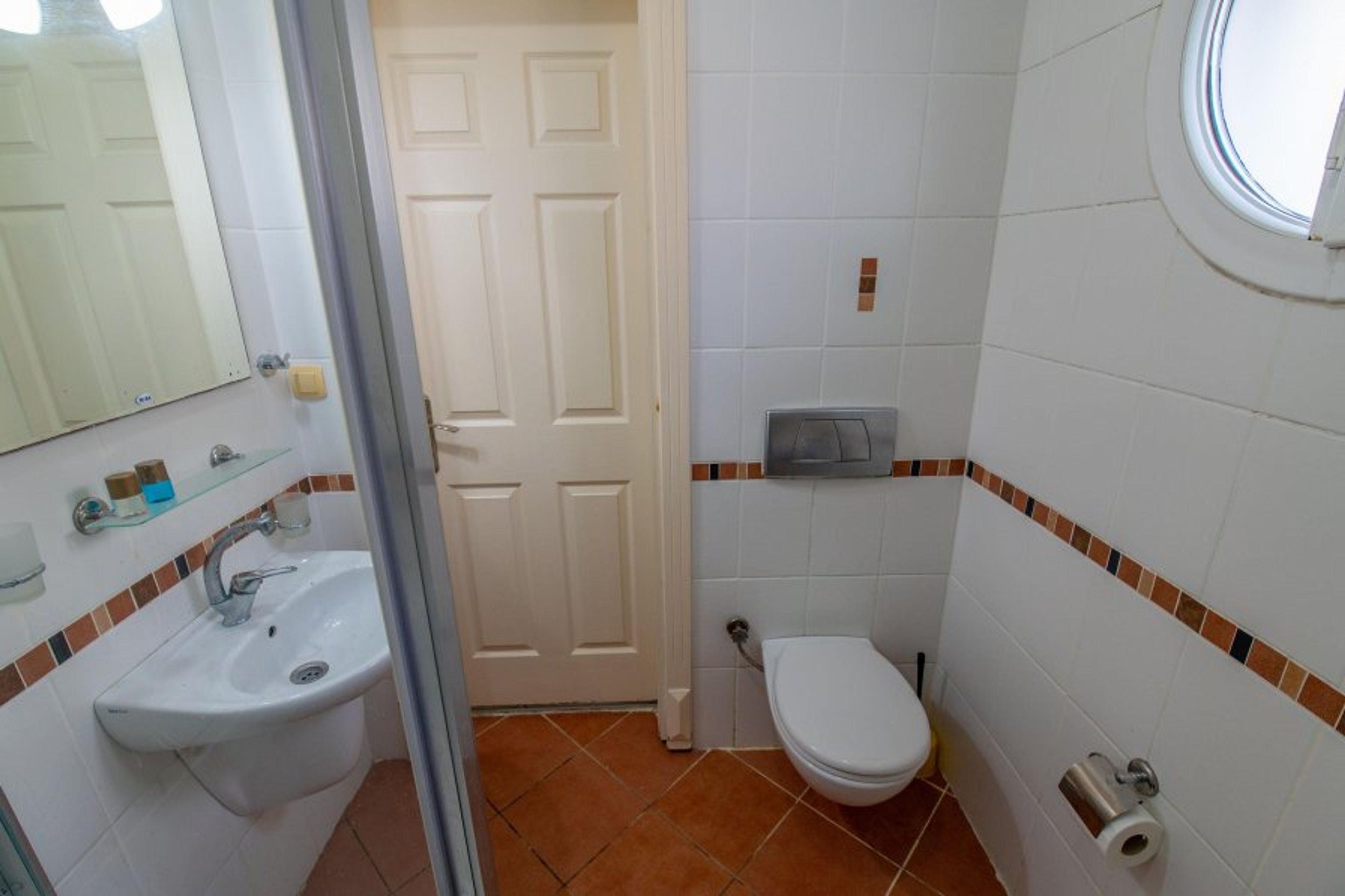 On a holiday complex with 24/7 Security, which is located inside Private beach, Restaurant, Bar, Turkish bath, 5 big swimming pool included and a pool bar.