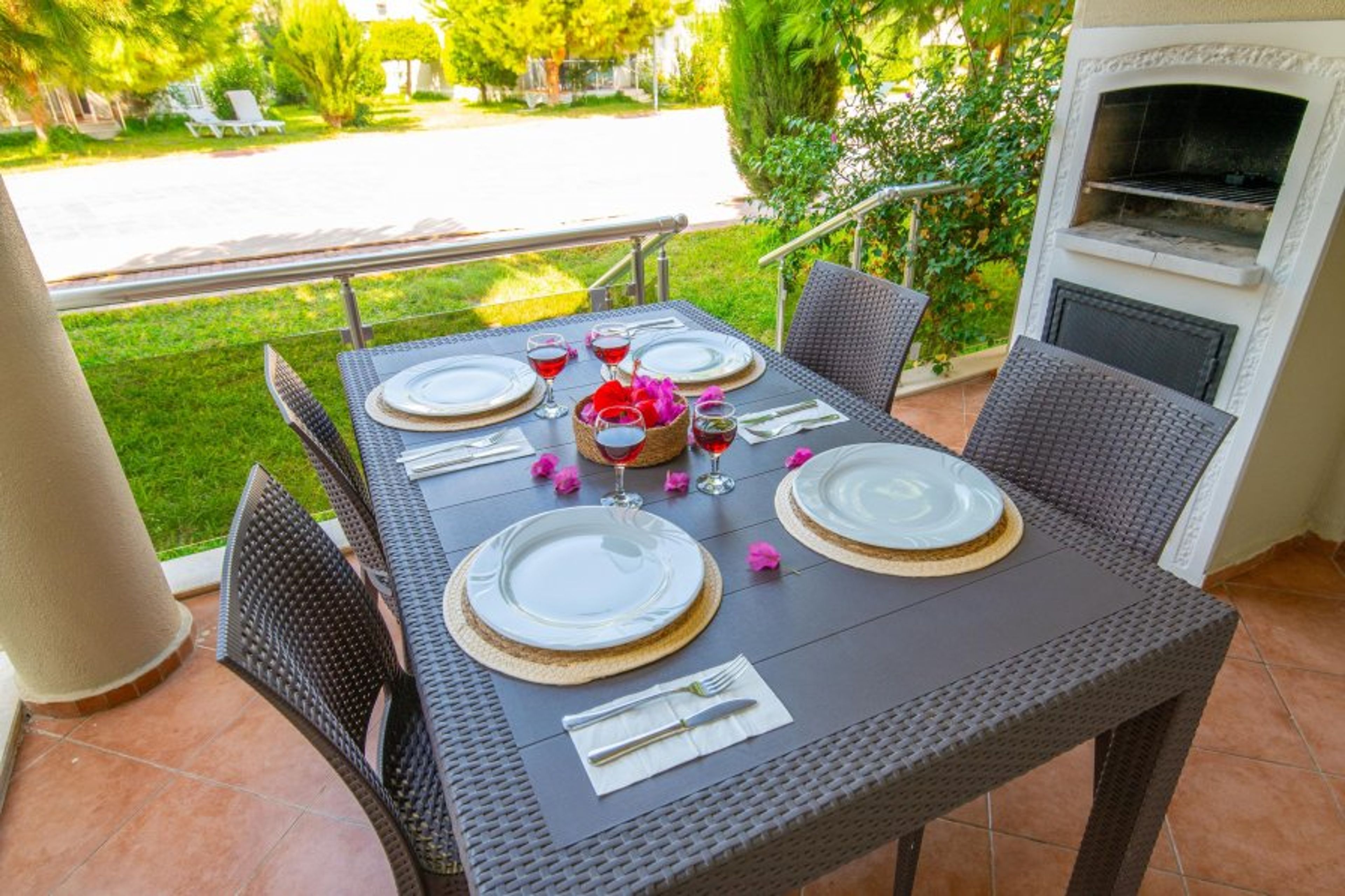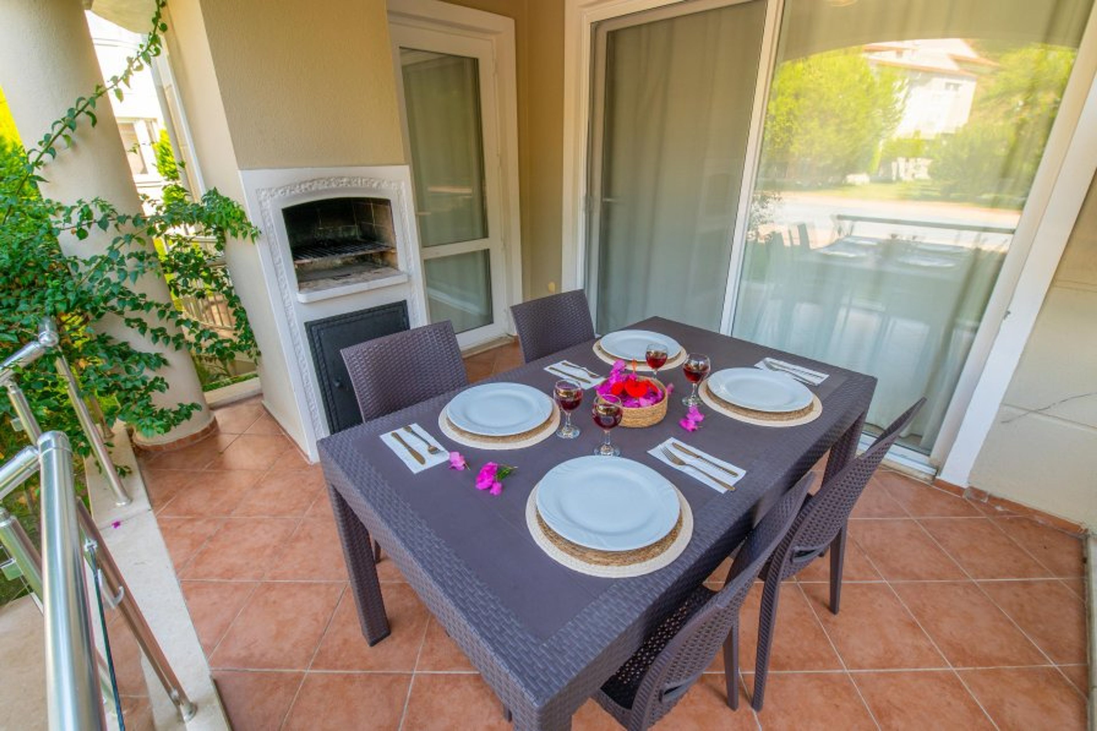 2 bedroom beachfront apartment located at Sunset Beach Club complex in Fethiye/Calis- Aqua Lettings This fully air-conditioned 2 bedroom ground floor apartment has an open-plan kitchen which leads out onto the balcony, 2 bedrooms and 2 bathrooms (Extra bed/baby cot available). With a large balcony dining area, you can enjoy your BUILT-IN BBQ or a cocktail whilst watching the poolside or chill out sunbathing around one of our many pools.