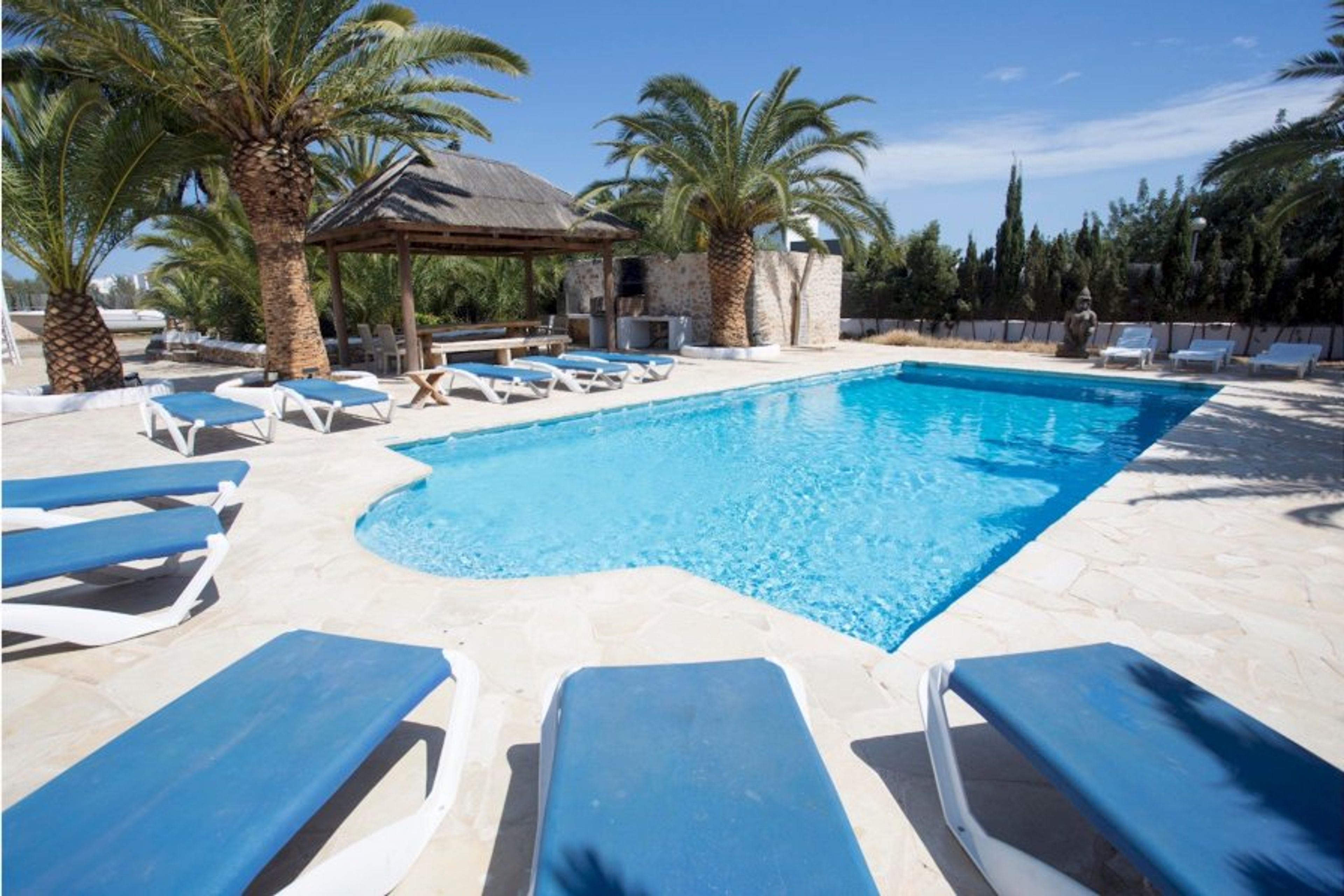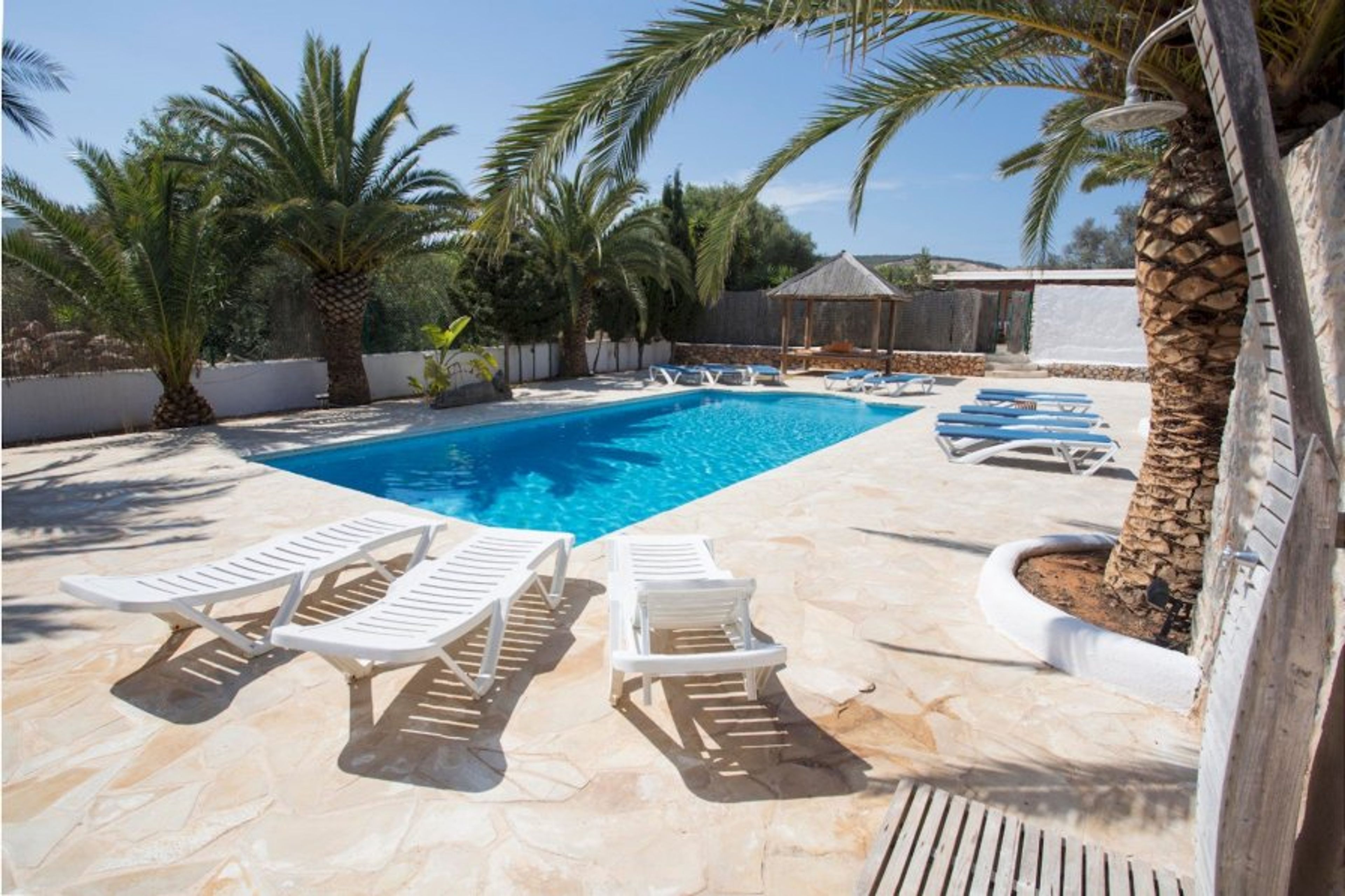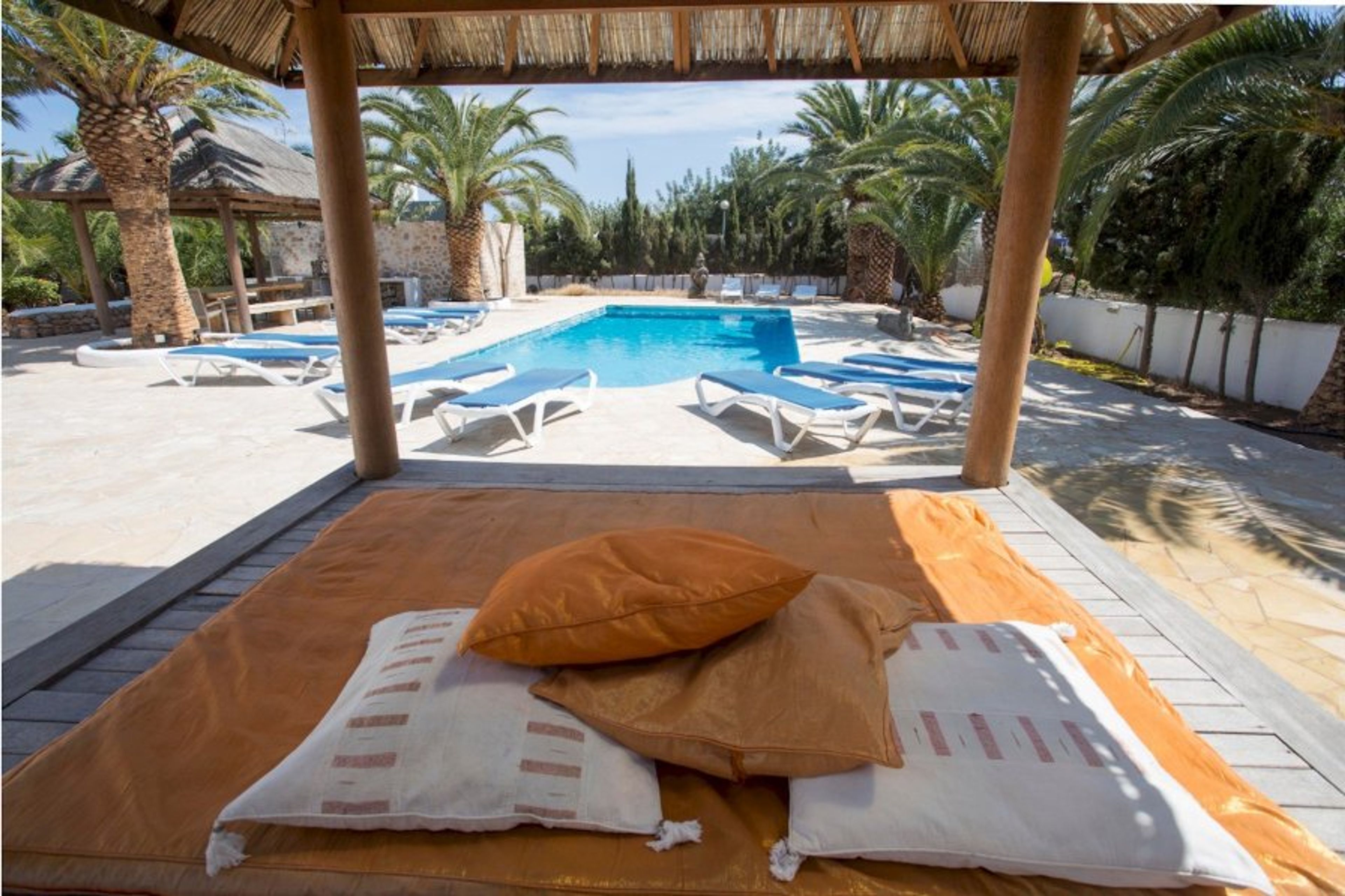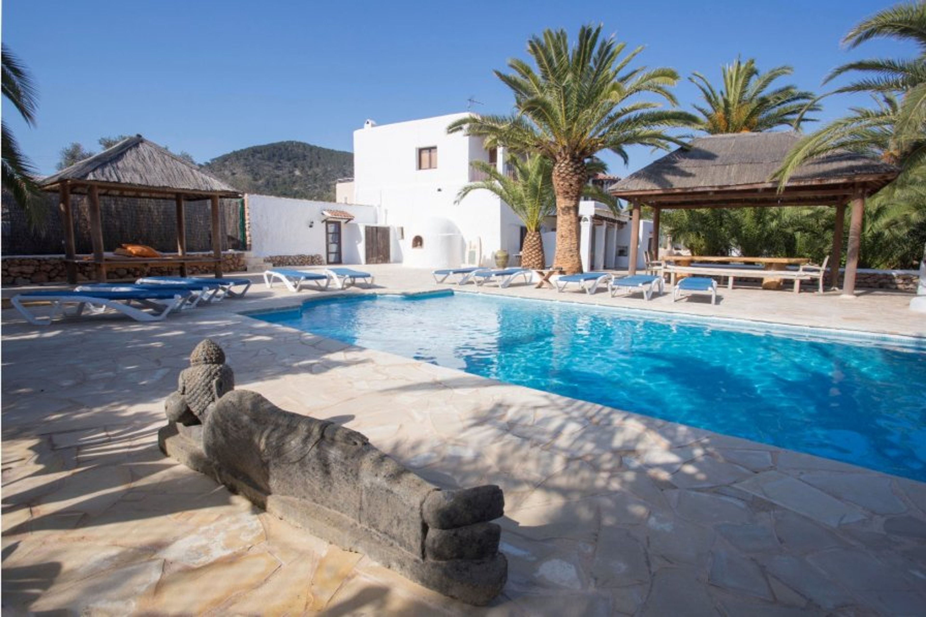 Villa Daniel is a beautiful, large villa in the Playa den Bossa area. This 400-year-old typical Ibizan finca was one of the original country farmhouses of this location – Sa Carroca. Just outside of Ibiza Town , it’s a popular and convenient villa rental area.